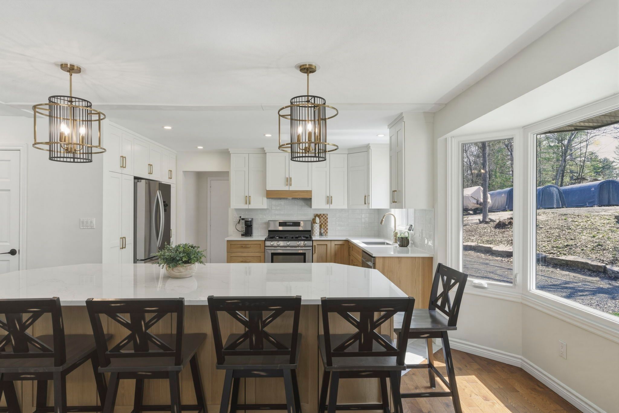 At the end of a quiet cul-de-sac, just minutes west of brockville, 408 yole crescent is the kind of home that changes the way you live-where every space invites you to slow down, gather, and truly enjoy where you are. The home welcomes you with an expanded, thoughtfully designed entryway that sets the tone for what's to come. Hardwood flooring flows throughout, leading into a bright and airy living room with walls of windows that flood the space with natural light. A stunning double-sided gas fireplace creates a warm, elegant connection between the living and dining areas. The dining room offers seamless access to the rear patio, while the heart of the home-the brand new kitchen by chris graham cabinetry-delivers both beauty and function. Featuring quartz countertops, soft-close cabinetry, and carefully curated finishes, this space has been designed with intention and elevated taste. The main level also includes a stylish powder room, convenient access to the garage, and a practical mudroom to keep life organized. Down the hall, you'll find two generously sized bedrooms, along with a spacious primary suite complete with a walk-in closet and a beautifully updated 3-piece ensuite. The main 4-piece bathroom continues the home's elevated design with custom cabinetry, quartz counters, and timeless finishes. A thoughtfully placed main floor laundry area with a folding station adds everyday convenience right where you need it. The finished lower level expands your living space even further, offering a comfortable rec-room, dedicated gym area, and plenty of storage to meet all of your needs. Out back, your private oasis is ready for every season. The 18x32 in-ground pool anchors summer days, while the wooden gazebo offers a shaded retreat. As the sun sets, gather around the natural rock fire pit, where conversations linger long after the stars come out. This is more than just a home-it's a lifestyle defined by comfort, quality, and a setting you'll never want to leave.