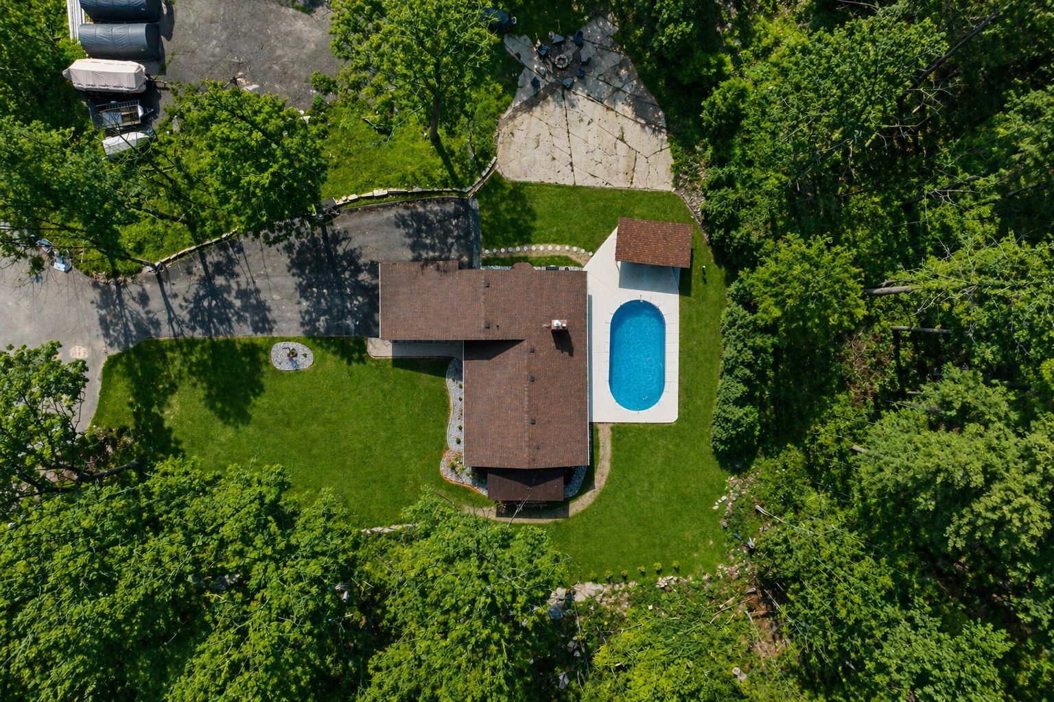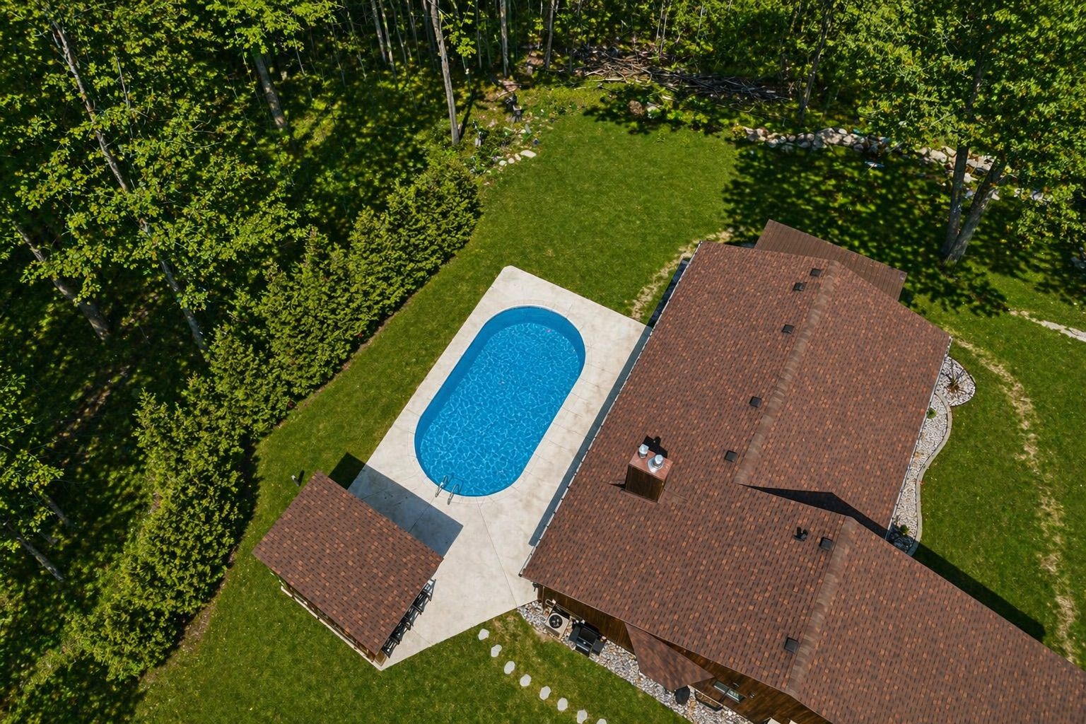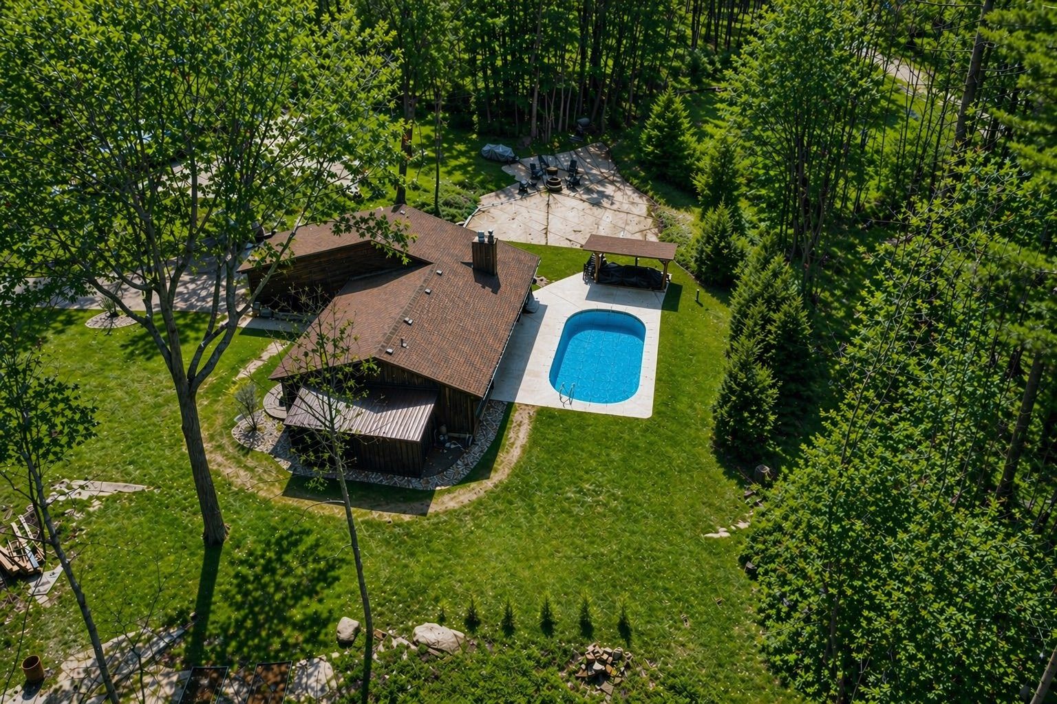 • Private backyard oasis with an in-ground pool and spacious gazebo.