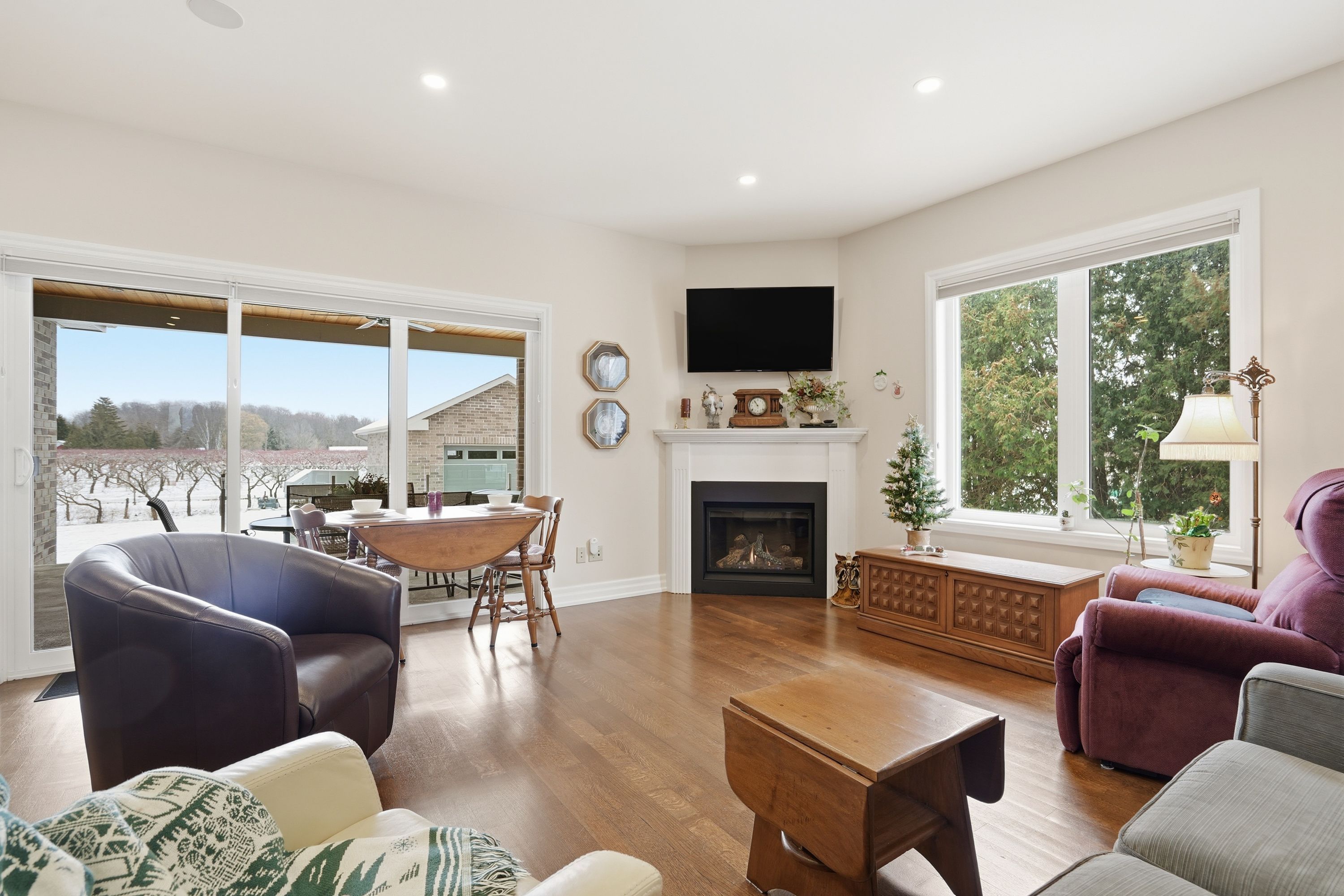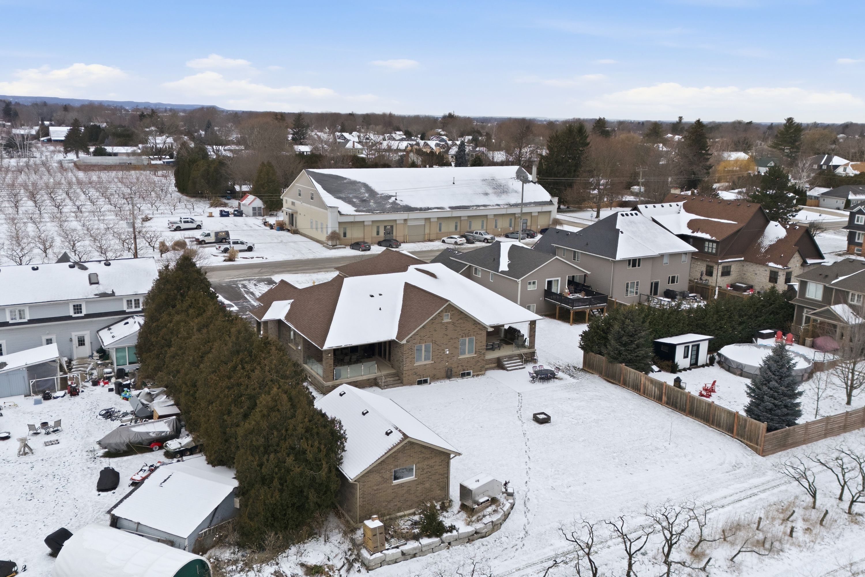 An exceptional custom residence in the heart of jordan station. Welcome to 4085 jordan road a meticulously crafted home where architectural flexibility, refined finishes, and thoughtful design come together. This five-bedroom, six-bathroom estate was built with intention, offering both immediate comfort and long-term adaptability. The main floor showcases quarter-sawn white oak flooring, which was laid raw and finished in place, throughout a bright, open-concept layout. Free of load-bearing walls, the interior offers exceptional flexibility, making future reconfiguration simple. The custom kitchen features maple cabinetry and quartz countertops, offering a timeless, functional layout ideal for both everyday living and entertaining. A private in-law suite with separate entrance and patio, along with main-floor laundry, adds outstanding versatility. Oversized windows allow natural light to pour in while offering peaceful views of the surrounding peach orchard. Descending the striking open-tread floating staircase of solid white oak, accented with swarovski crystal spindles, the fully finished lower level unfolds as a true extension of the home, featuring 8-foot ceiling heights. Heated travertine limestone flooring, divided into five independent heat zones, delivers exceptional year-round comfort throughout. This level features two spacious bedrooms, each with its own 3-piece ensuite, a large open-concept living area with kitchenette, and a dedicated office. The garage features heated 6-inch-thick concrete floors, built to last, along with walk-down access to the basement and central vacuum with outlets on opposite sides of the garage for added convenience. A detached one-car garage at the rear of the property provides additional storage and functionality. Purposefully built and thoughtfully designed, 4085 jordan road offers a rare opportunity in one of lincoln's most desirable settings.