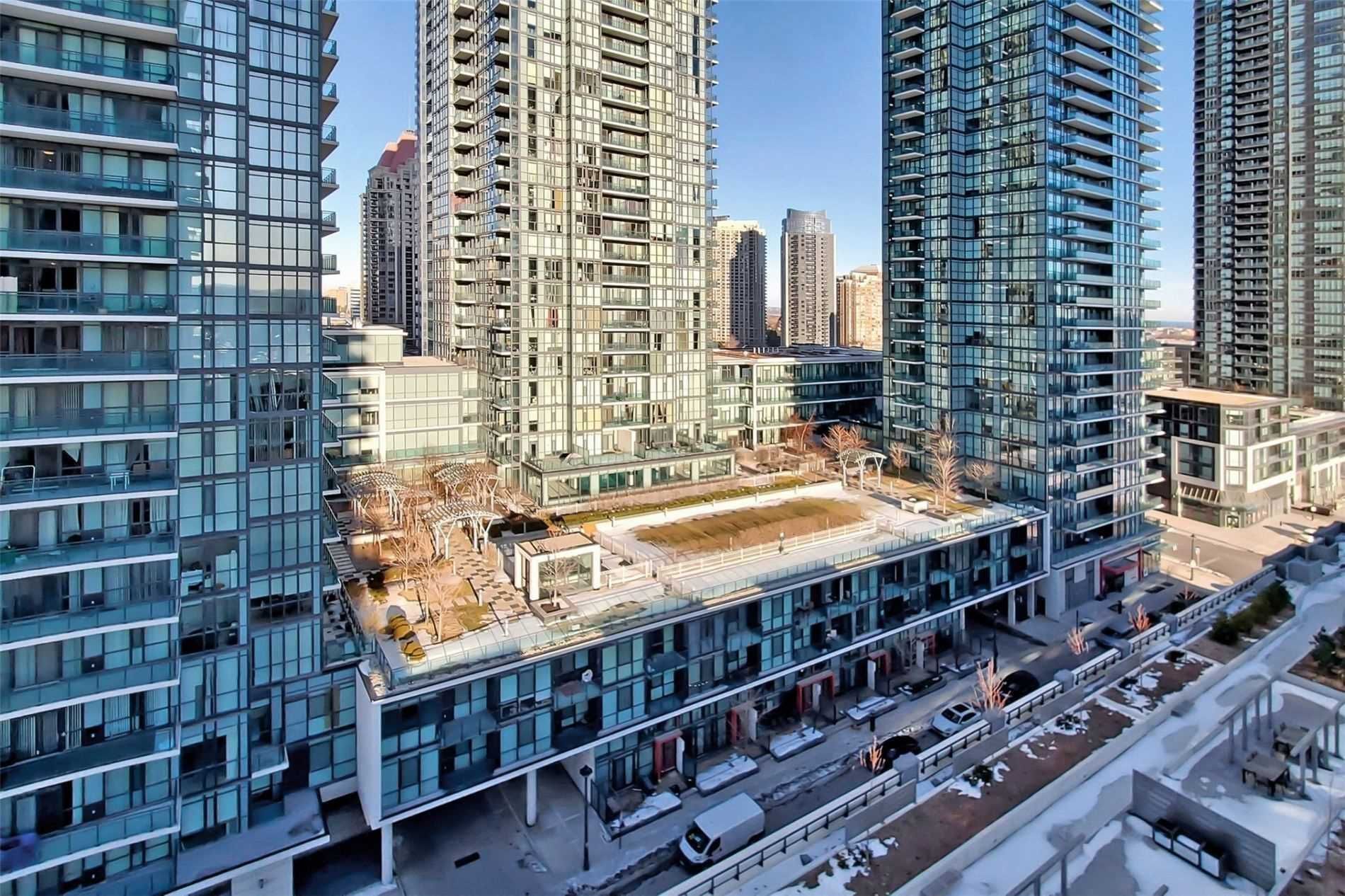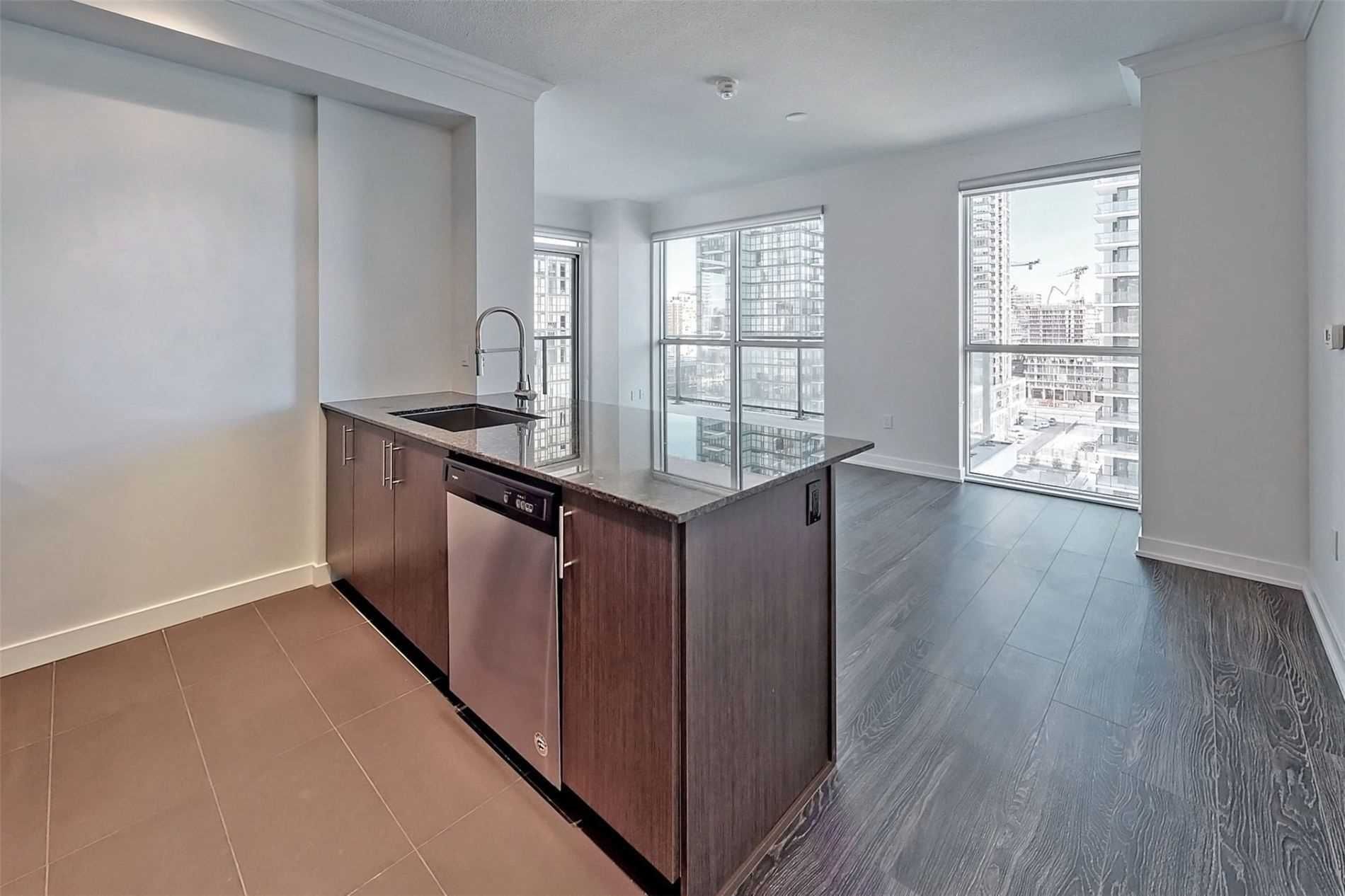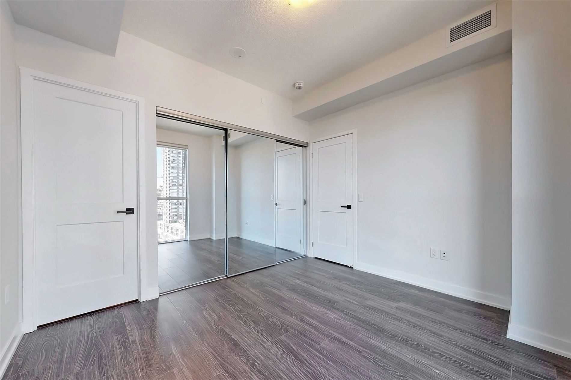 Bright, spacious, and ideally located, this 2-bedroom, 2-bath corner suite is filled with natural light thanks to floor-to-ceiling windows and hardwood flooring throughout. The upgraded kitchen includes stainless steel appliances and flows comfortably into the open living space. The primary bedroom offers a modern ensuite, while the second bedroom provides flexibility as a child's room, guest bedroom, or home office, making it well suited for a family of three. Step out onto the oversized wrap-around balcony and enjoy impressive city views. The unit will be freshly painted prior to tenant occupancy. Located just steps from square one, the living arts centre, library, anda wide selection of restaurants, lounges, and entertainment.