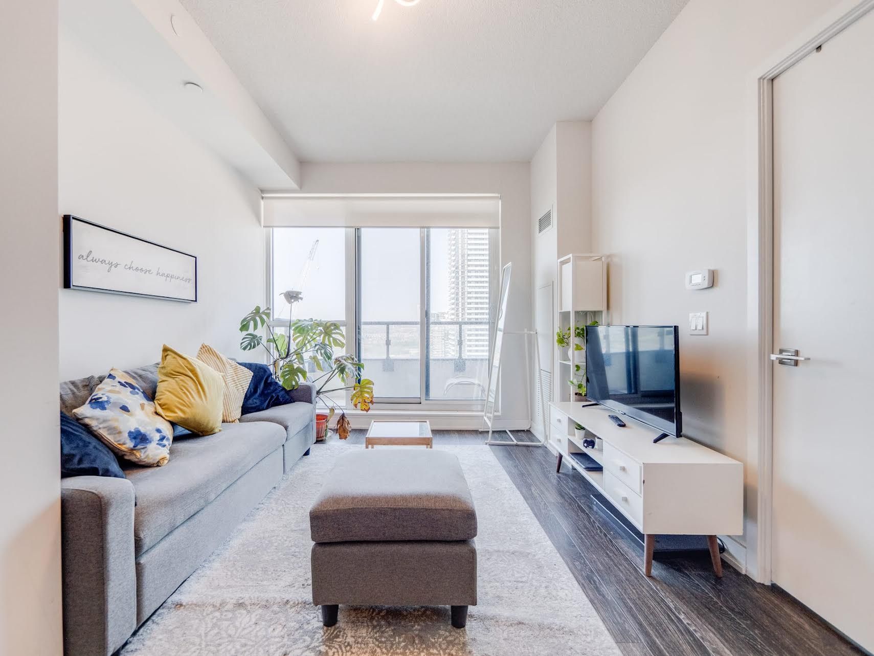 Welcome to this spacious and modern 1+1 bedroom condo apartment ideally located in the heart of mississauga, just 800 meters from square one shopping centre. This well-designed unit features an open-concept living and dining area, a generously sized primary bedroom, and a large den that easily fits a bed, making it perfect for use as a second bedroom or home office. Enjoy the convenience of ensuite laundry and step out onto a sun-filled balcony with a premium park-facing view, an upgrade paid for by the seller-offering a truly magnificent outlook. The modern kitchen and washroom are finished with quartz countertops, stainless steel appliances, an undermount sink, and a panel-ready fridge and dishwasher, delivering a sleek, contemporary aesthetic. Unbeatable location within walking distance to square one, sheridan college, celebration square, central library, public transit, and easy access to all major highways. Residents enjoy exceptional amenities, including a gym, yoga studio, games room, kids' playroom, theatre, media library, and outdoor terrace with bbq area. A perfect opportunity for end-users or investors seeking comfort, style, and an unbeatable city-centre lifestyle.