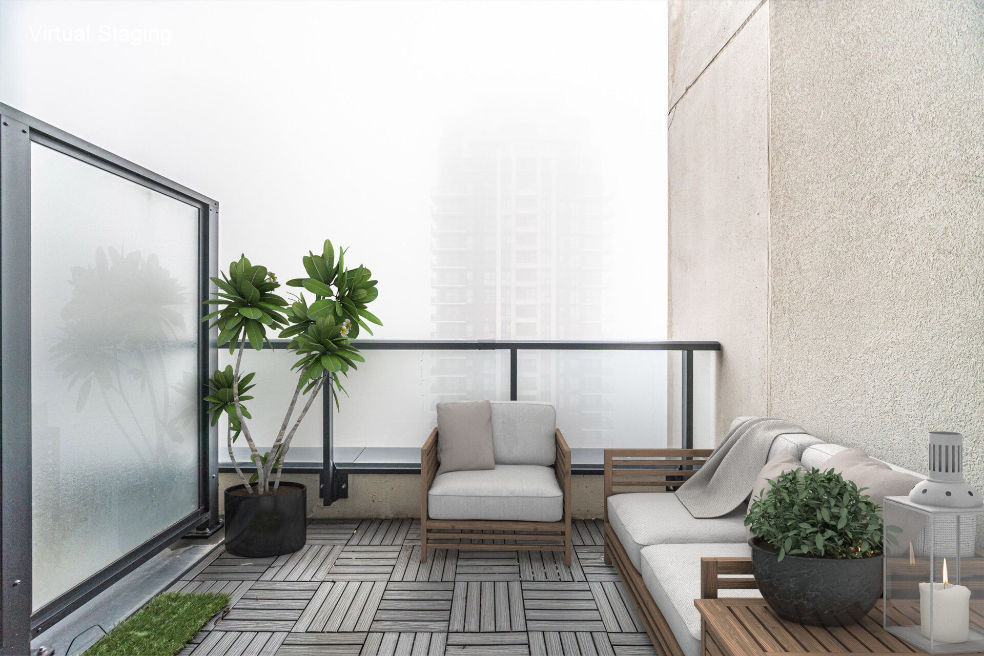 • Two terraces, one with turf and patio tiles for outdoor enjoyment.