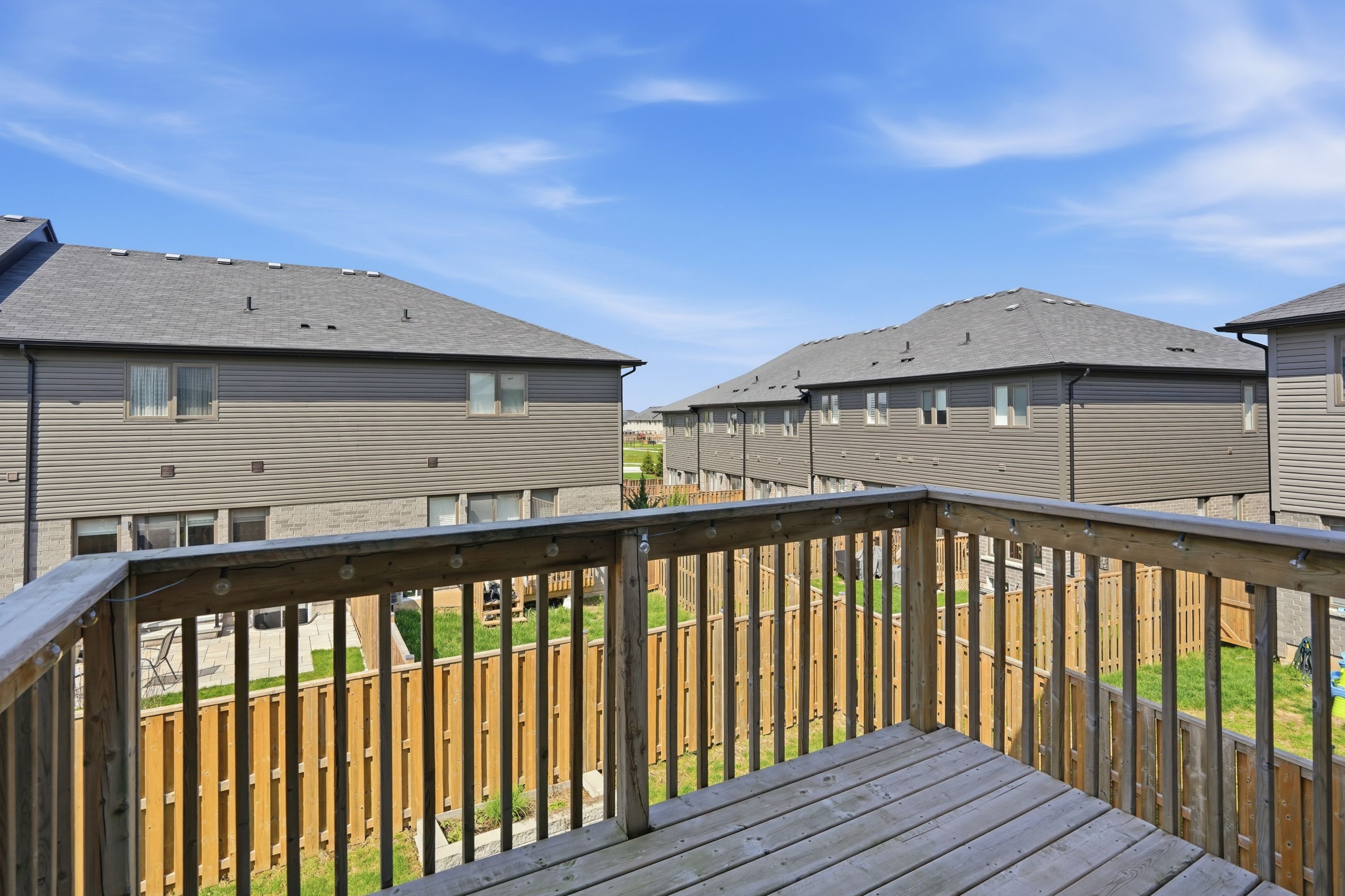 • Fully fenced yard with custom patio, great for outdoor activities.