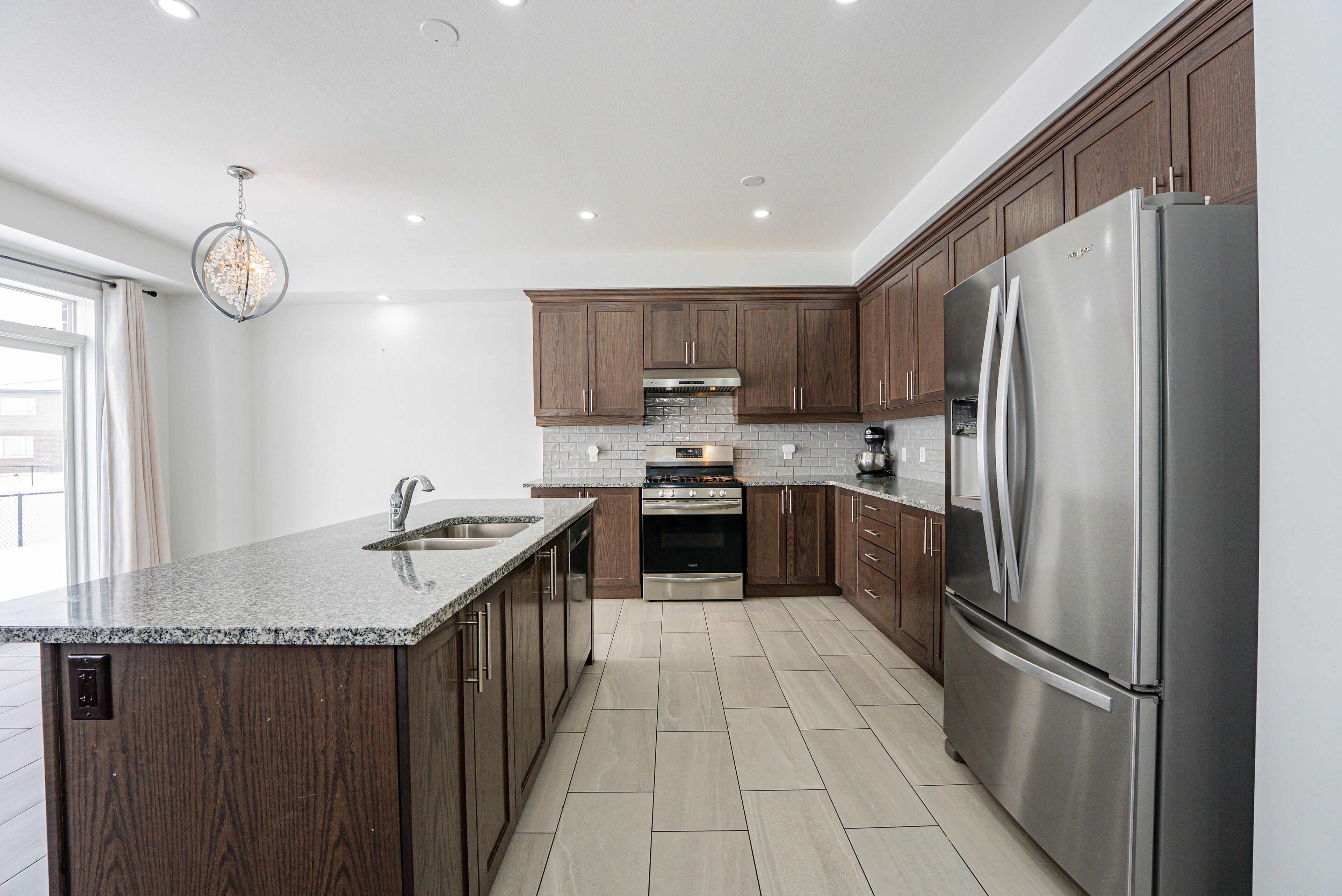 A stunning modern east facing home nestled in cambridge's highly desirable salisbury/southgate neighbourhood. Exceptional 5-bedroom, 4-bathroom residence offers the perfect blend of style, comfort. Designed for both entertaining & everyday living, the open-concept main floor features a spacious kitchen with stainless steel appliances & a large center island that flows into the dining & living areas. A cozy fireplace creates a warm, inviting atmosphere, convenient main-floor laundry adds everyday practicality. Upstairs, you'll find generously sized 5 bedrooms, including two master bedrooms. The unfinished basement offers endless potential to design your dream space whether it's a home gym, recreation room, additional living area, or private suite. Extended driveway with no sidewalk, ideally for parking 4 cars on driveway & 2 car garage, total 6 car parkings. Rare park-backing lot, backing directly onto lynn freure park & peaceful green space views. Great location just minutes from highway 401 and all the essential amenities.