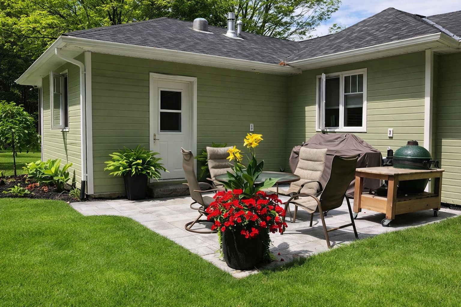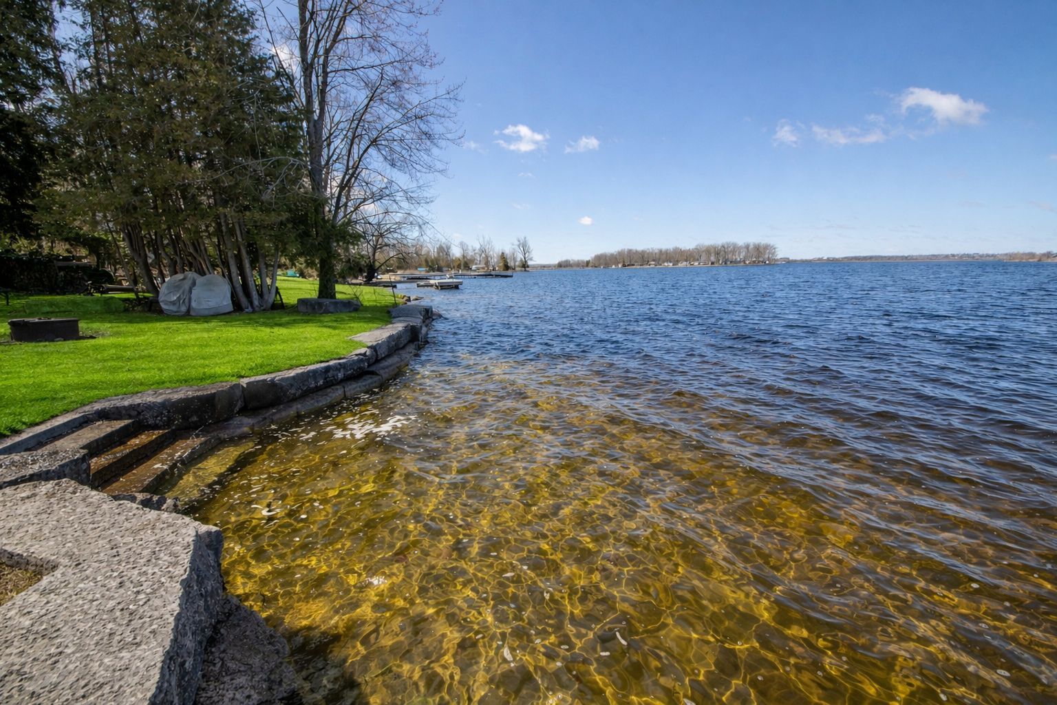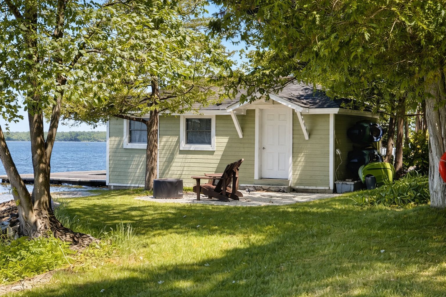 1. 3 acres of waterfront living perfection! This custom-built 1,500 sq ft bungalow offers 2 bedrooms and 2 bathrooms and is set on an exceptional lot with 160 feet of pristine shoreline on pigeon lake. The bright and spacious, open-concept layout is designed to capture stunning lake views throughout. The kitchen features a centre island with breakfast bar, seamlessly flowing into a formal dining area and inviting living room with 8' patio doors leading to a lakeside patio. The primary suite boasts a large walk-in closet and a luxurious 4-pc ensuite complete with a separate 6' glass shower and a soaker tub perfect for relaxing. Outdoors you'll find professionally designed hardscaping that wraps around the home and is complemented by beautiful perennial gardens plus irrigation system. The paved driveway meanders through the trees opening to a three-car garage with wood stove and a regulation sized pickleball court integrated into the expansive paved area. Enjoy entertaining on the permanent armour stone cribbed dock with gazebo. Included is an additional 60' pole dock - ideal for accommodating all your watercraft and lakeside activities. Additional features include a 22kw backup generator for peace of mind year-round, a 20' x 30' quonset hut tucked privately among the trees and a quaint outhouse with compost toilet and extra side section for storage. A rare offering that blends comfort, privacy and waterfront living. Book your private viewing today. You won't be disappointed.