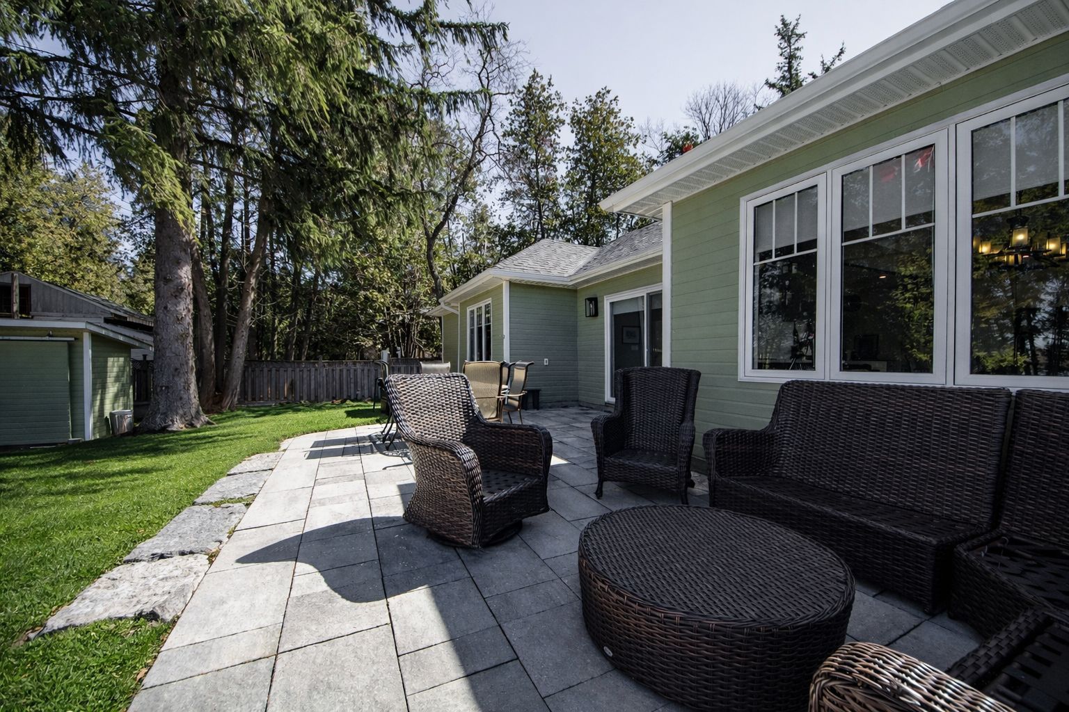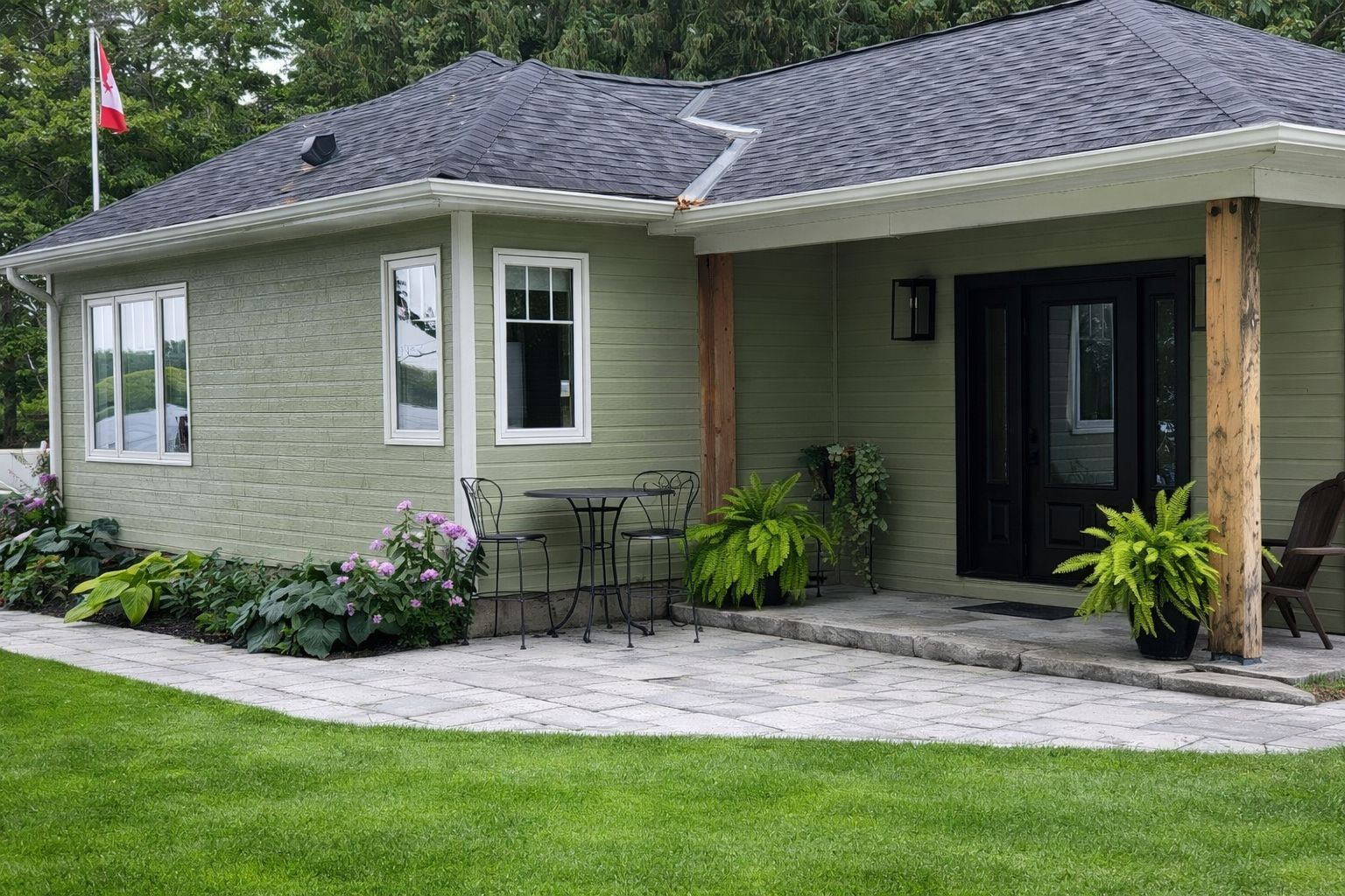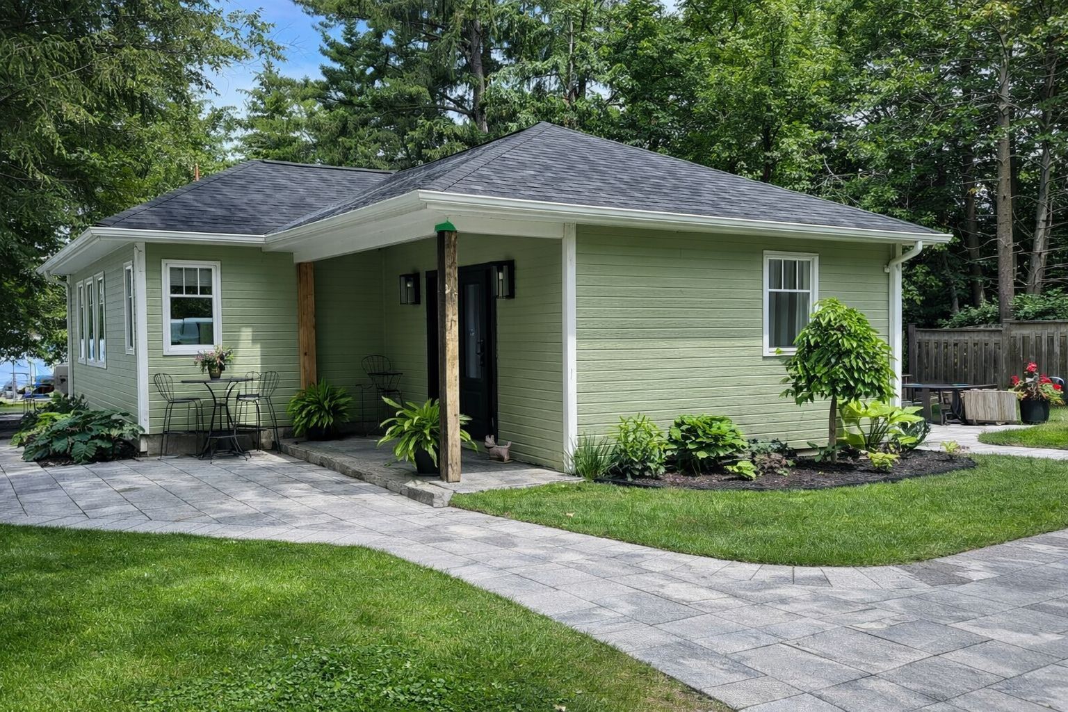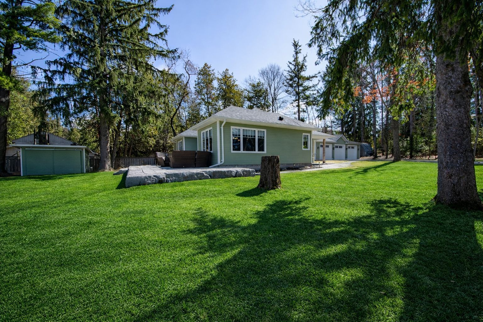 1. 3 acres of waterfront living perfection! This custom-built 1,500 sq ft bungalow offers 2 bedrooms and 2 bathrooms and is set on an exceptional lot with 160 feet of pristine shoreline on pigeon lake. The bright and spacious, open-concept layout is designed to capture stunning lake views throughout. The kitchen features a centre island with breakfast bar, seamlessly flowing into a formal dining area and inviting living room with 8' patio doors leading to a lakeside patio. The primary suite boasts a large walk-in closet and a luxurious 4-pc ensuite complete with a separate 6' glass shower and a soaker tub perfect for relaxing. Outdoors you'll find professionally designed hardscaping that wraps around the home and is complemented by beautiful perennial gardens plus irrigation system. The paved driveway meanders through the trees opening to a three-car garage with wood stove and a regulation sized pickleball court integrated into the expansive paved area. Enjoy entertaining on the permanent armour stone cribbed dock with gazebo. Included is an additional 60' pole dock - ideal for accommodating all your watercraft and lakeside activities. Additional features include a 22kw backup generator for peace of mind year-round, a 20' x 30' quonset hut tucked privately among the trees and a quaint outhouse with compost toilet and extra side section for storage. A rare offering that blends comfort, privacy and waterfront living. Book your private viewing today. You won't be disappointed.