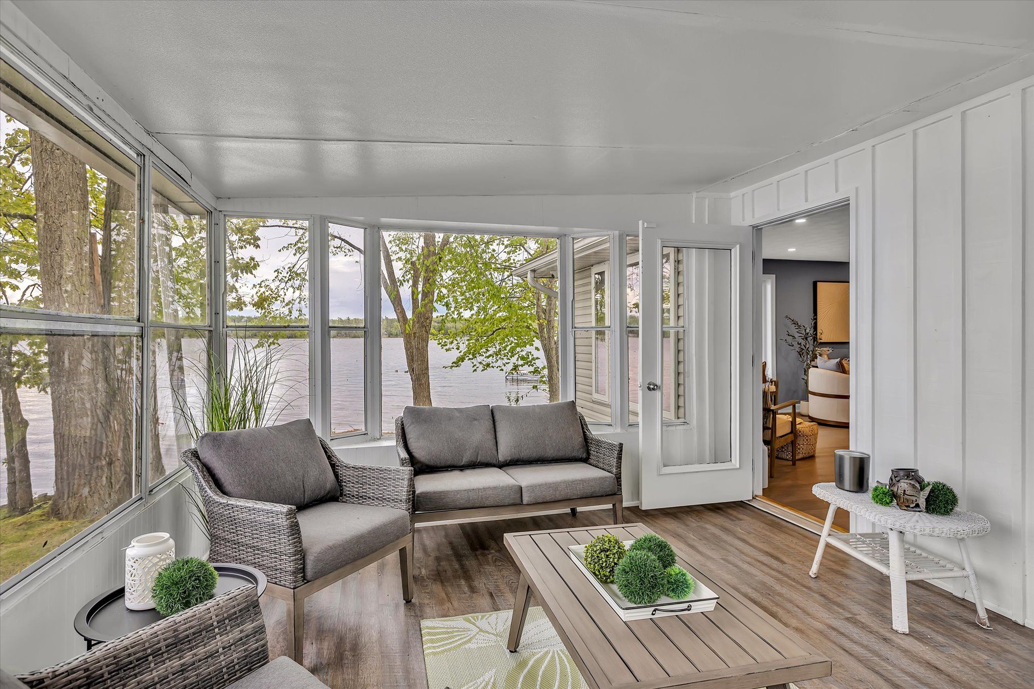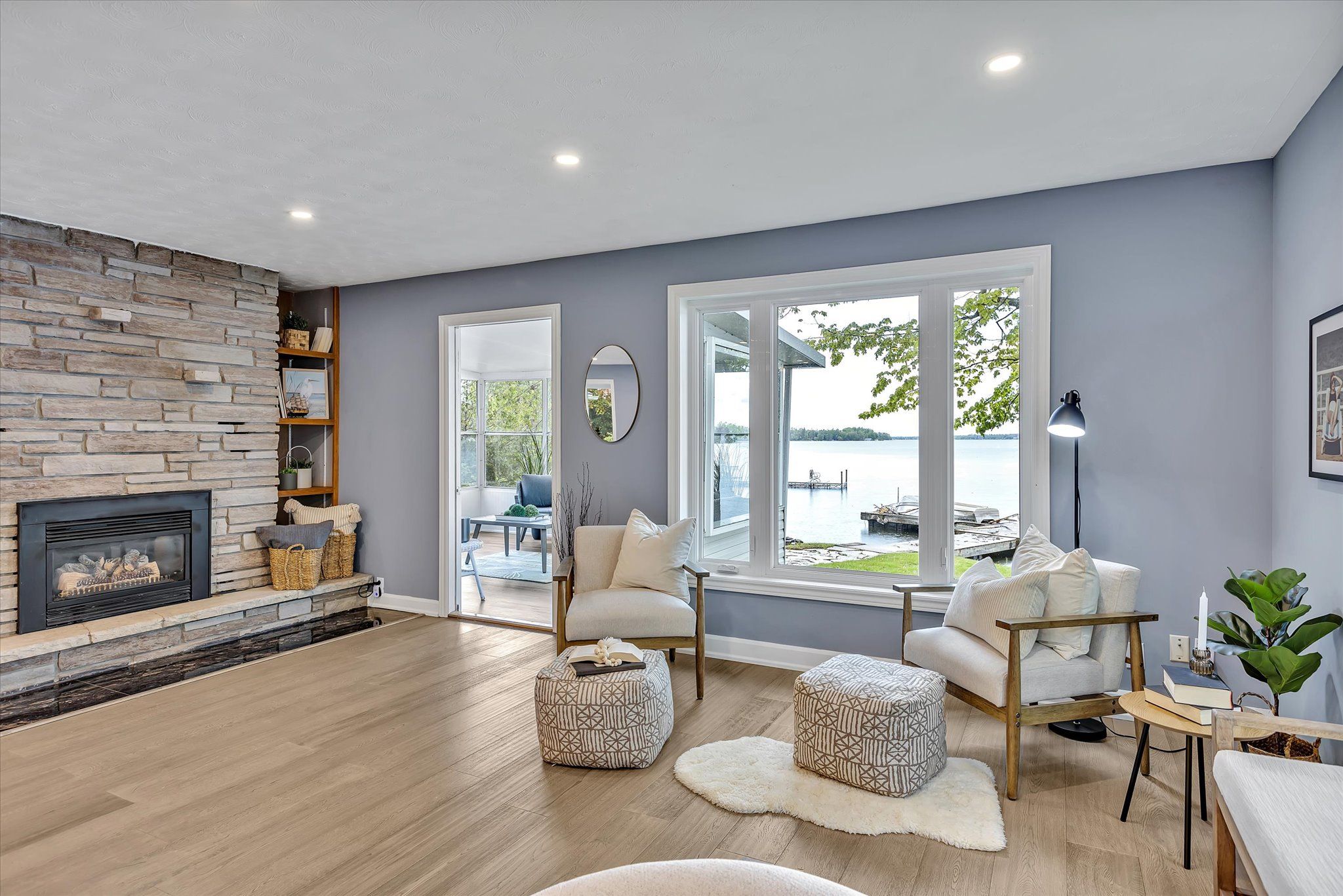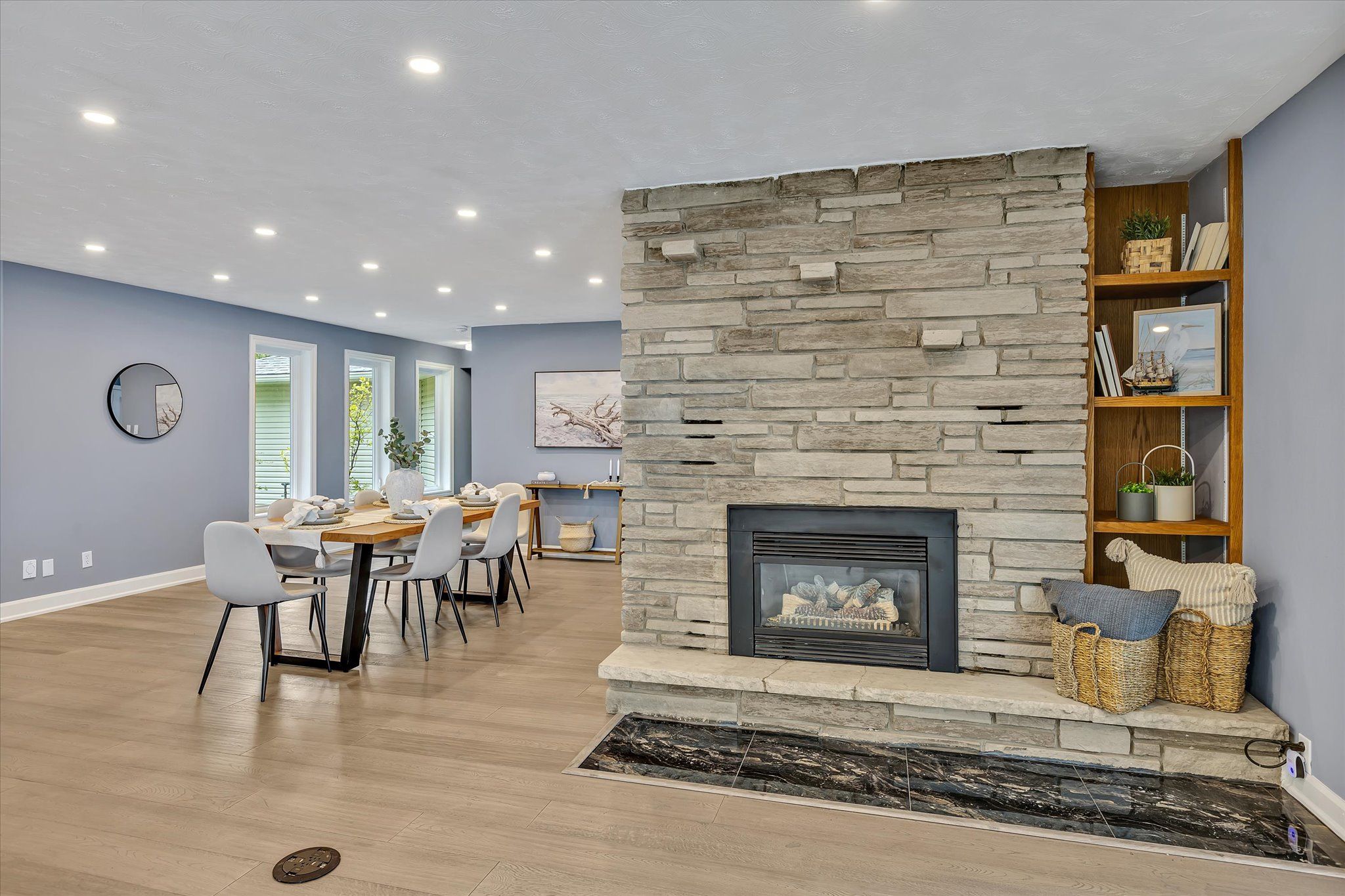 • Spacious living room featuring a gas fireplace and access to a sunroom.