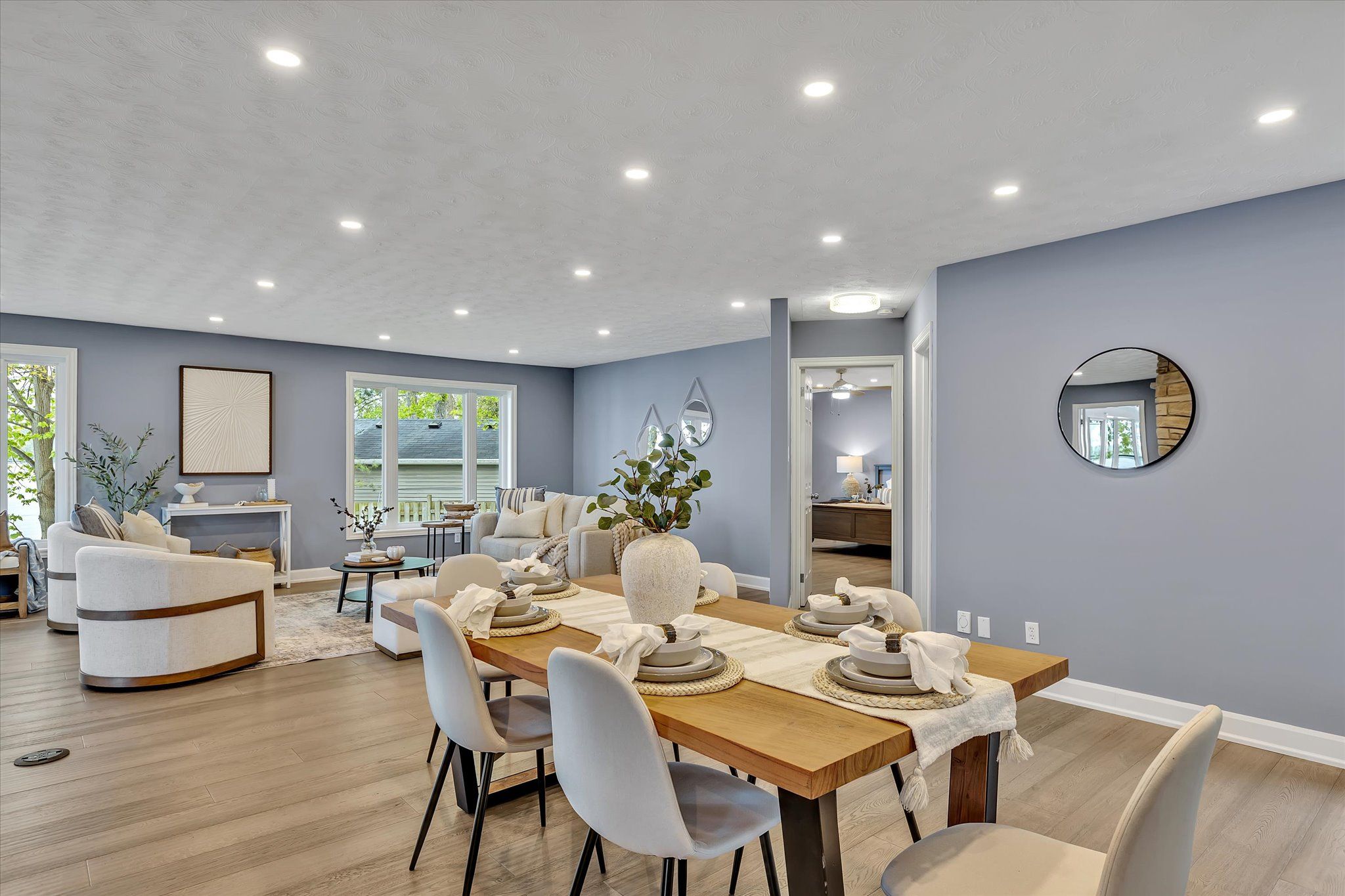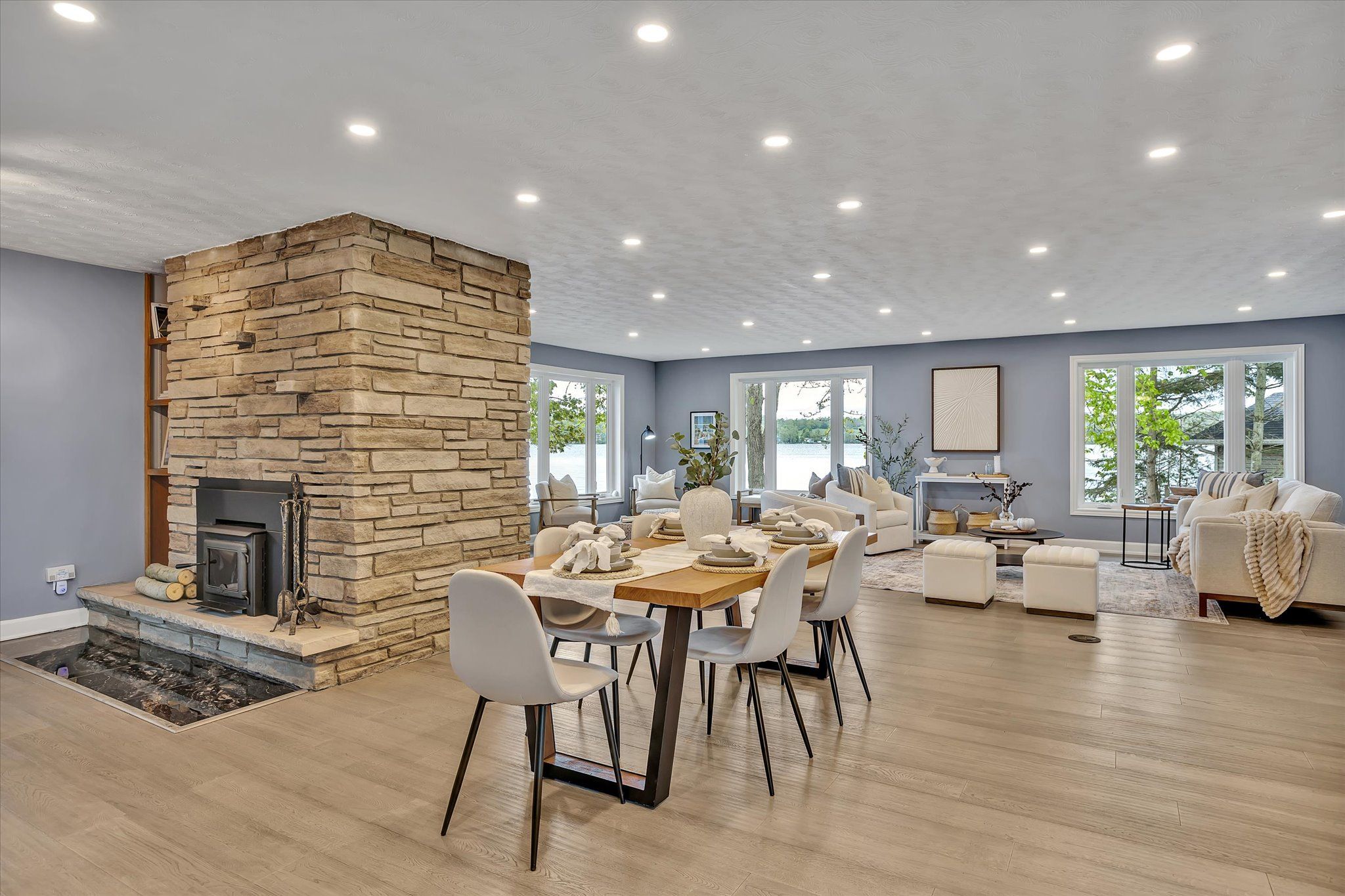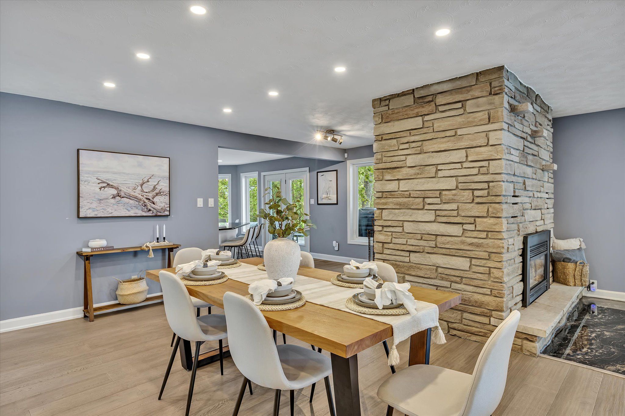 • Spacious living room featuring a gas fireplace and access to a sunroom.