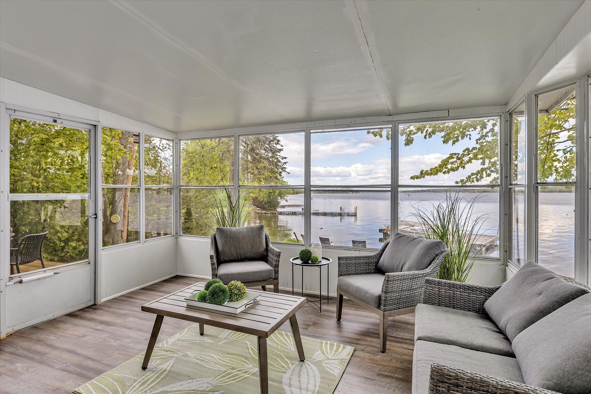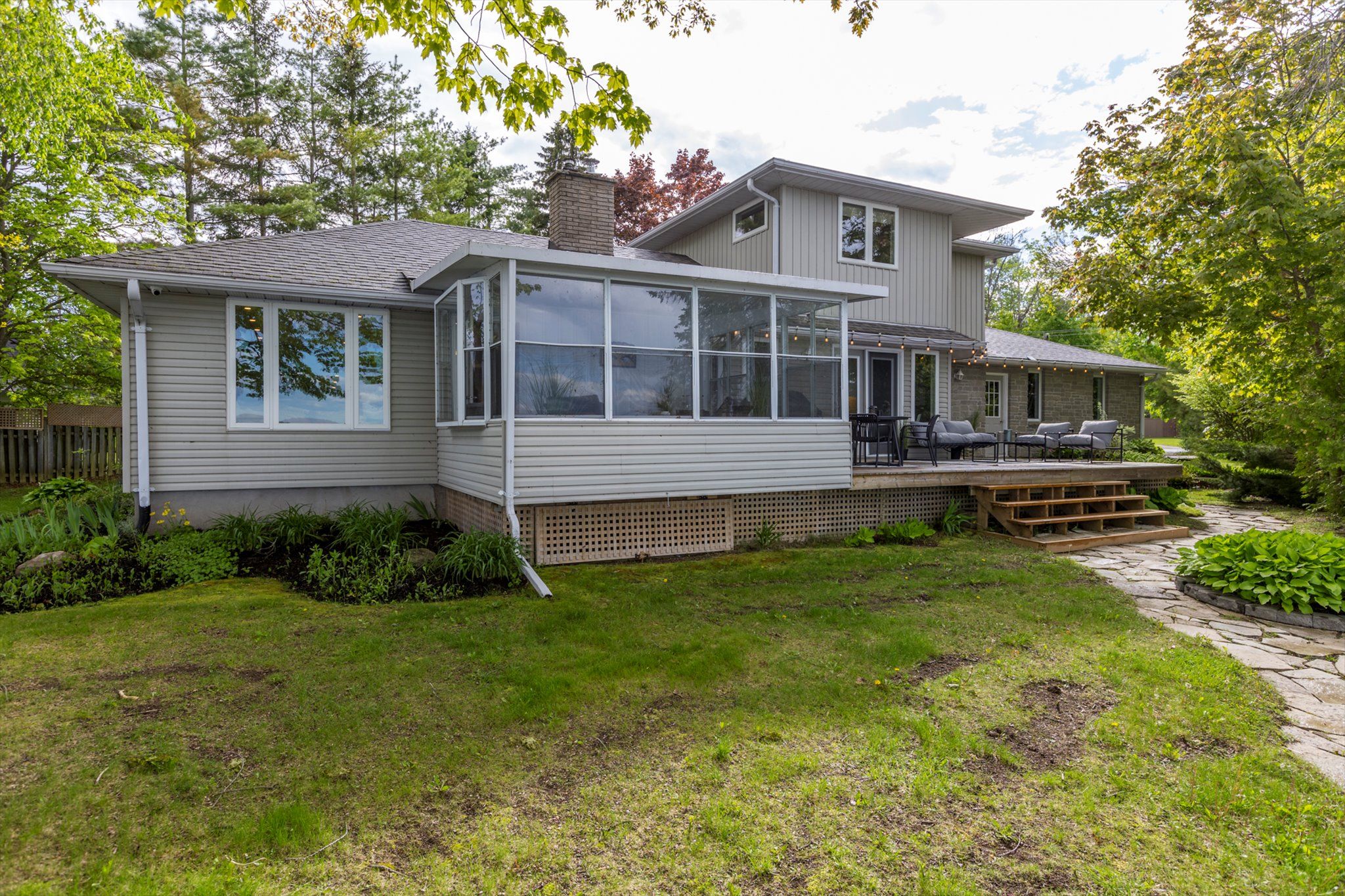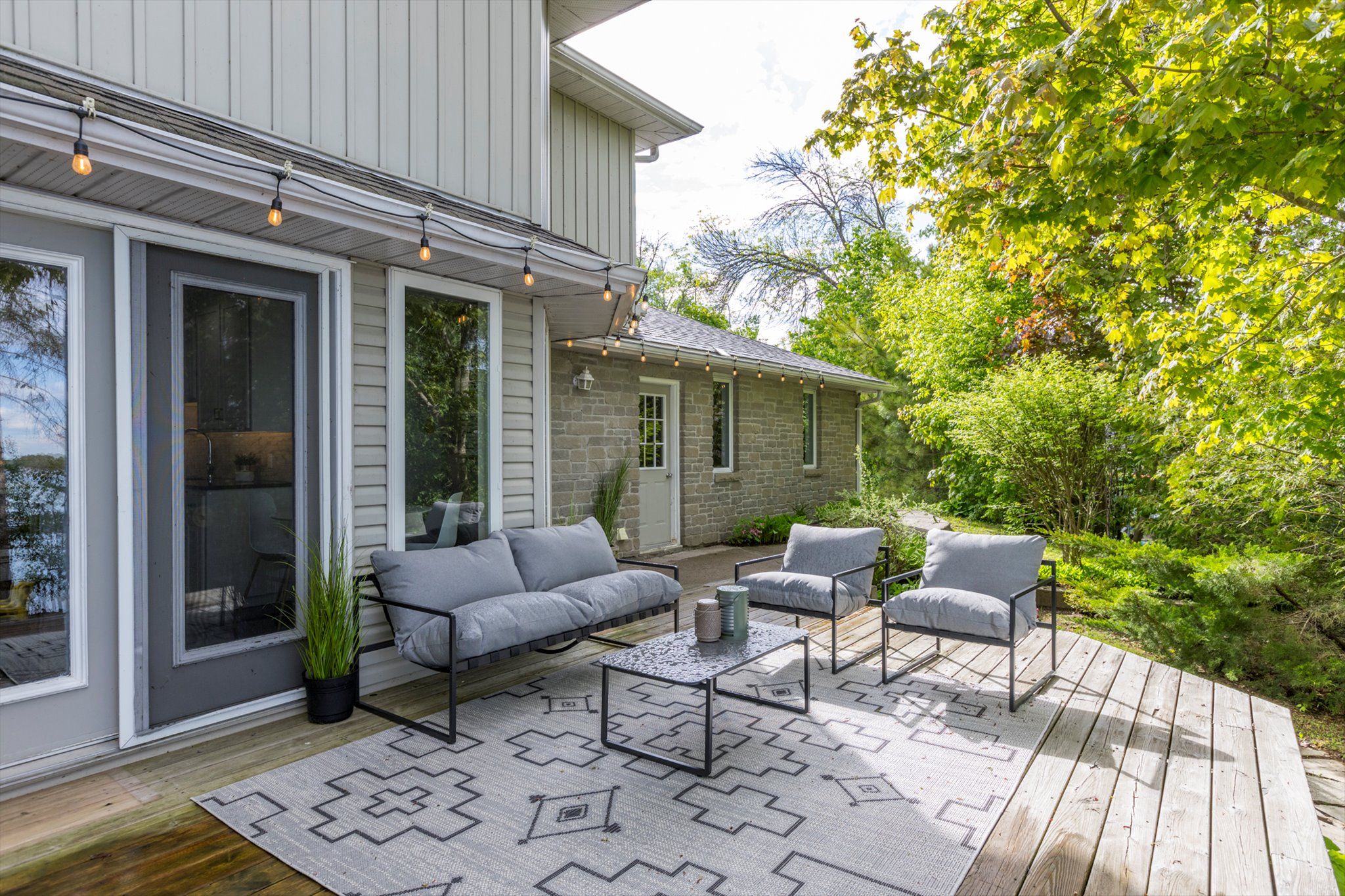 This spectacular lakeside home on chemong lake offers over 160 feet of frontage (not including the canal) and a sense of unparalleled privacy. Spanning 2,560 square feet, this custom-designed home showcases breathtaking lake views from all principal rooms. The unique 2+2 bedroom layout provides flexibility, with a lakeside primary suite featuring a walk-in closet and a 4-piece cheater en suite on the main floor. The spacious living room, with newer floors, freshly painted through out, gas fireplace, and access to a 3-season sunroom, is perfect for relaxation or entertaining while enjoying commanding views of the lake. The recently updated kitchen boasts granite countertops, stainless steel appliances, and a modern design. Upstairs, the private second level includes two large bedrooms and a full bathroom, making it ideal for guests or older children. Additional highlights include main floor laundry and a perfect blend of charm and functionality, making this an ideal retreat or year-round residence.