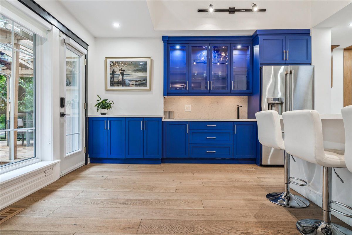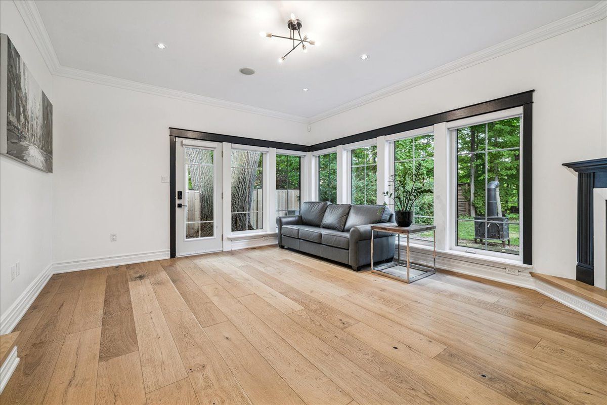 Welcome to 409 river side drive, an exceptionally rare waterfront offering in the heart of oakville. Set on a breathtaking 151 ft deep, tree-studded lot backing directly onto sixteen mile creek and the ravine, this property combines natural beauty with modern sophistication in one of the towns most coveted settings. Renovated top to bottom, the home showcases a striking main floor designed with walls of glass, flooding every space with natural sunlight and offering serene views of the lush surroundings. The open concept layout creates an inviting atmosphere for both everyday living and entertaining, blending contemporary finishes with a timeless sense of comfort. The newly finished lower level features a spacious recreation room, ideal for a home theatre, gym, or lounge. Upstairs, the trendy primary suite serves as a private retreat, pairing stylish design with tranquil vistas of the ravine. Every corner of this residence has been thoughtfully updated, balancing modern convenience with the homes unique character. Perfectly located, you're steps from kerr street village with its charming shops, cafés, and restaurants, a short stroll to the lake, and just minutes to the qew for easy commuting. This home represents a rare chance to own a completely modernized residence on a remarkable lot with an unmatched natural backdrop all within walking distance of downtown oakville's vibrant lifestyle. 409 river side drive is more than a home; its an experience of light, space, and connection to nature in the centre of oakville.
