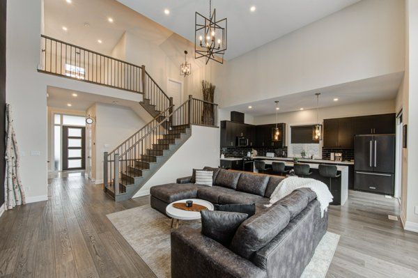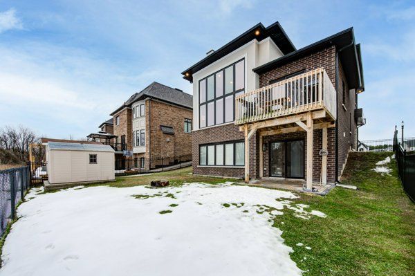 This striking contemporary home makes an immediate impression with its brick and stone exterior accented by warm wood details. Inside you will find engineered hardwood and tile flooring complemented by thoughtful, high-end finishes and grand doorways to enhance the luxury aesthetic. The open-concept layout boasts 10-16-20 ft ceilings throughout and is anchored by a dramatic great room featuring soaring ceilings, a fireplace, and expansive windows overlooking a ravine lot behind which you will often see deer grazing. The modern kitchen offers a large island, quality cabinetry, quartz countertops, and premium appliances, seamlessly connecting to the main living space. Smart home wiring, upgraded lighting, and gas lines installed on both the upper and lower levels and a large double garage wired for electric vehicle charging enhance comfort, convenience, and functionality. Designed with flexibility in mind, the home features an ensuite for every bedroom, a main-floor bedroom, and a fully finished walkout basement complete with an in-law suite, offering a total of 3+1 bedrooms and 4+1 bathrooms. An exceptional blend of style, thoughtful design, and natural surroundings.