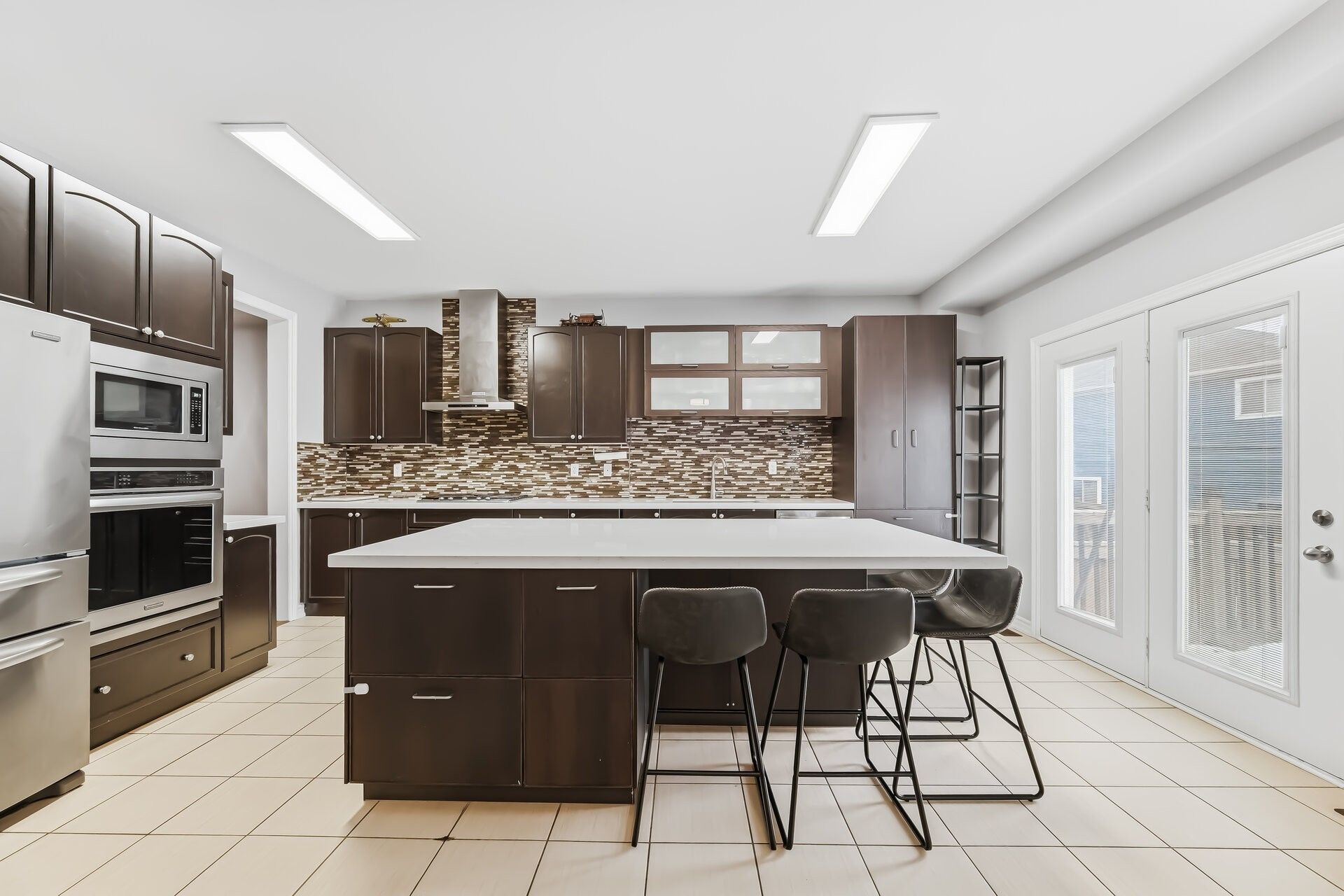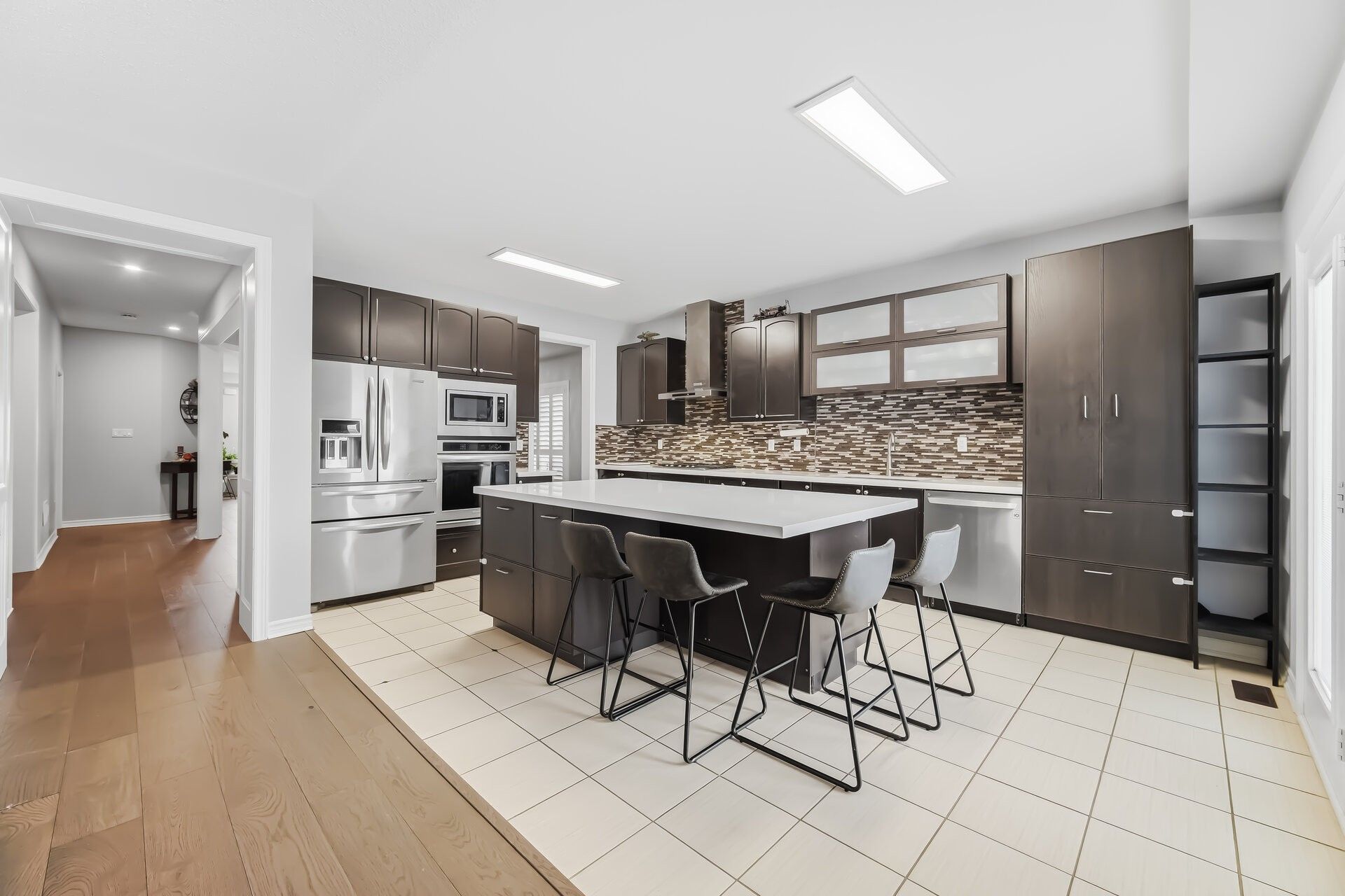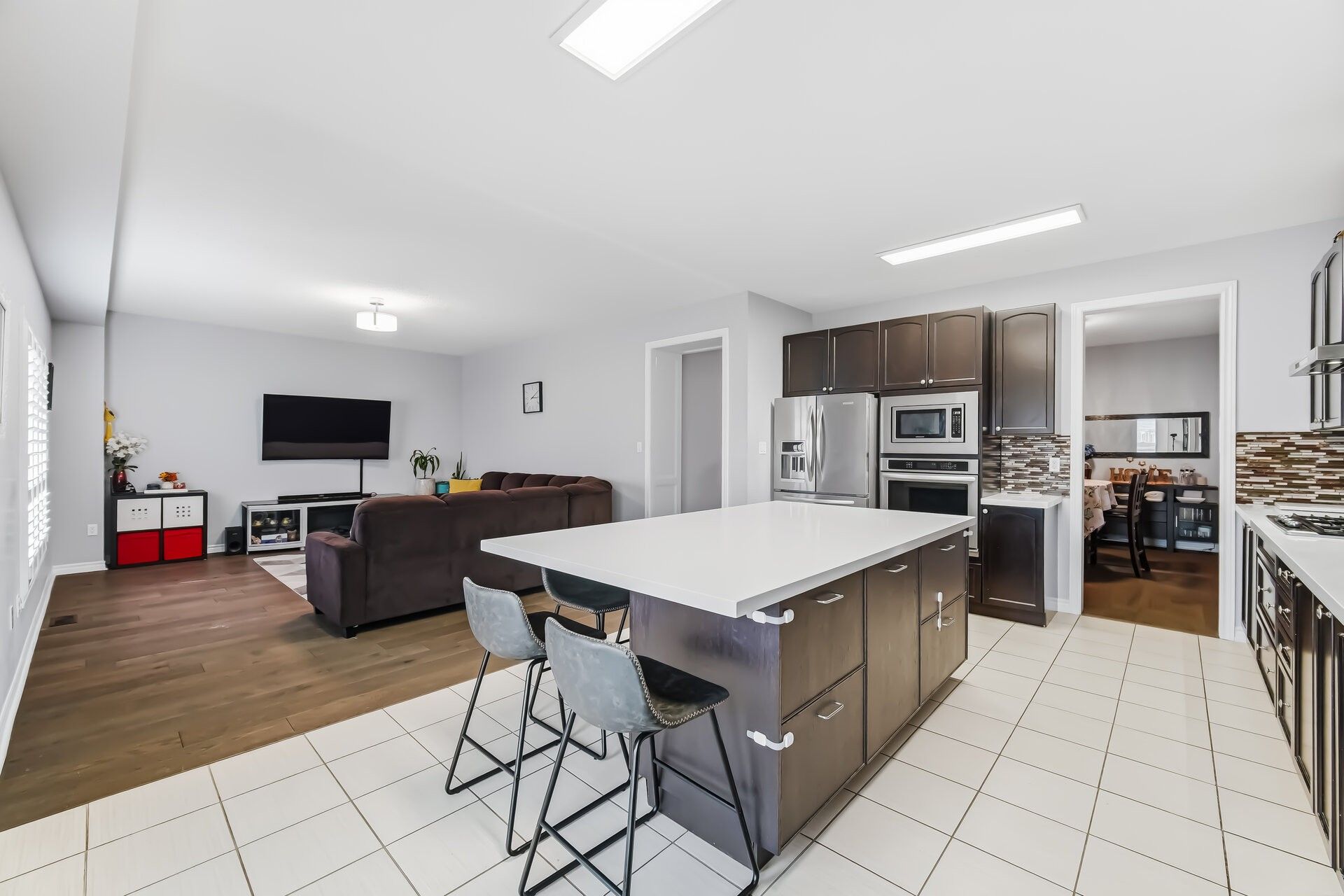 • Kitchen features stainless steel appliances and a cozy breakfast area.
