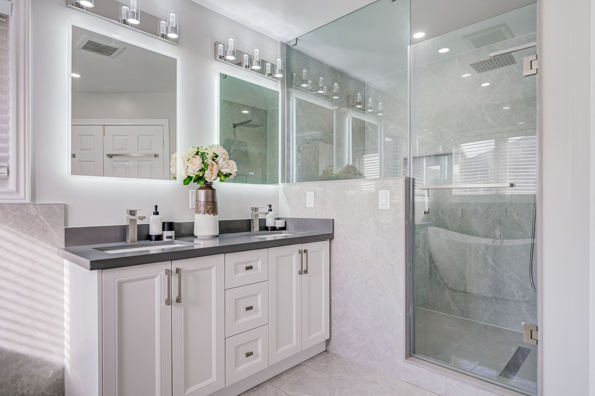 • Modern kitchen featuring stainless steel appliances and quartz countertops.