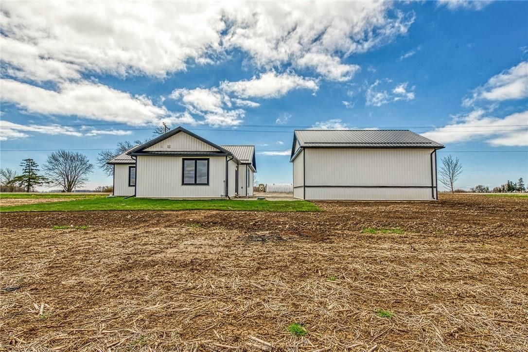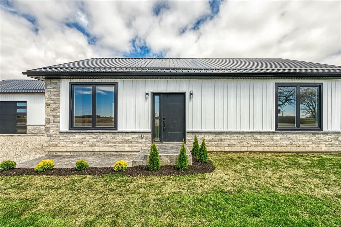 Stunning, custom built 1680 sq ft 3 bedroom, 2 bathroom bungalow with sought after 25 x 30 detached garage with concrete floor all situated on private country lot with 155 ft of frontage on rainham road. Incredible curb appeal with stone & complimenting vinyl sided exterior, welcoming front stamped concrete walkway, detached garage, & desired steel roof. The gorgeous open concept interior features high quality finishes throughout highlighted by custom kitchen with quartz countertops & eat at island with stone accents, dining area, living room with built in fireplace, 3 spacious bedrooms including primary bedroom with chic 5 pc ensuite with herringbone tile flooring, additional 4 pc bathroom, & mf laundry. The unfinished basement is fully studded and insulated allowing for it to be easily finished to add to overall living space and provides ample storage. Must view to appreciate the attention to detail and quality workmanship throughout this custom built selkirk home.