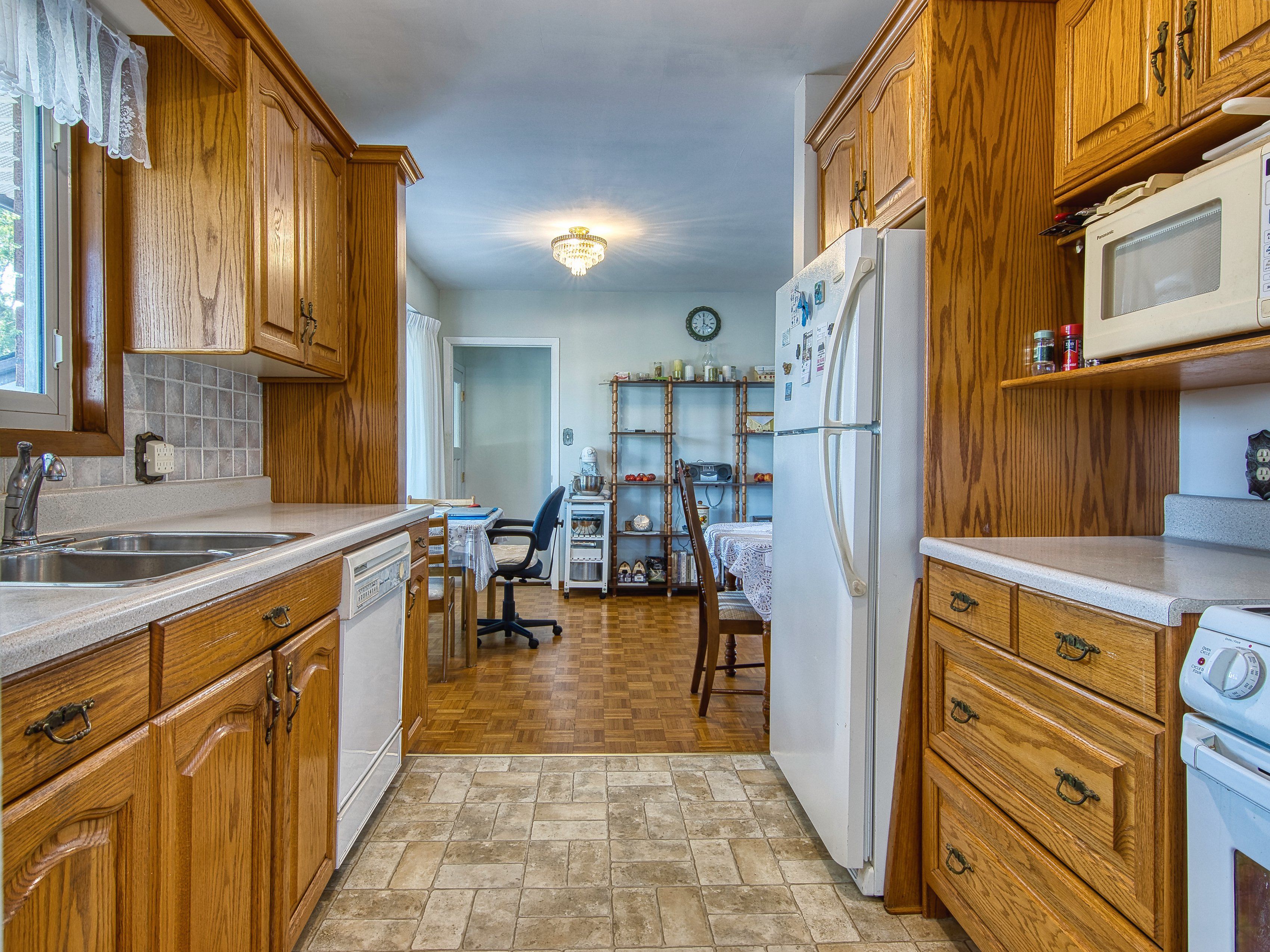 • Updated kitchen with oak cabinets and views of the park.