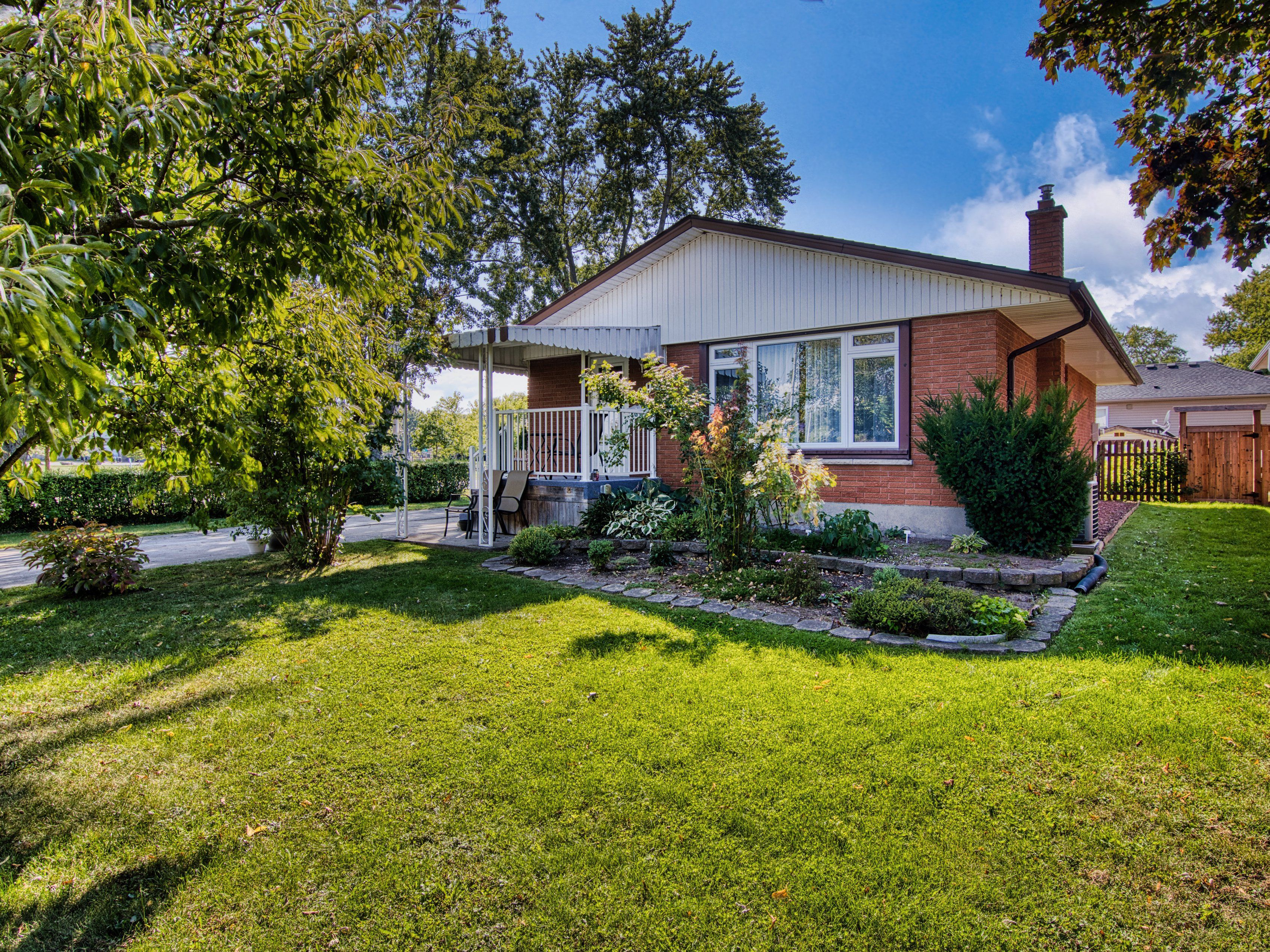Chippawa, that small town feel. 3 bedroom brick bungalow, 4 season sunroom. Concrete patio. House offers hardwood floors in bedrooms and dining room. Laminate in living room. Updated kitchen, oak cabinets. Dining room with views of the park. Basement family room, summer kitchen and laundry room. 3 piece bath with jacuzzi corner tub. Windows replaced, furnace and central air in 2009. Hot water tank owned 2025, shingles 2012, recent fencing in 2025. Concrete double driveway.