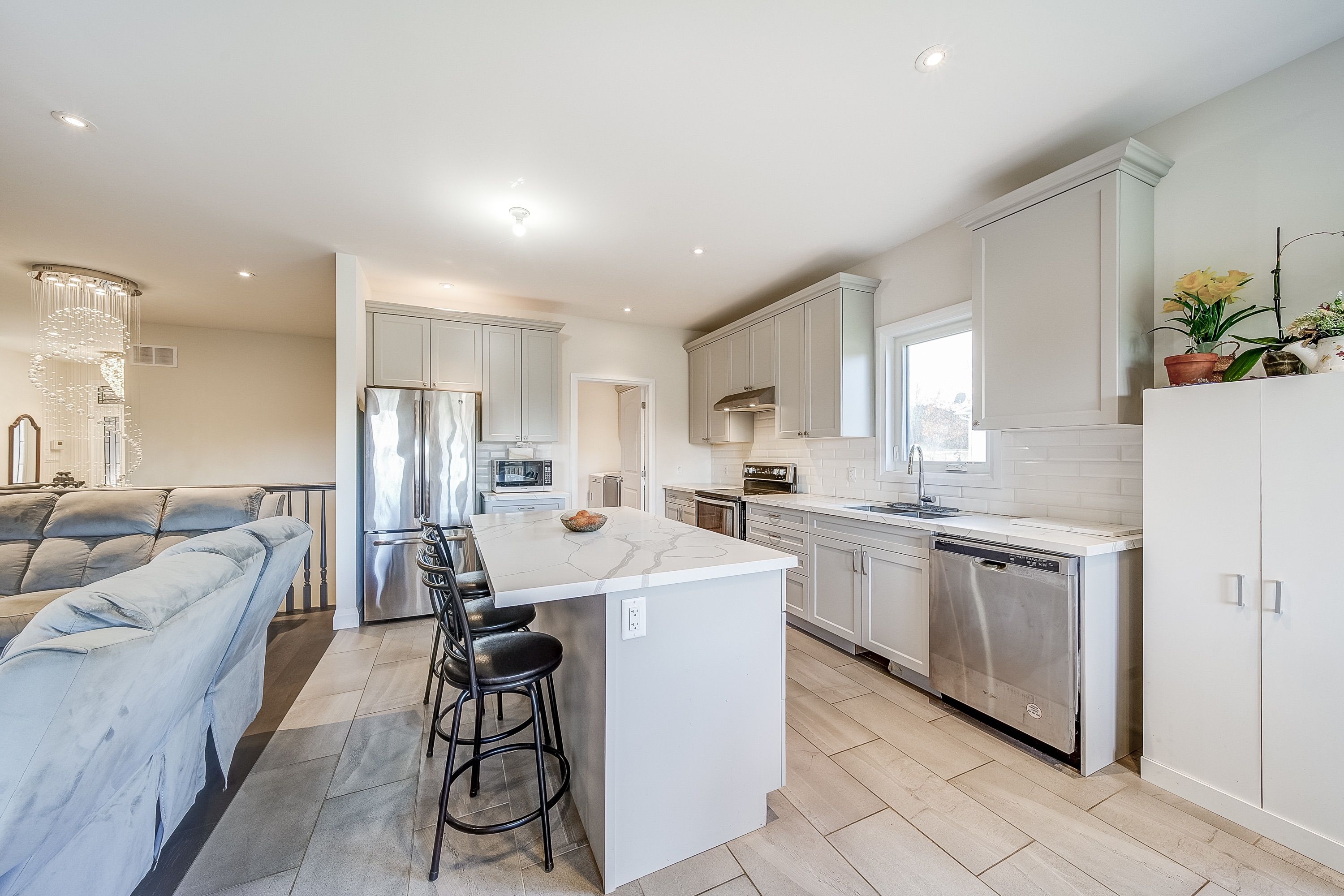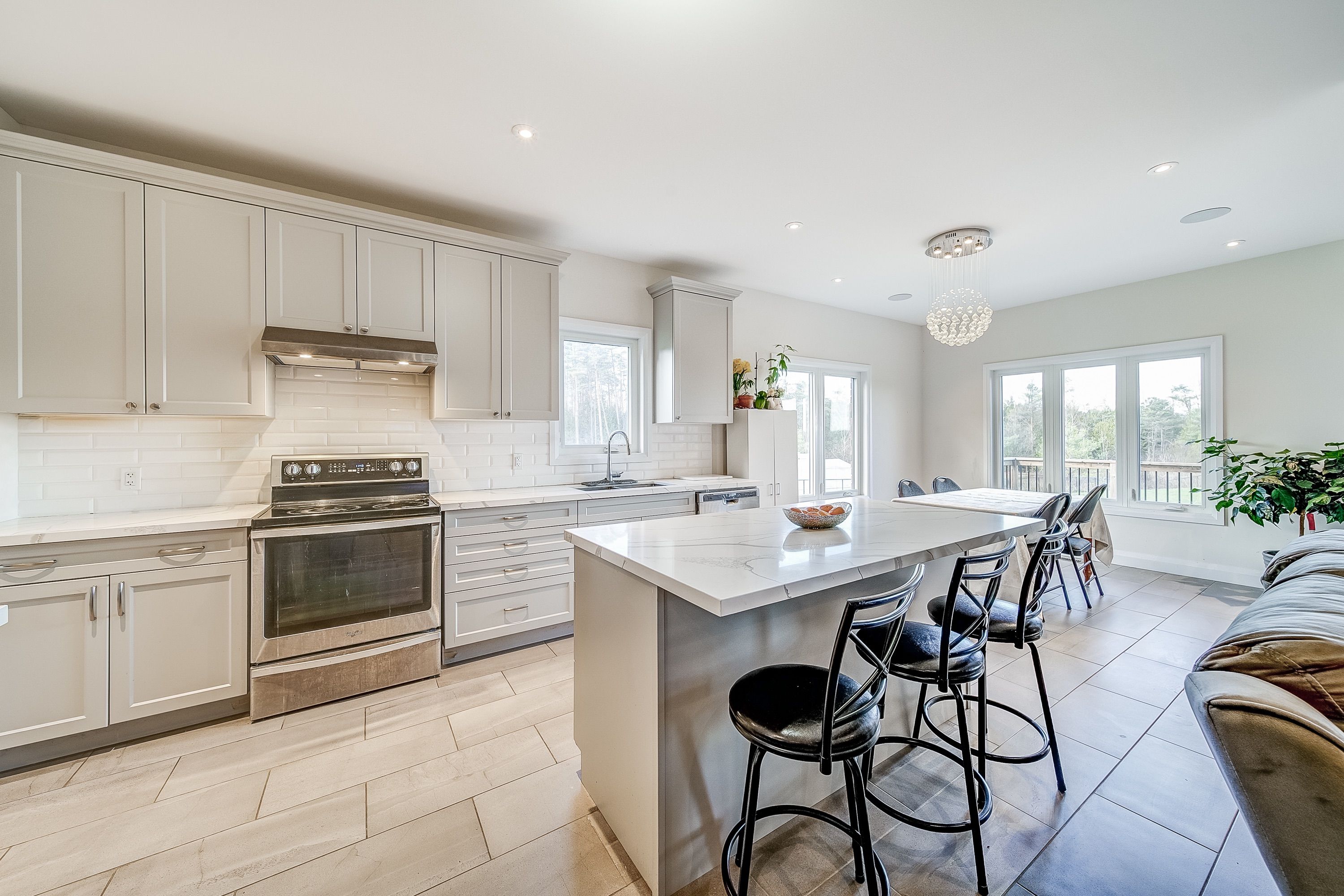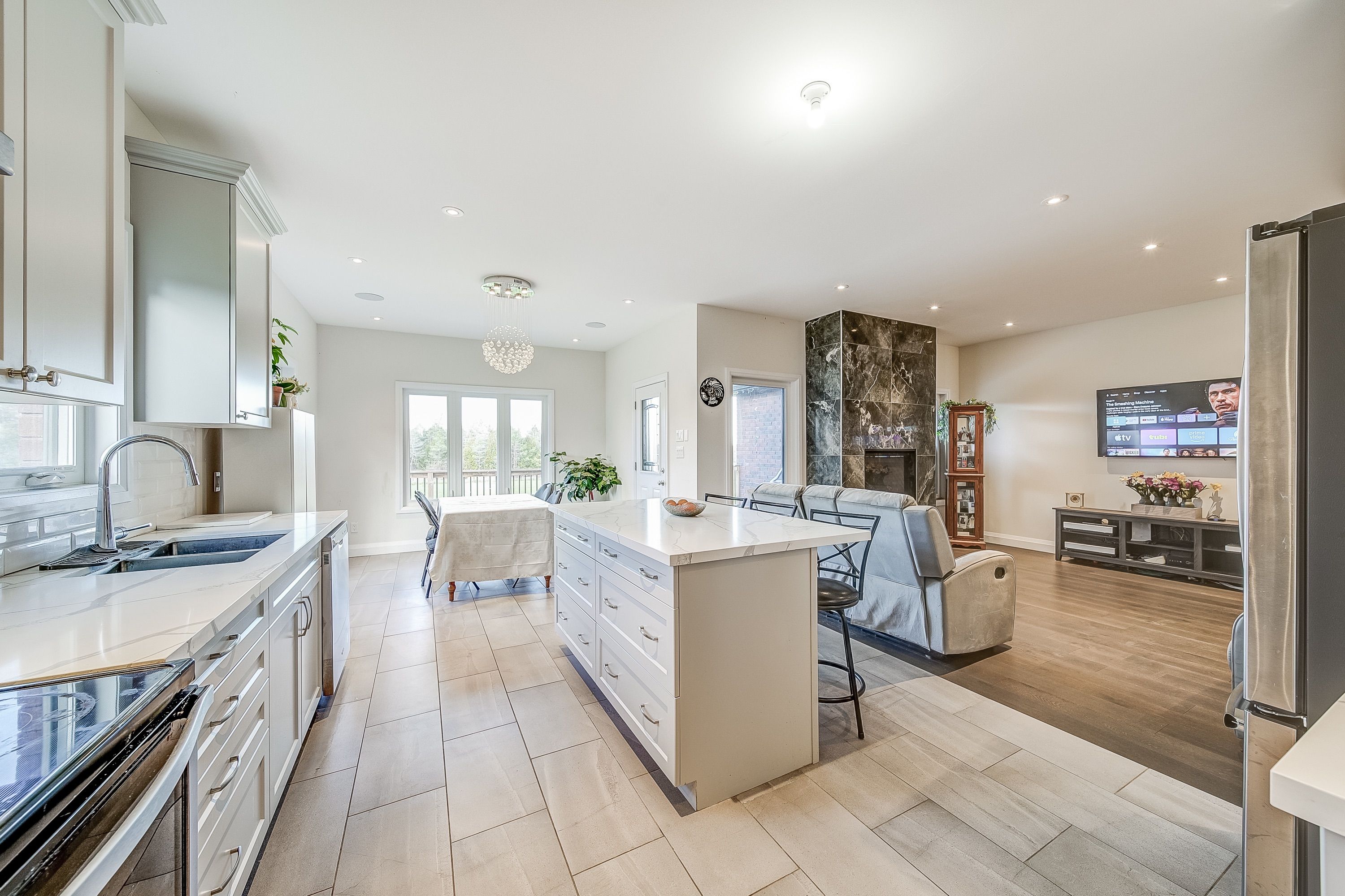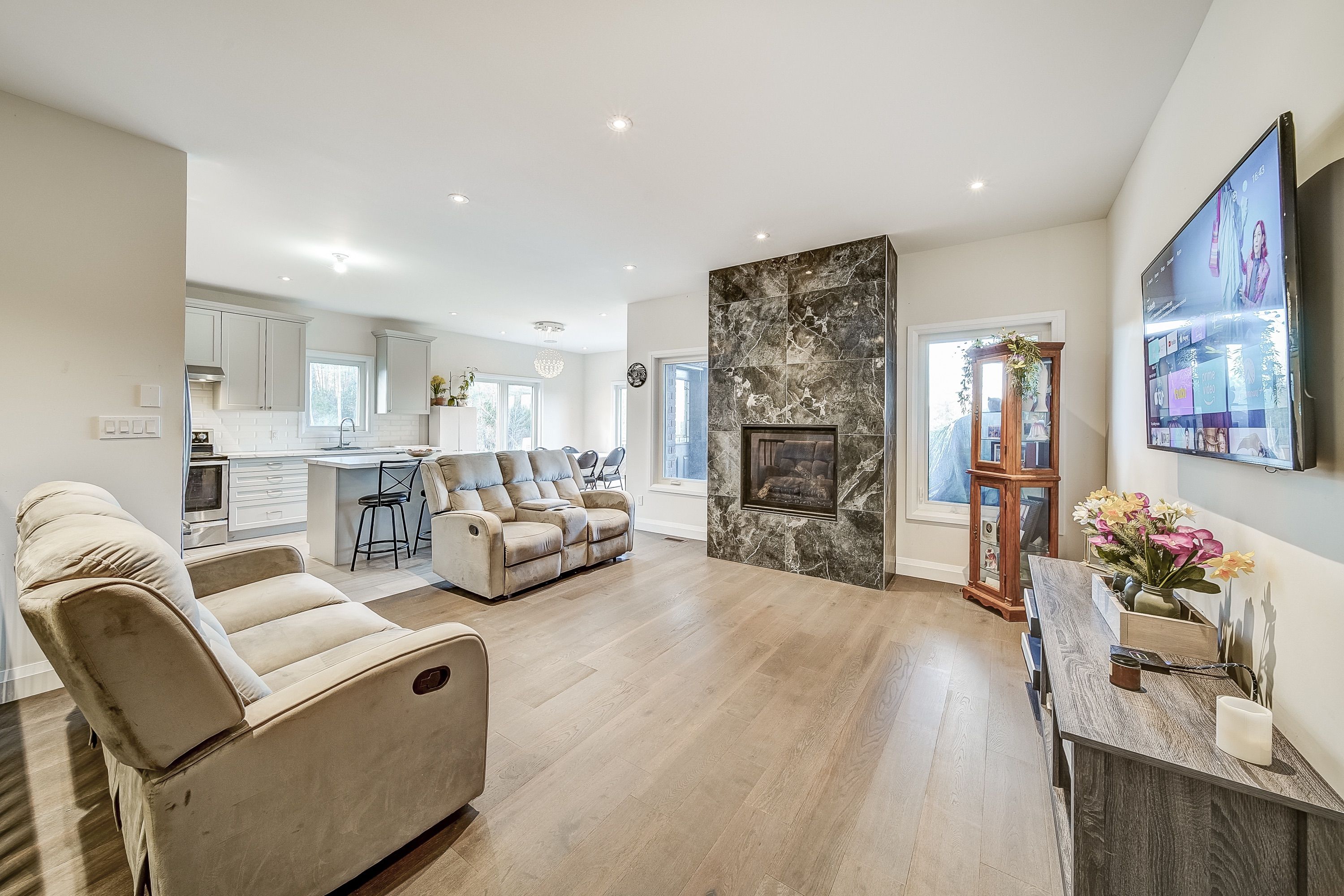 • Open concept layout with a bright living space and floor to ceiling fireplace.