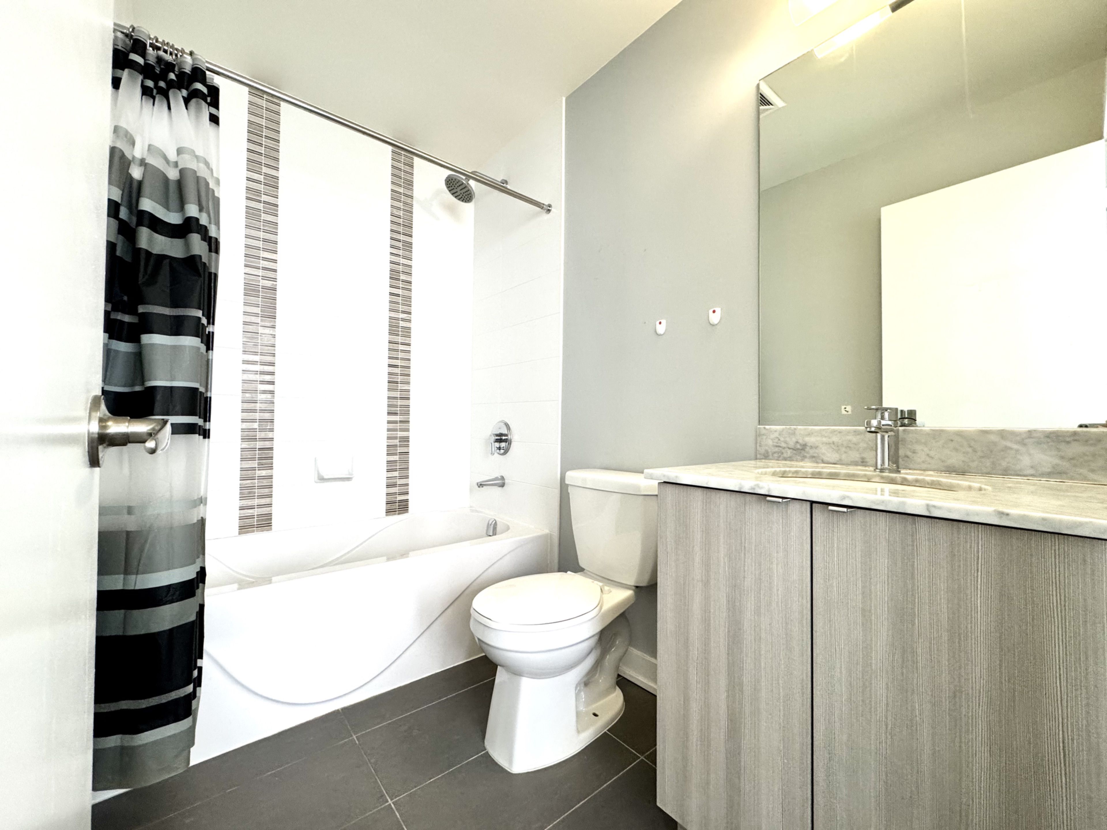 Stunning 2-bedroom, 2-bathroom corner suite for lease in the heart of mississauga's vibrant city centre, just steps from celebration square. This fully upgraded and luxurious residence features 9-foot floor-to-ceiling windows that flood the space with natural light and showcase breathtaking unobstructed east, south, and north views with no buildings blocking the scenery. The suite boasts builder-upgraded hardwood and tile flooring throughout, elegantly upgraded bathrooms, high-end light fixtures, and sleek roller shades across the entire unit, offering a sophisticated and modern living experience.