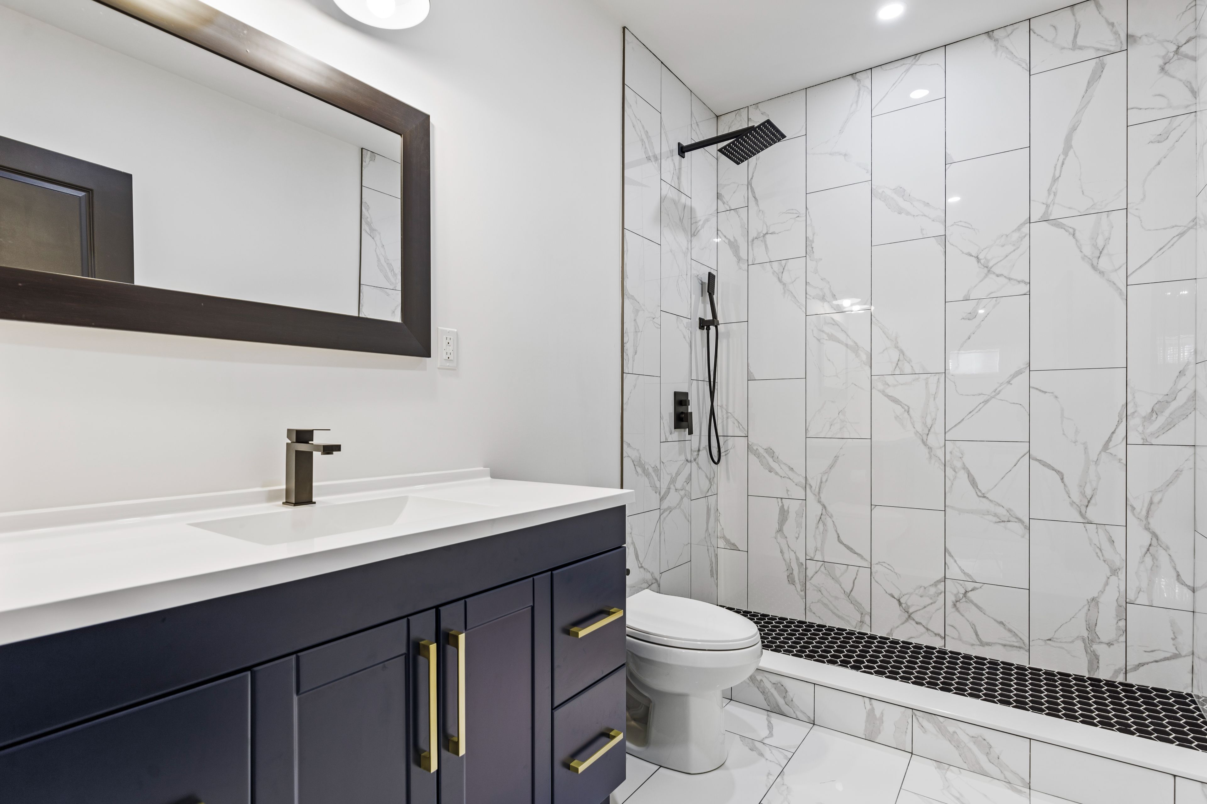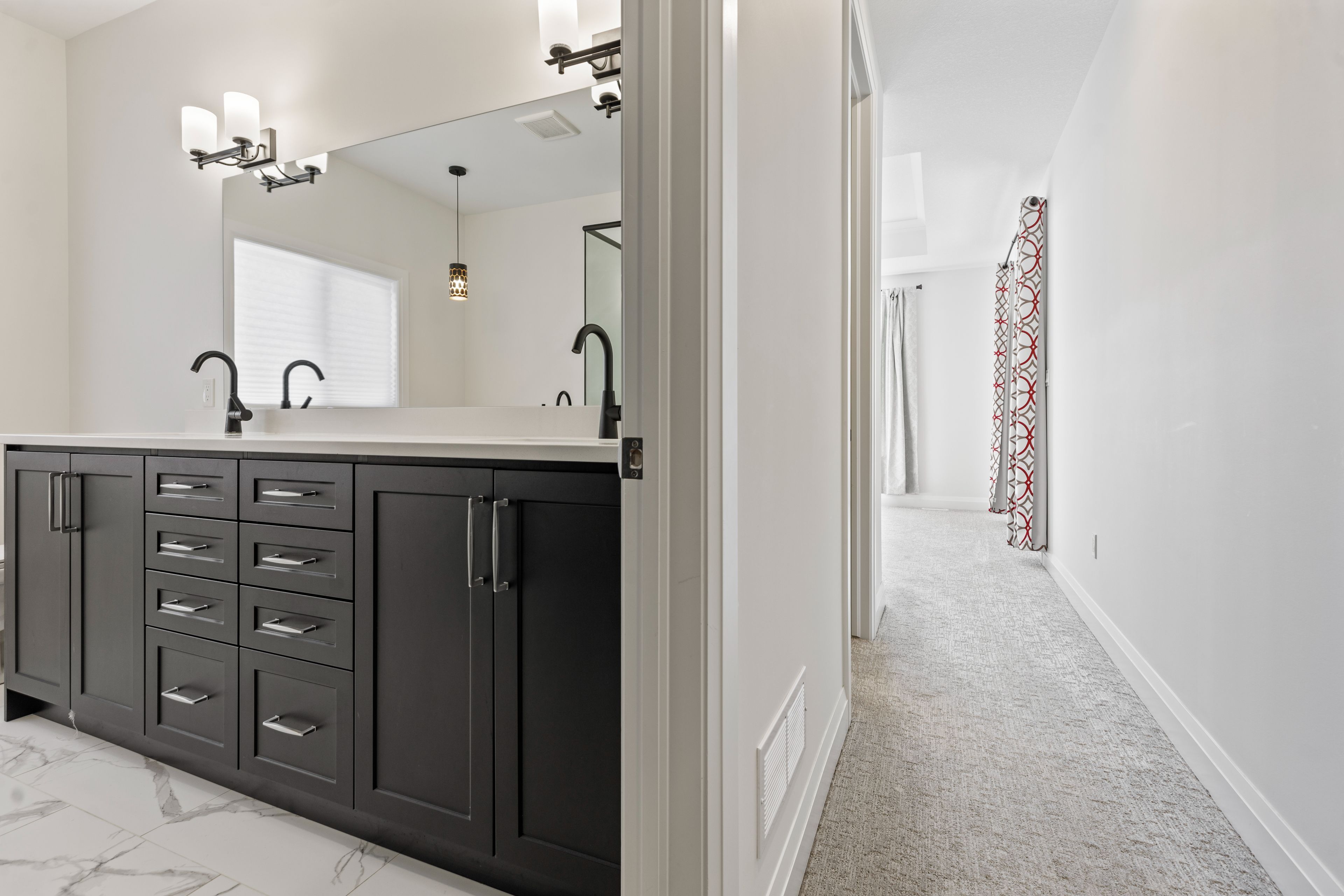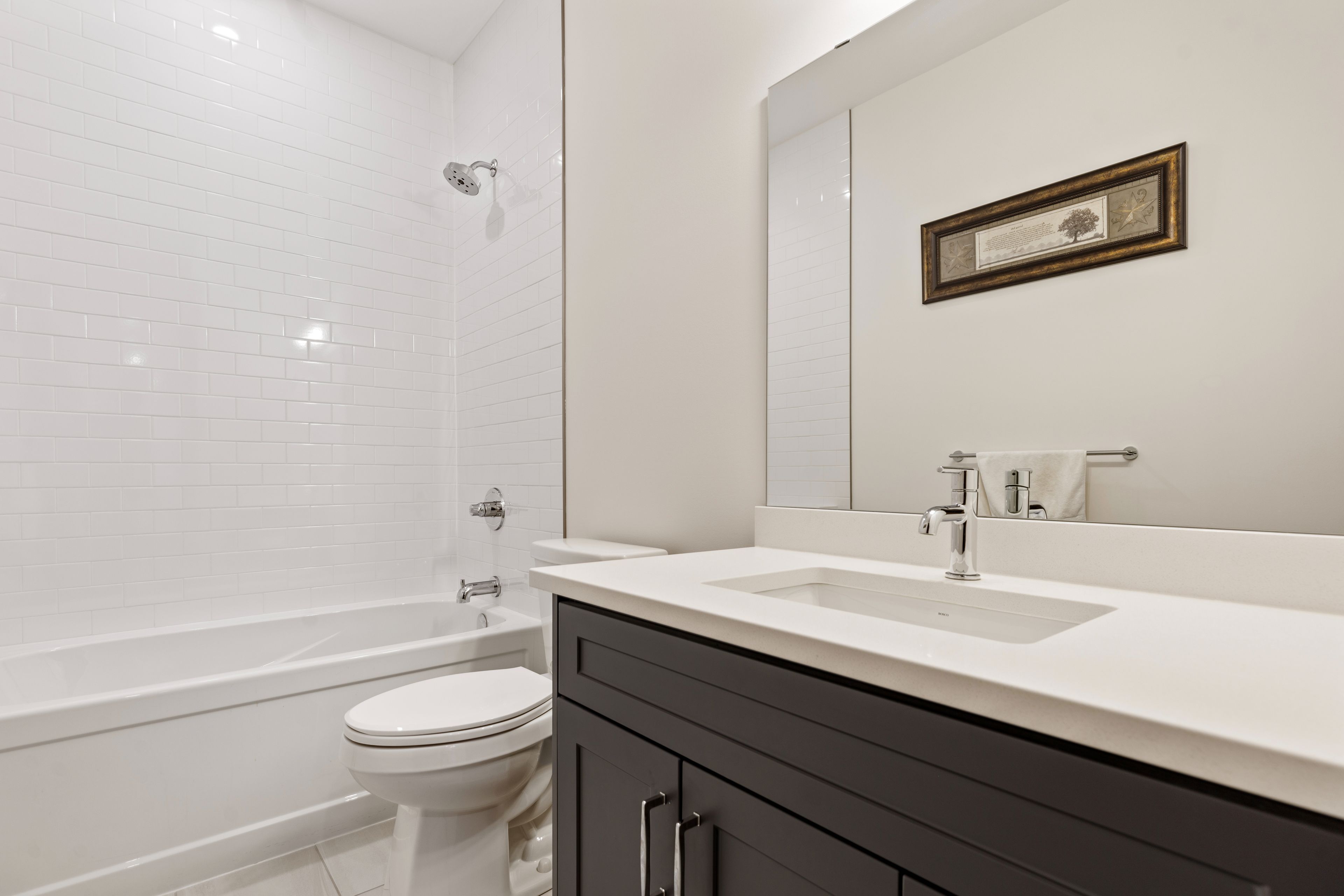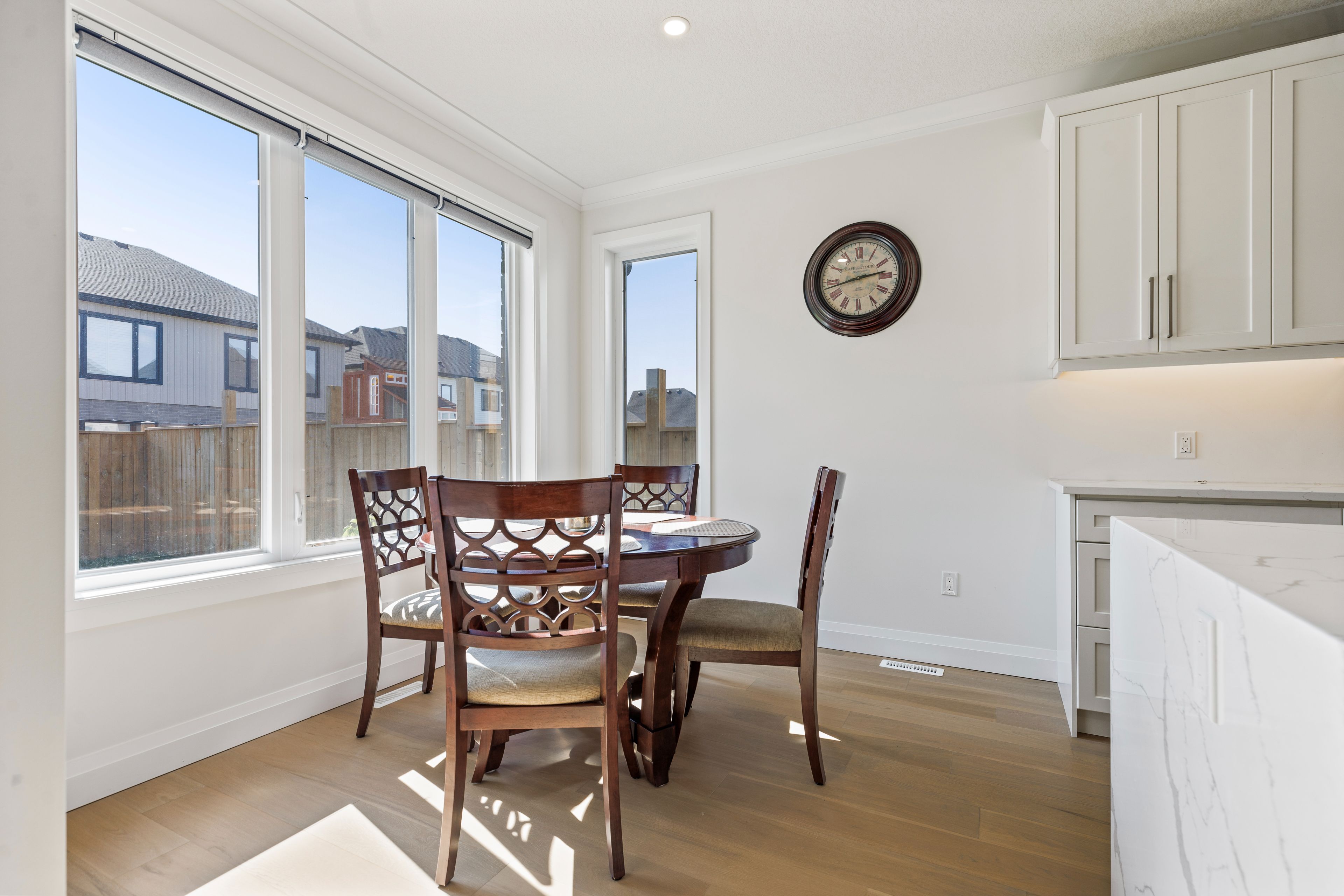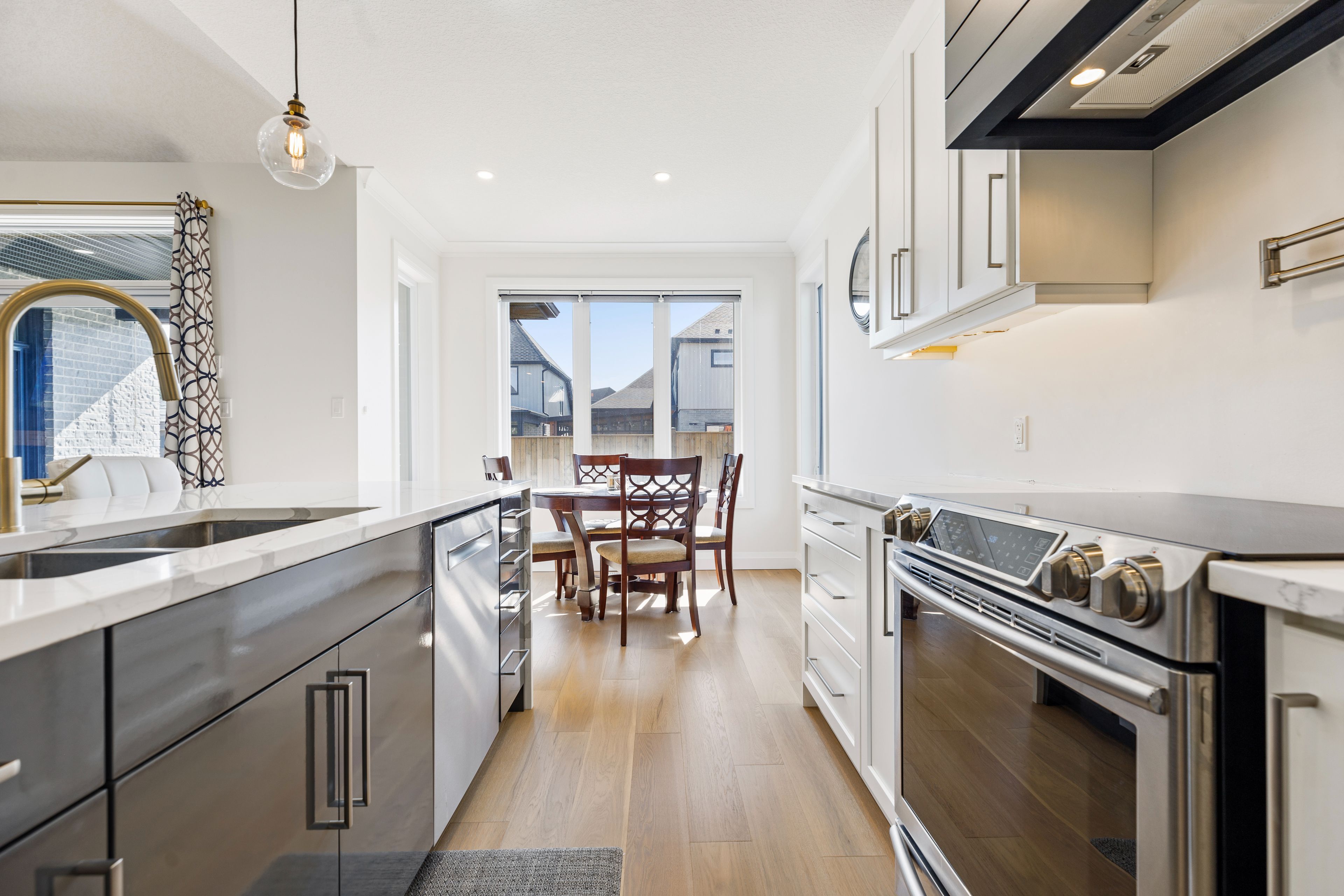 • Open-concept design features 9-foot ceilings and engineered hardwood floors.