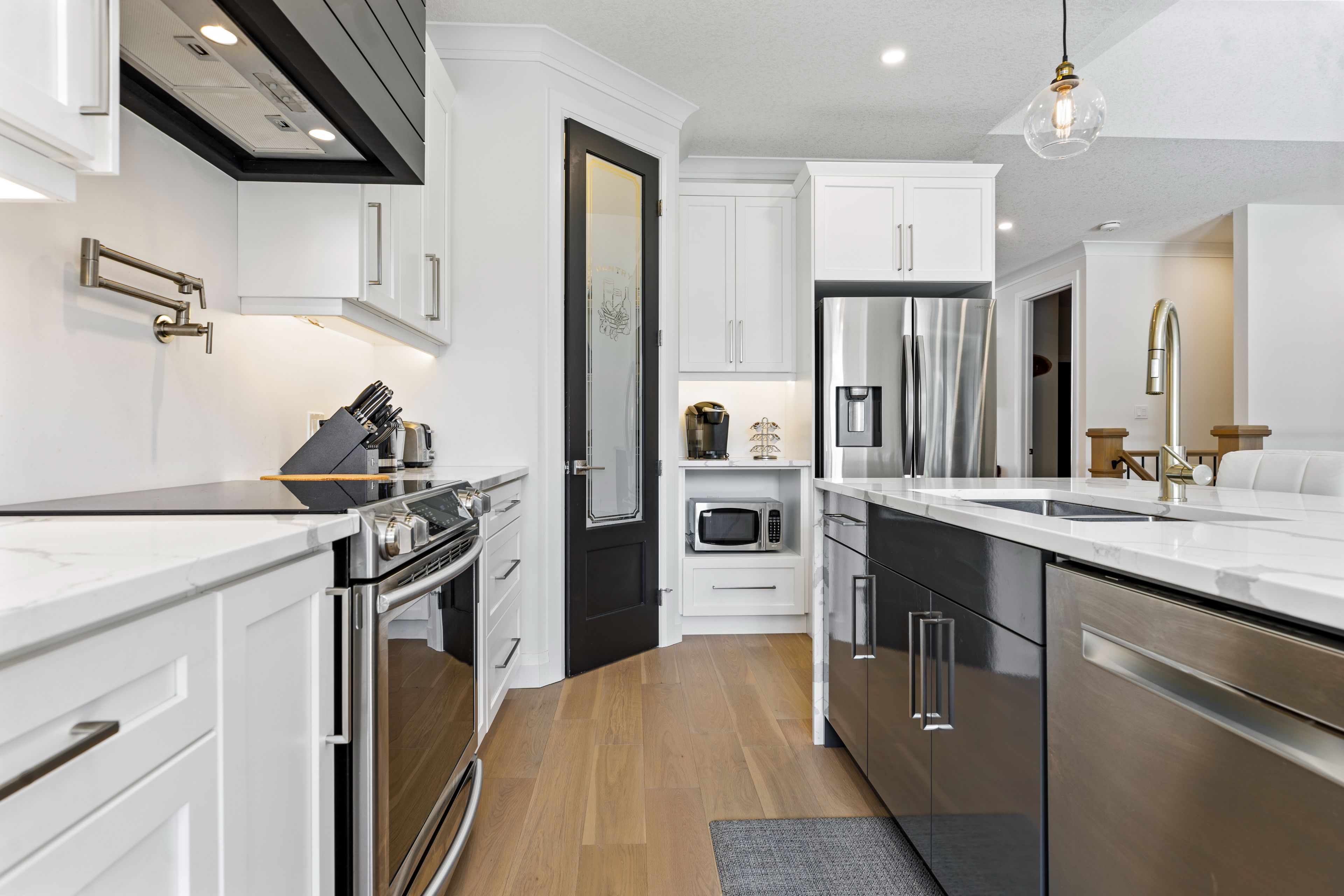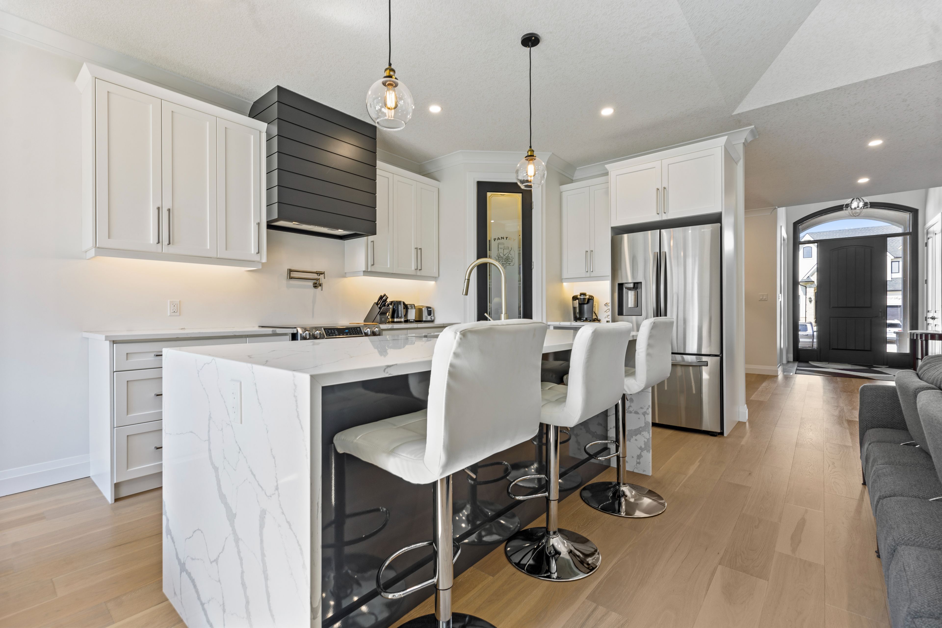 • Chef-inspired kitchen with premium Bosch appliances and waterfal island.
