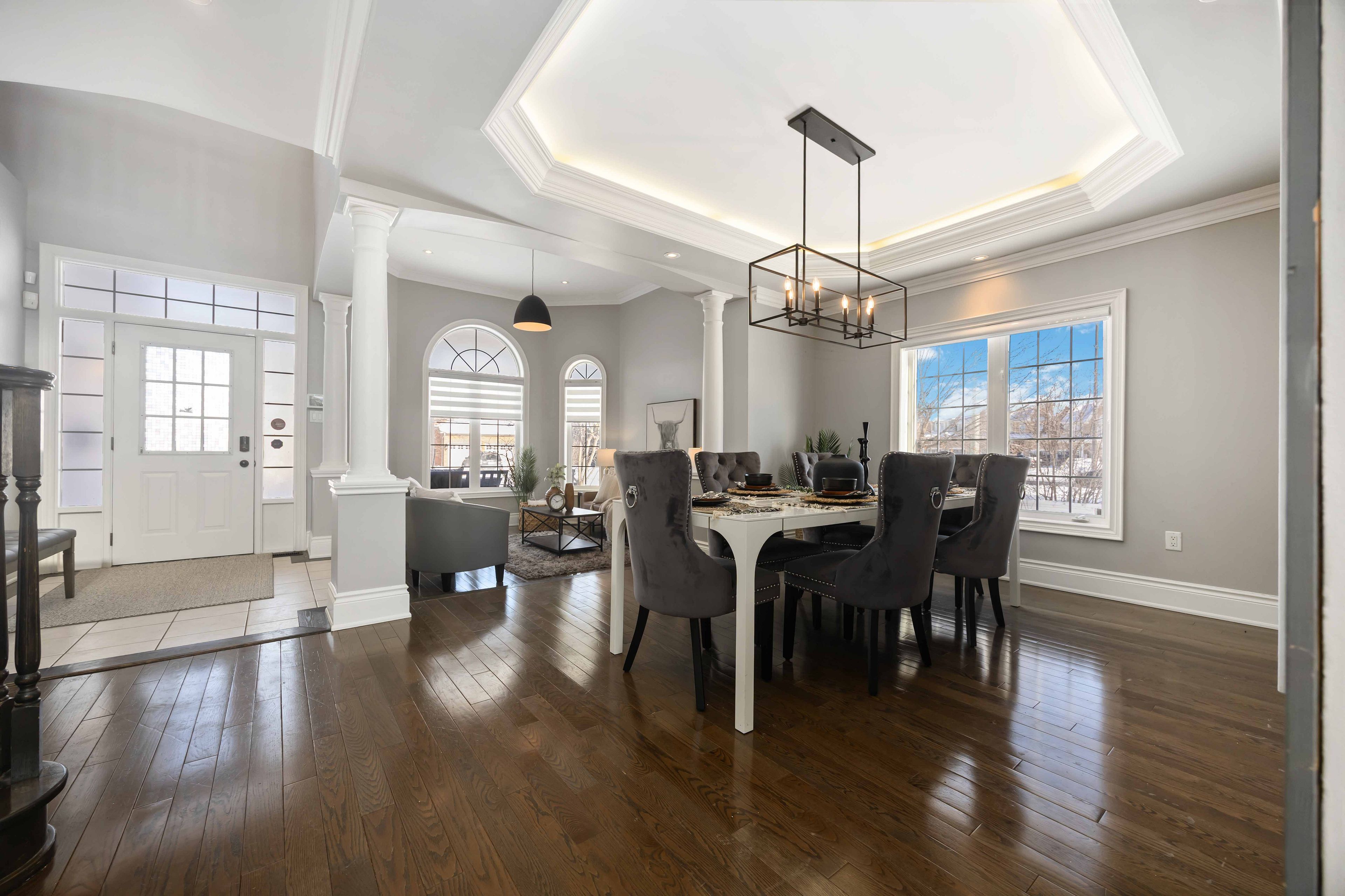Welcome to 41 apsley crescent! From the moment you arrive, this home impresses with inviting curb appeal, a charming front porch, and a rare pool-size lot featuring two side-yard gates, parking for six vehicles, and no sidewalk to shovel!!! Step inside to a bright, open-concept layout flooded with natural light. Thoughtful upgrades include extensive pot lighting, custom wainscoting, crown moulding, and gorgeous hardwood floors throughout-anchored by a grand centre-hall staircase. The formal sunken living room and elegant dining room with coffered ceiling provide the perfect setting for entertaining. The gourmet kitchen is a showstopper, boasting vaulted ceilings, built-in stainless steel appliances, custom subway tile backsplash, quartz countertops, and a working centre island with breakfast bar. The adjoining breakfast area features a garden door walk-out to a brand-new entertainer's deck (2024) and a fully fenced backyard (2025) complete with a garden shed and relaxing scandinavian sauna (2025). Additional main-floor highlights include a convenient laundry room with side-door entry. Upstairs, a versatile den offers an ideal space for home offices or studies. The main level primary retreat features a walk-in closet and a 4-piece ensuite, while all bedrooms offer generous closet space and large windows. The finished basement (2025) adds valuable living space with pot lights, above-grade windows, and ample storage. Perfectly located just steps to top-ranked brooklin village public school with french immersion, minutes to uoit/durham college, close to multiple golf courses, parks, and trails-and within walking distance to shopping plazas. A turnkey home designed for comfort, style, and everyday living!