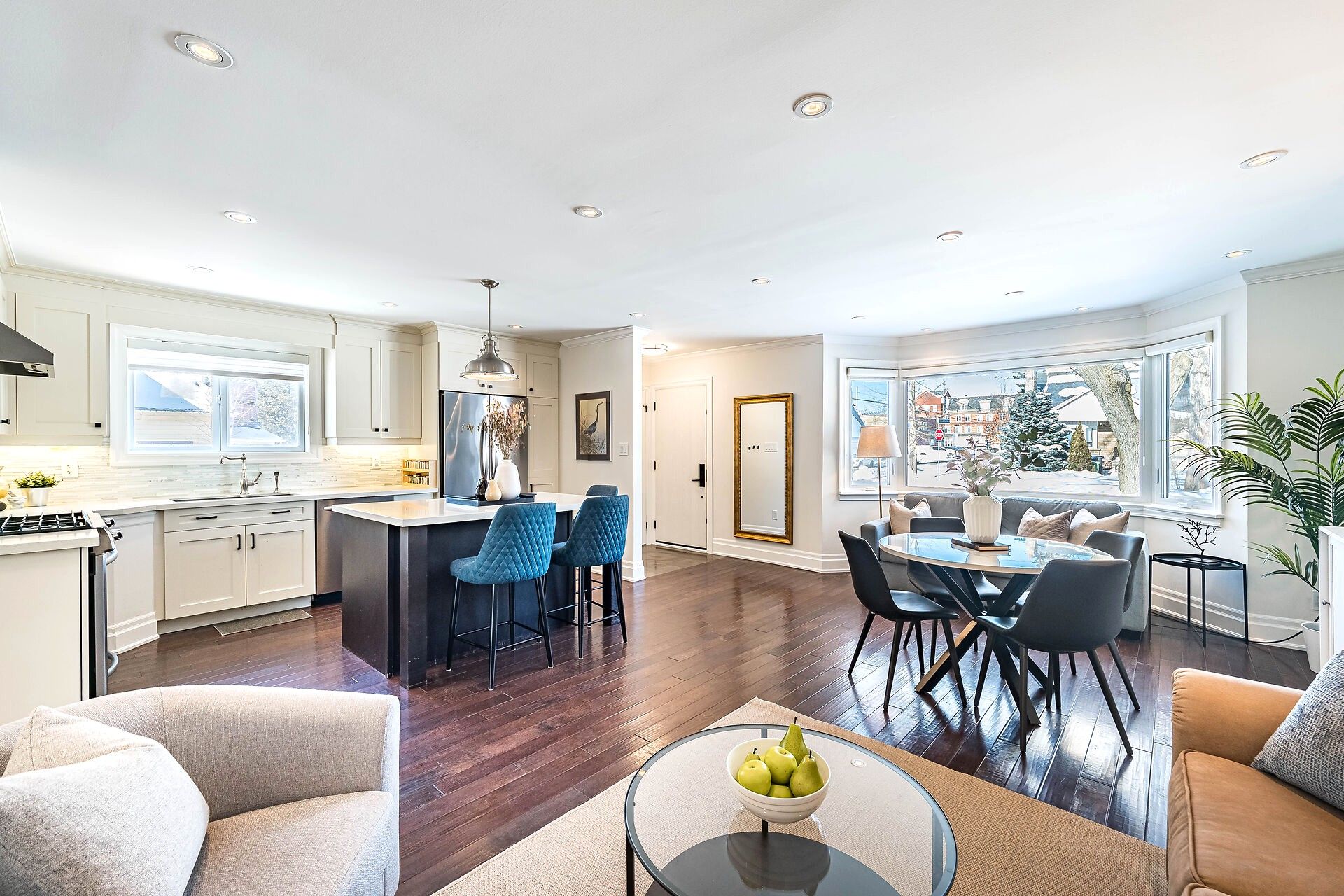 • Freshly painted open concept living space with hardwood floors.