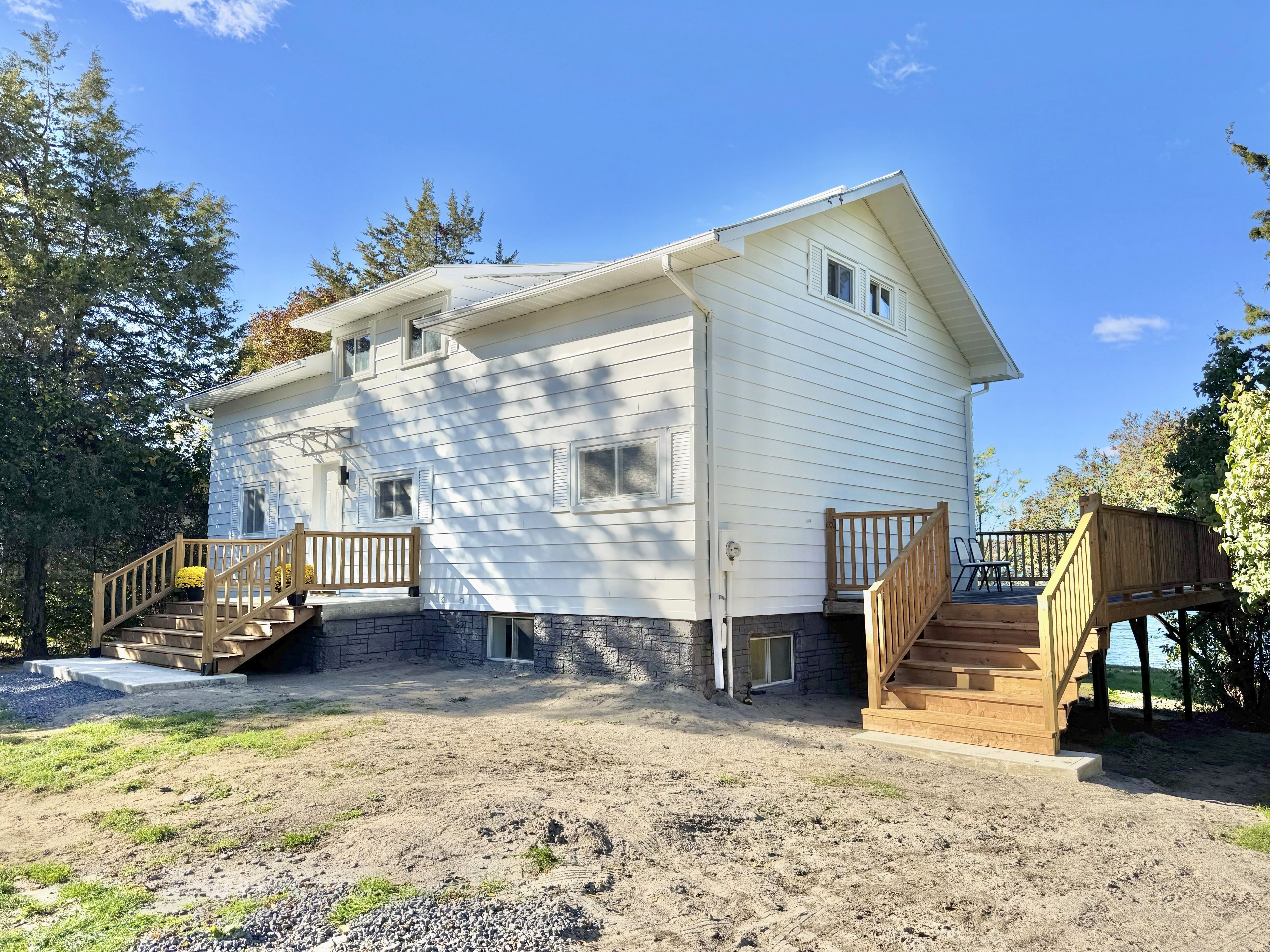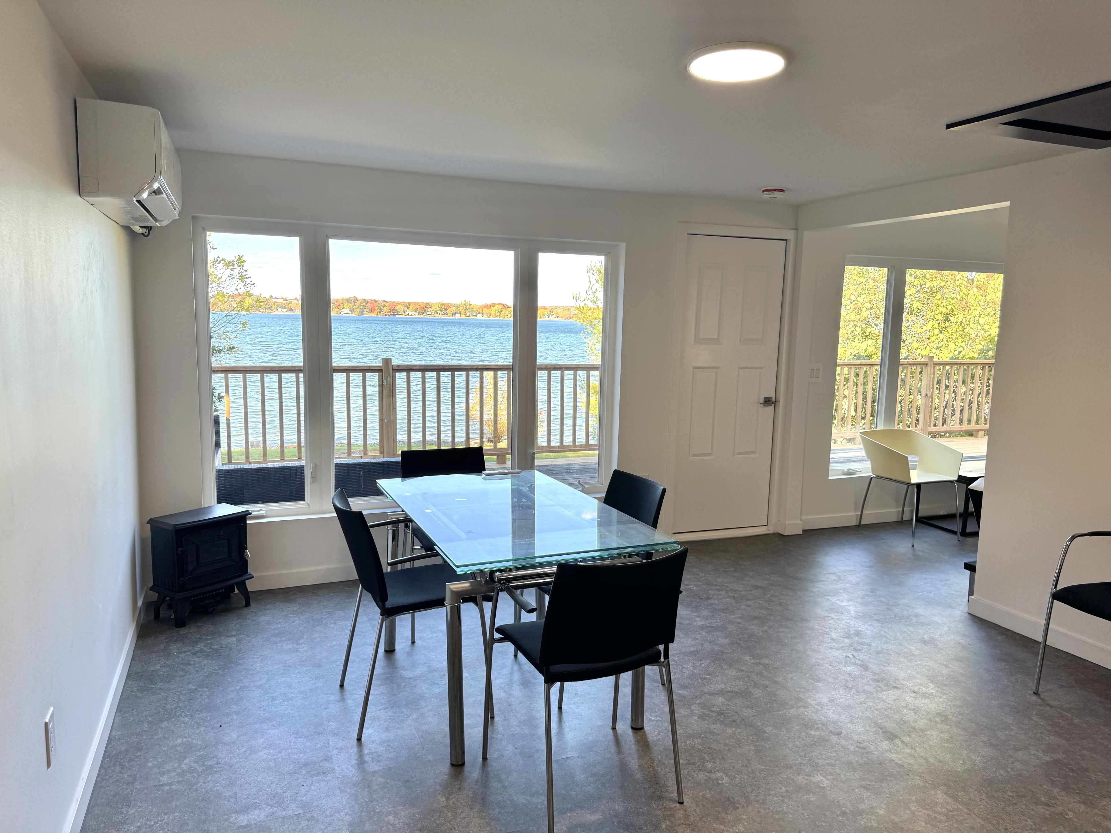 Waterfront living with just under 100 ft of private shoreline! Nestled along the serene shores of smiths bay, lake ontario in prince edward county, this inviting three-bedroom, two-bath waterfront home has been tastefully renovated top to bottom and offers an ideal blend of modern comfort and natural beauty. The property boasts sweeping panoramic views that can be enjoyed from both the expansive entertaining deck and the bright, open-concept interior. The main level features a contemporary kitchen with adjoining dining area, a spacious living room, two bedrooms, and a 4-pc bath. The lower level is dedicated to a private primary suite with walk-out, complemented by generous space that can easily serve as a family room, home office, or gym. Located on a quiet dead-end road, surrounded by lush, peaceful landscapes and only 15 minutes from picton, this home offers the perfect retreat for those seeking tranquility without sacrificing convenience.