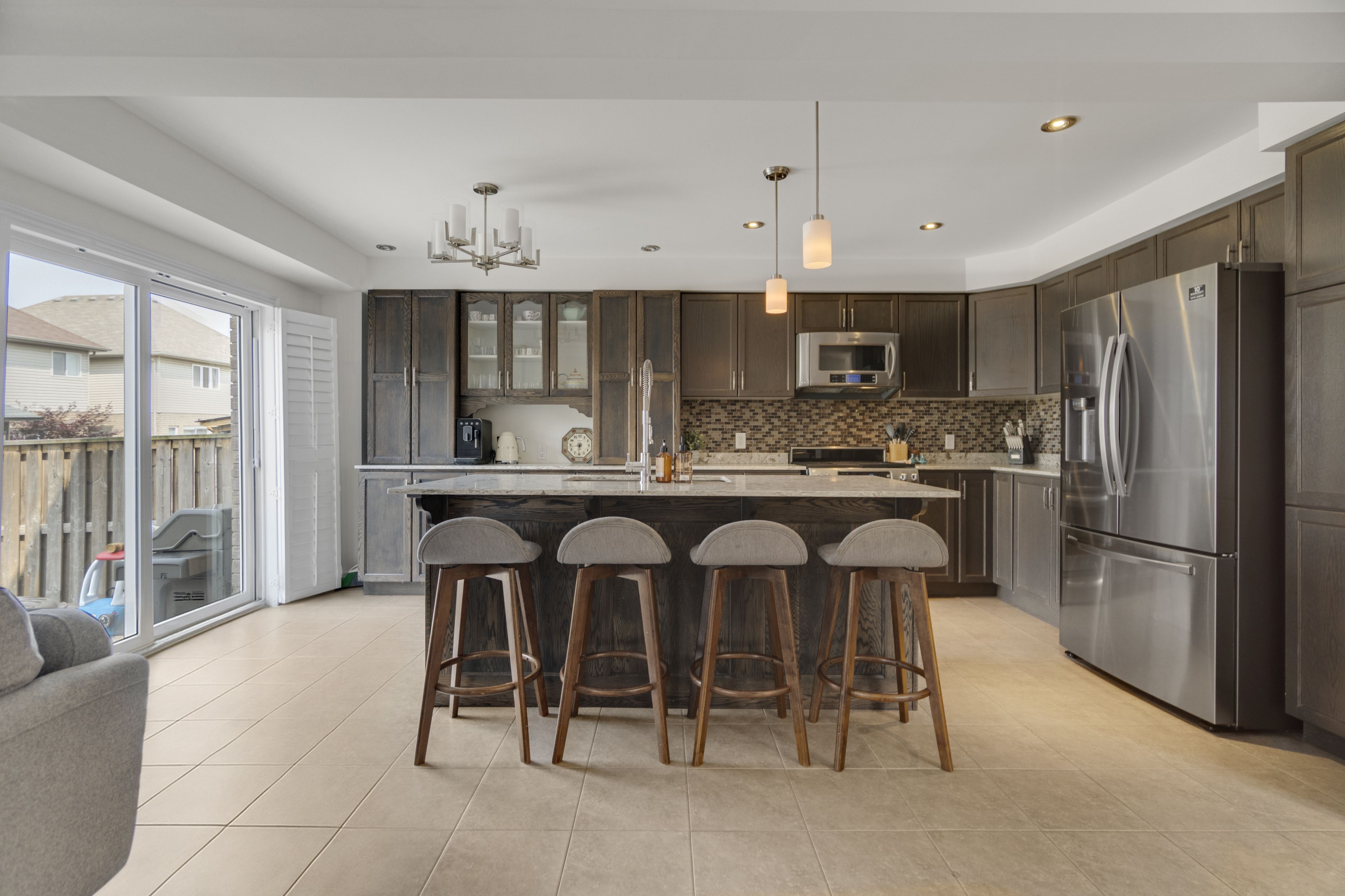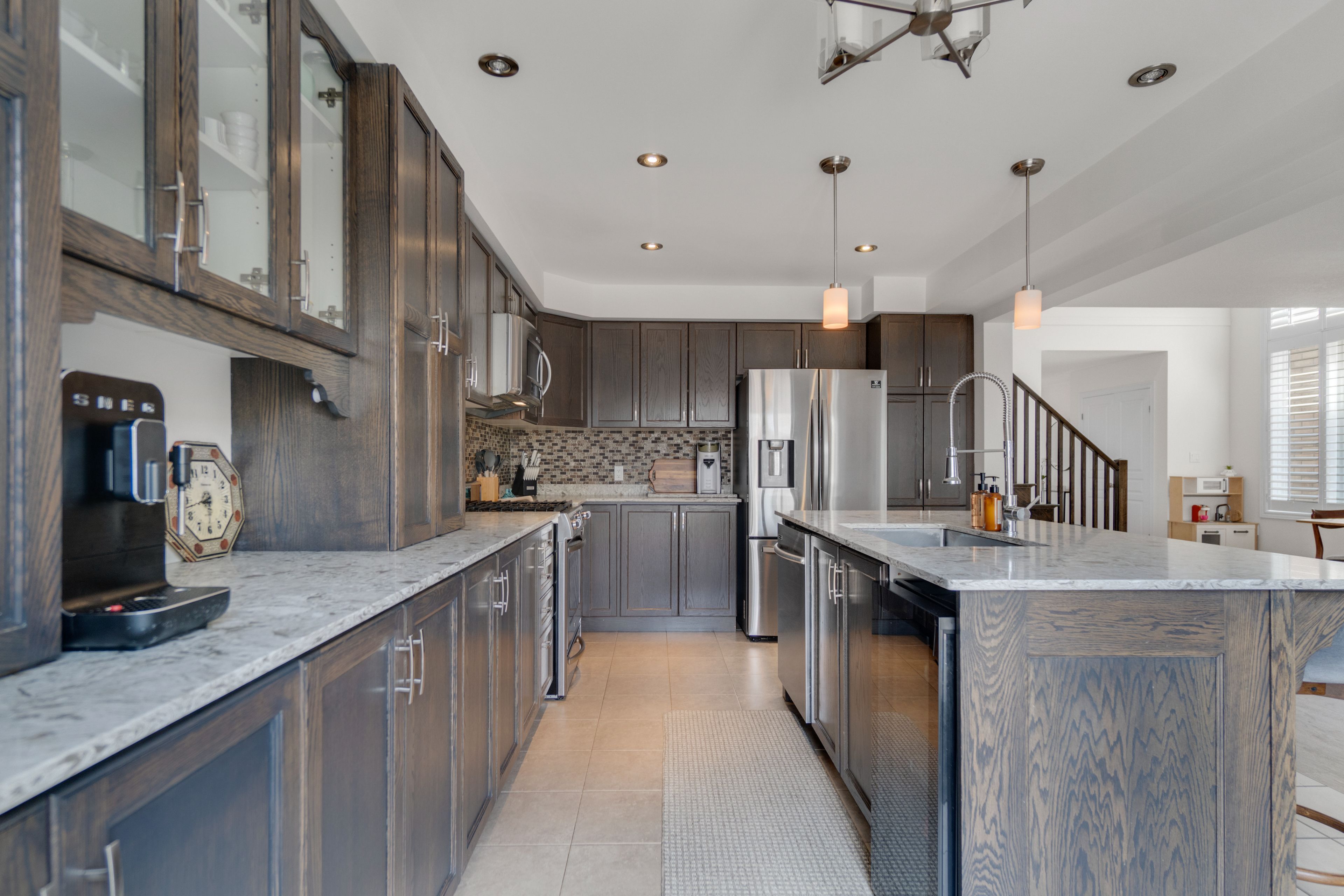 • Gourmet kitchen features upgraded stainless steel appliances and breakfast bar.