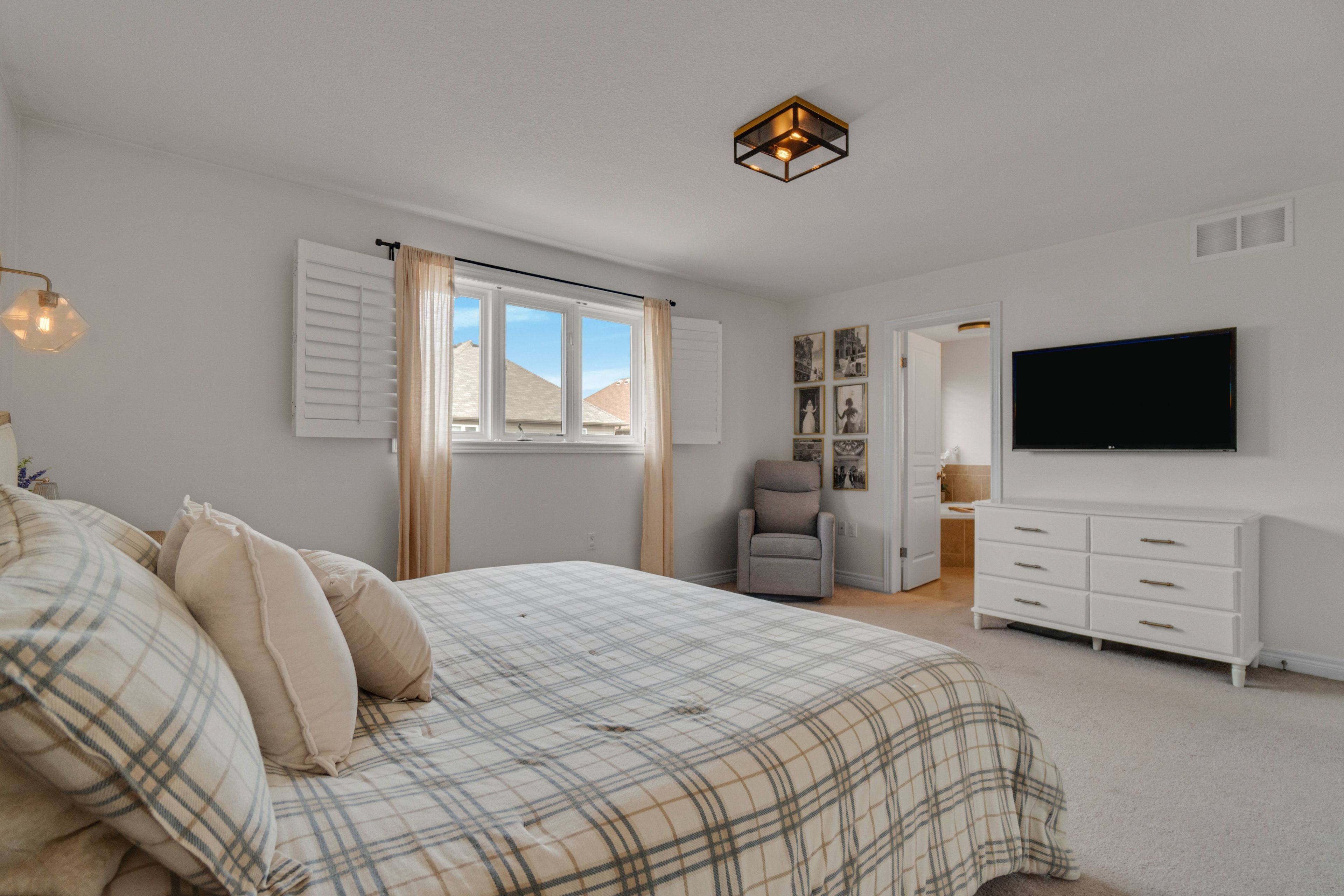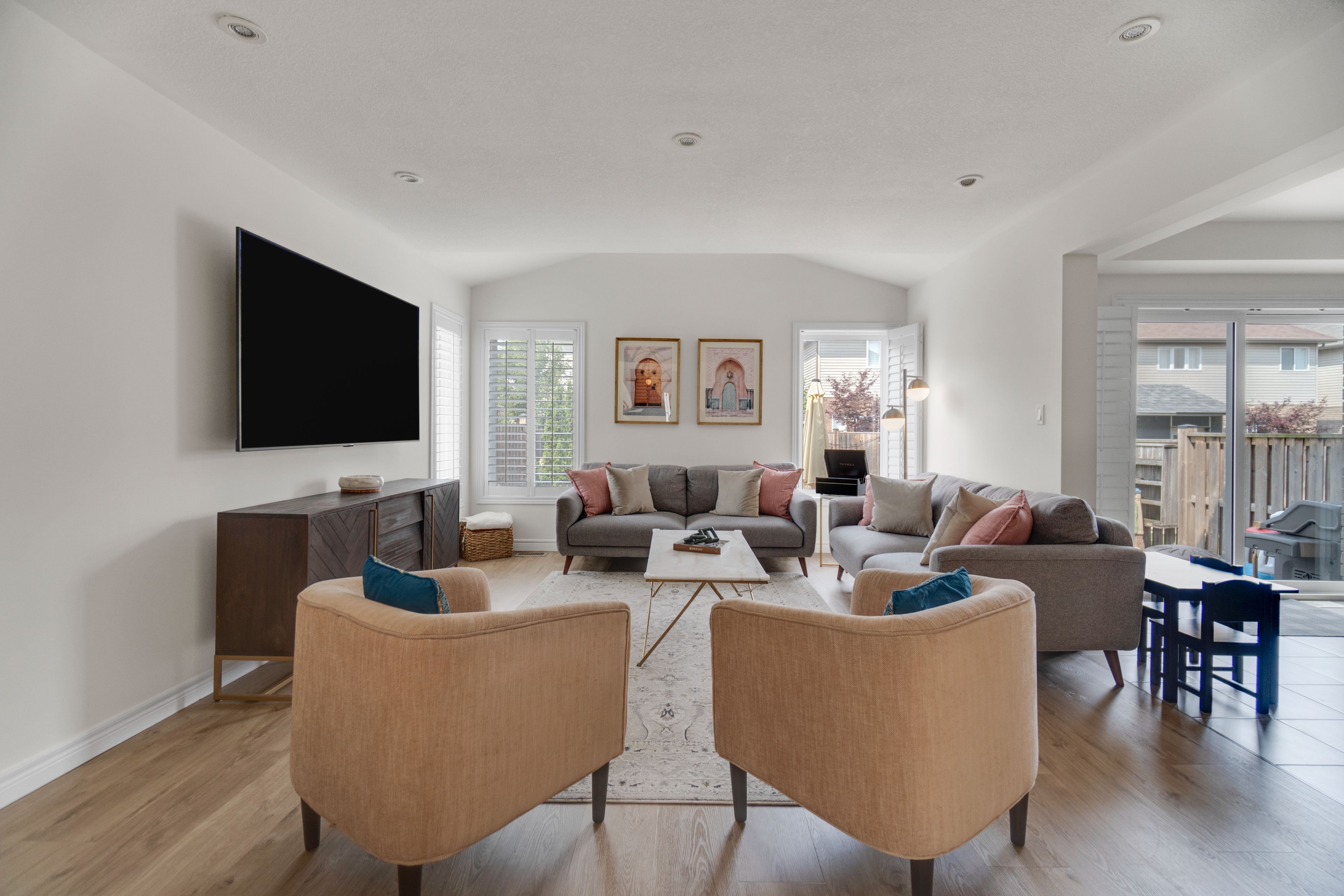 Move-in ready 3+1 bed, 4 bath featuring a professionally finished basement! With nearly 2700 sq. Ft of beautifully finished living space, this home offers room to live, work, and play. On the main level, enjoy a show-stopping upgraded kitchen with a large breakfast-bar island w/built in mini-fridge, ceiling-height cabinetry, gas range, & new stainless steel appliances. Along with vaulted ceilings, wood california shutters, & pot lights throughout. Upstairs offers a spacious primary bedroom w/walk-in closet & jacuzzi ensuite, two bright and spacious bedrooms, & upper-level laundry room. Outside, a fenced yard w/gas line, stamped concrete patio, & a four-car driveway. Steps to parks, schools, shopping, highways, trails, theatres, & much more. Don't miss your chance to make this home yours - complete with an optional home gym!