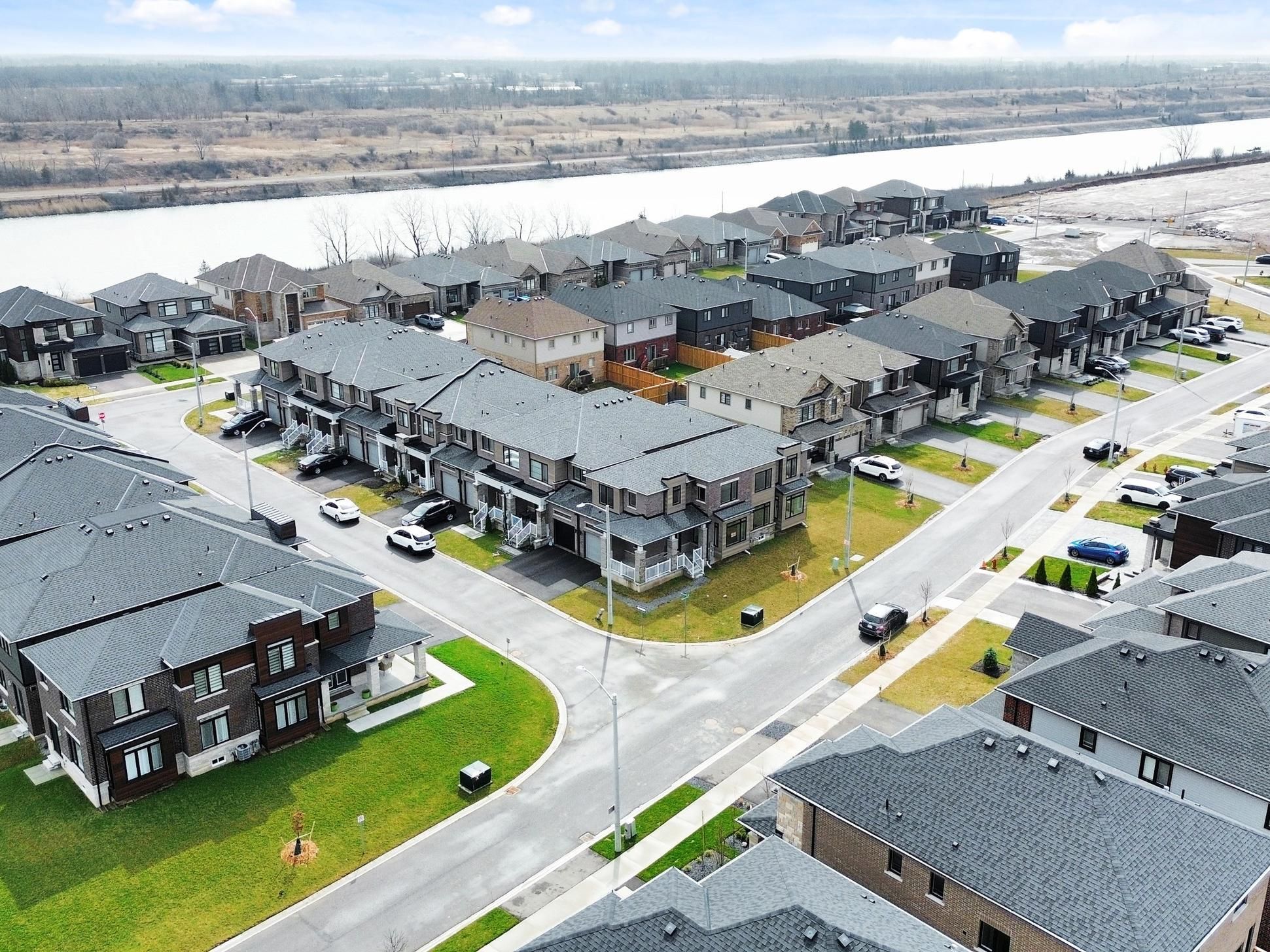 Welcome to an exceptional living experience in the prestigious waterview estate townhomes (feels like a detached home), where this executive end-unit property shines with wrap-around windows and an abundance of natural light. The inviting open-concept main floor features fresh grey carpeting and a modern kitchen centered around a large functional island, seamlessly connecting the spacious living and dining areas to a walk-out backyard. Upstairs, you'll find a generous primary suite complete with a walk-in closet and glass-shower ensuite, alongside three additional oversized bedrooms and the added convenience of bedroom-level laundry. While the unfinished basement provides vast storage potential, the home's prime location ensures you are never more than a few minutes from highway access, local shopping, and the scenic trails of the welland canal.
