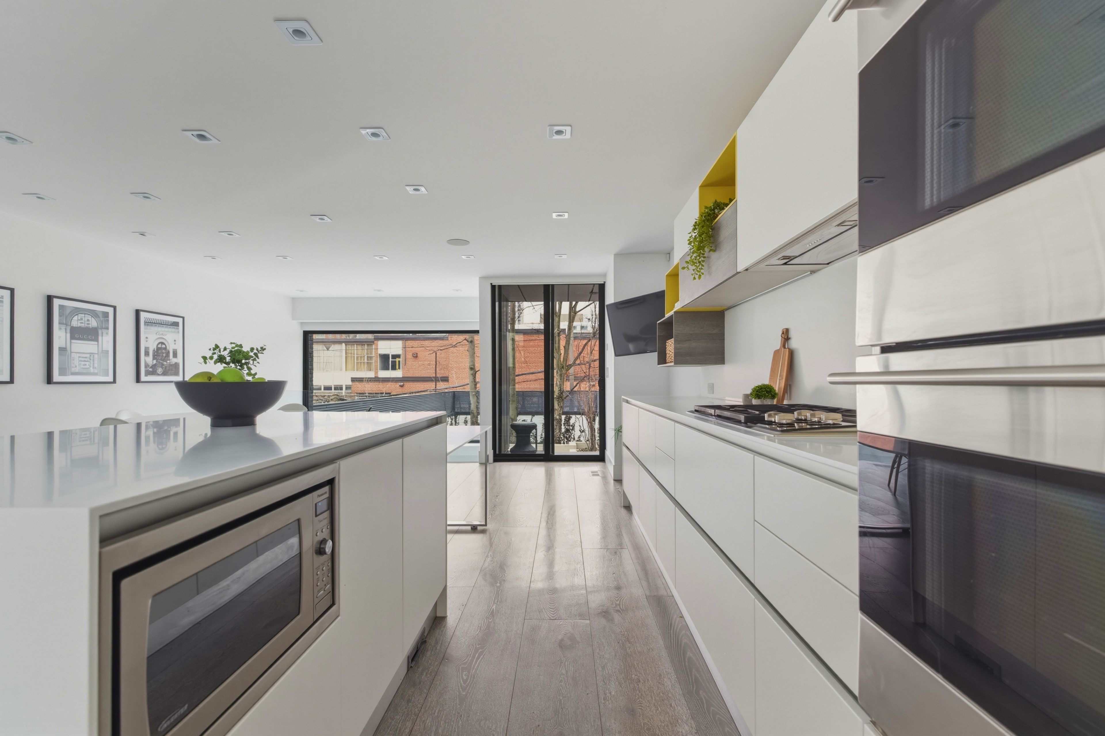 • Open-concept layout featuring high-end appliances and custom cabinetry.