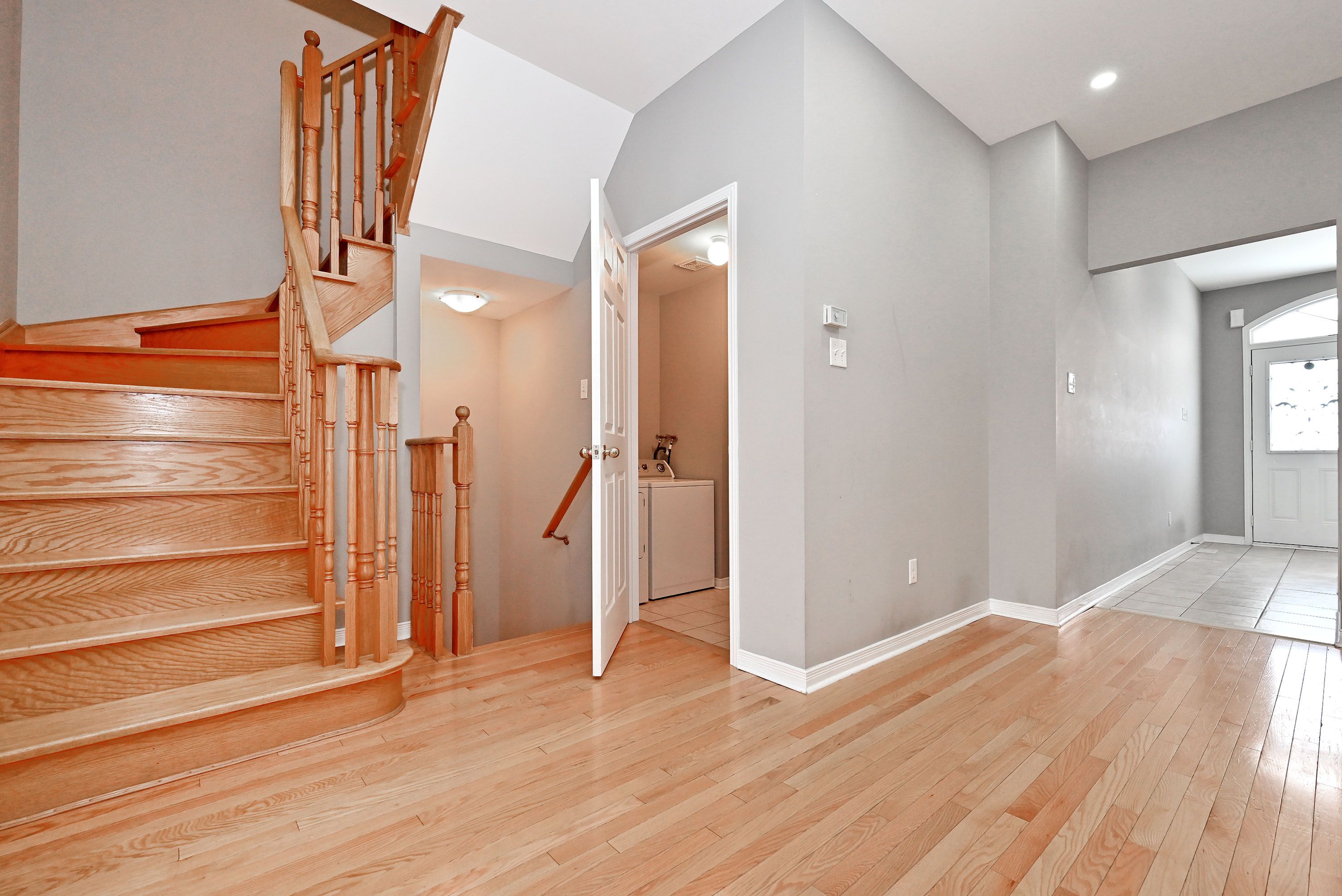 Welcome to this bright and spacious 4-bedroom end unit home in the popular thornberry woods area. This home offers a great mix of comfort and convenience. It has 1,911 sq. Ft. Of living space, hardwood floors, and 9-foot ceilings on the main level, giving it an open and welcoming feel. The maple kitchen includes stainless steel appliances, a mosaic backsplash, and plenty of counter space for cooking and daily use. The open layout is perfect for family time and having friends over. A main-floor laundry room adds everyday convenience, and the double door entrance makes a nice first impression. The walk-out basement leads to a large, fully fenced backyard, ideal for kids, outdoor activities, or relaxing in privacy. The home is within walking distance to great schools, parks, and public transit, making it a wonderful place to live with easy access to everything you need.