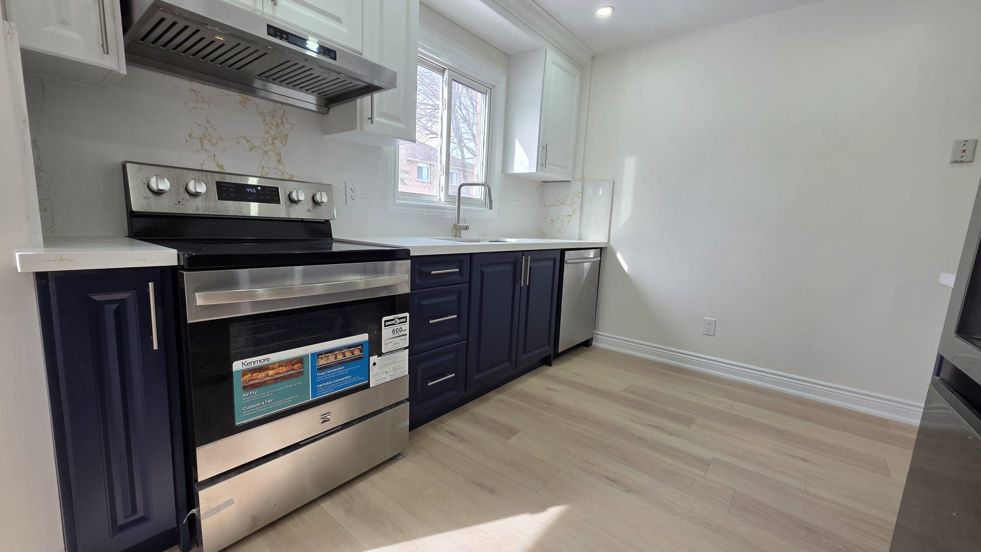 • Modern kitchen with quartz countertops and newer appliances.