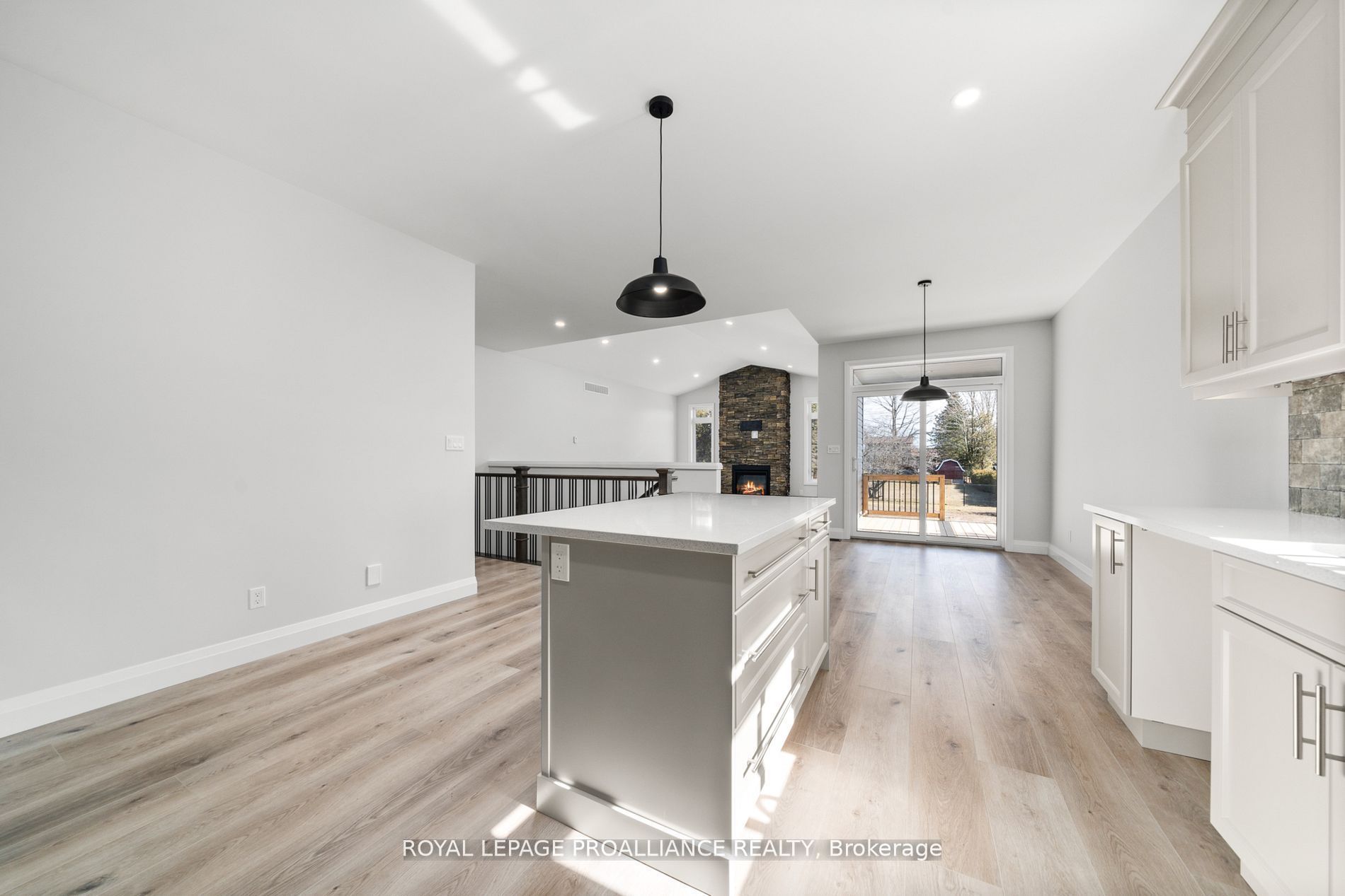 • Modern kitchen equipped with quartz countertops and an island.
