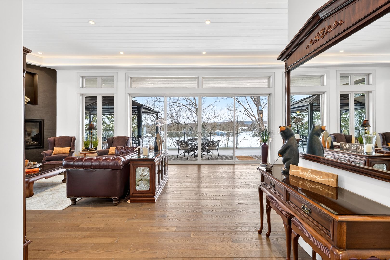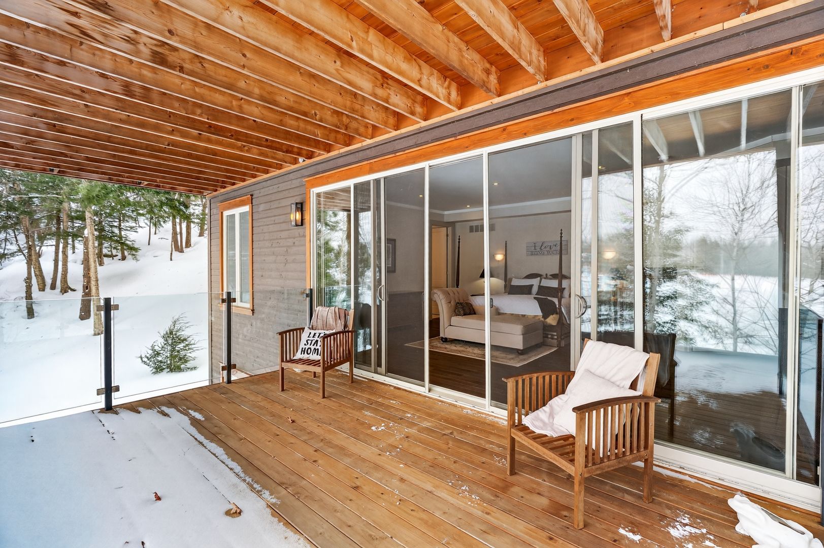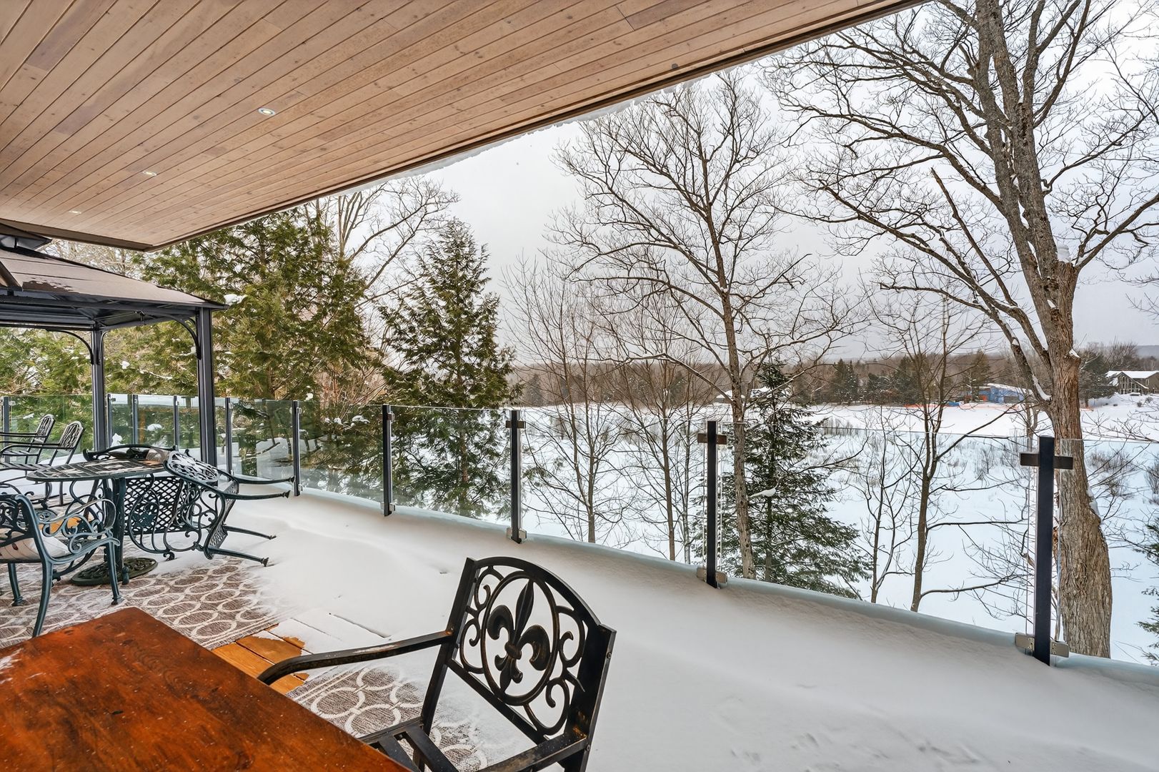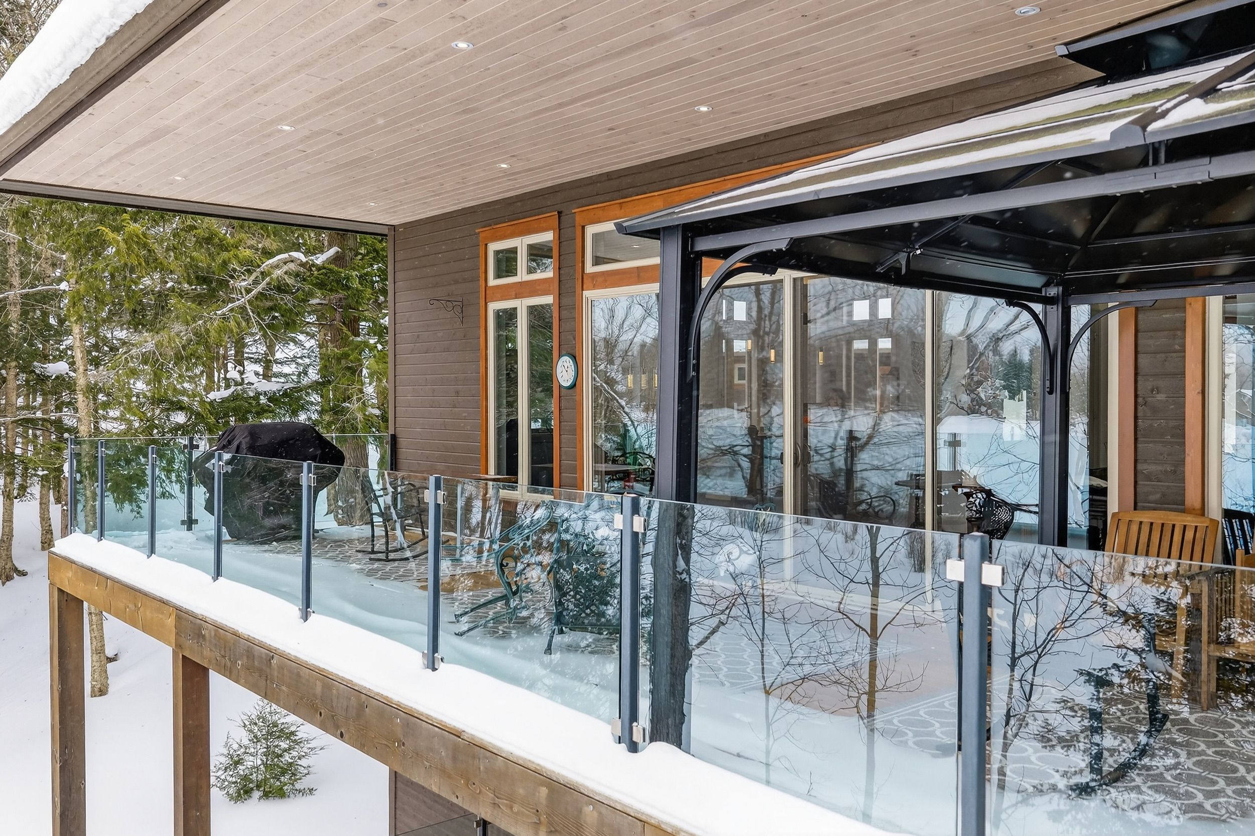 Welcome to 41 clubhouse drive in the prestigious highland estates - where a beautifully custom-crafted fairway residence overlooks the deerhurst highlands golf course. Built in 2017 and enjoying full municipal services, this thoughtfully designed 3-bedroom, 3-bathroom home offers exceptional quality and functionality - complete with an elevator that is perfectly ensconced in the stairwell - conveniently providing accessibility for those with current or future mobility needs. Step inside from the level, covered timber frame entrance and you will be greeted by soaring ceilings, expansive windows, and an open-concept living, dining, and kitchen area complete with built-in appliances. Premium finishes are evident throughout. Cozy up by the gas fireplace or walk out to the amazing covered terrace which spans the entire width of the home, easily accommodating all of your entertaining needs from al fresco dining to simply relaxing outdoors. A rare feature - one entire floor is dedicated to your own luxurious primary retreat: first there is the spacious bedroom with separate sitting area den/office, then a spa-like 4-piece ensuite bath complete with in-floor heating and large walk-in closet. And another private covered balcony overlooks the golf course and the forested area beside (note: there is no neighbour to the right side). Ground floor level offers two additional bedrooms, both with ensuite access to the 5-piece bathroom. Generous closets, storage space and extra appliances too. Walk right out to the covered patio and beautifully landscaped yard. Additional highlights include a detached double car garage with separate storage area at rear, interlock driveway, whole-home generac generator, central vac and central air conditioning. Many furnishings, both inside and out, are included - please inquire. Located on a quiet, sought-after street in one of muskoka's premiere golf communities, and mere minutes from downtown huntsville amenities. Book your appointment today!