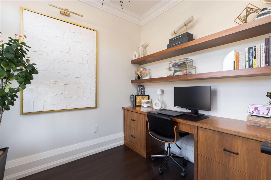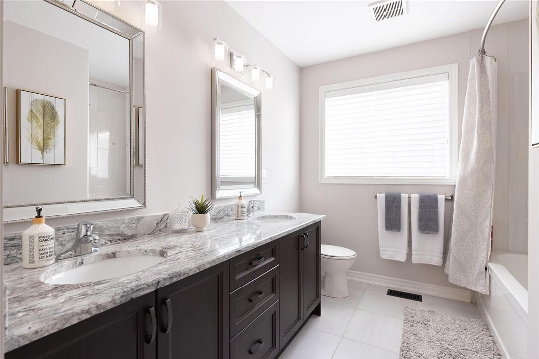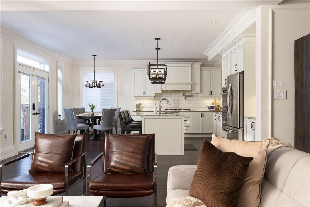 Most homes today are built to sell. This one was built by people who actually planned on living in it. You notice the difference the moment you walk through the door. Craftsmanship shows up immediately: crown moulding, oversized door and window casings, nine-inch baseboards, and engineered hardwood flows seamlessly through the first and second floors. Warm, consistent, and notably no carpet anywhere. The living room anchors the home with a waffle ceiling that catches the light beautifully and a full custom millwork fireplace wall that extends all the way to the ceiling; architectural details that add both warmth and character. Then there's the kitchen. Designed for both everyday living and entertaining, it features marble countertops, custom cabinetry with soft-close hardware, and a walk-in pantry that actually functions the way a pantry should. Upstairs, the primary suite offers a calm and private retreat with a spa inspired ensuite that might actually make mornings enjoyable. Three additional bedrooms, a beautifully updated bathroom, and laundry room because hauling baskets to the basement is a lifestyle choice no one should make. The finished lower level adds versatility with durable luxury vinyl plank flooring designed for real life. A wet bar, fireplace, gym, fifth bedroom, bathroom, cold cellar and generous storage. It also happens to be an excellent place to hide from your in-laws when they visit. Step outside and the backyard feels like its own private retreat. Fully fenced with mature trees, thoughtful landscaping, and a gazebo perfect for long summer evenings. The work has already been done all that's left is to enjoy it. The location brings everything together. Steps to the water, two minutes to the highway. Five minutes to wineries, and scenic trails. Right in the heart of stoney creek quiet when you want it, close to everything when you don't. Homes built like this don't come along often, come see the difference for yourself.