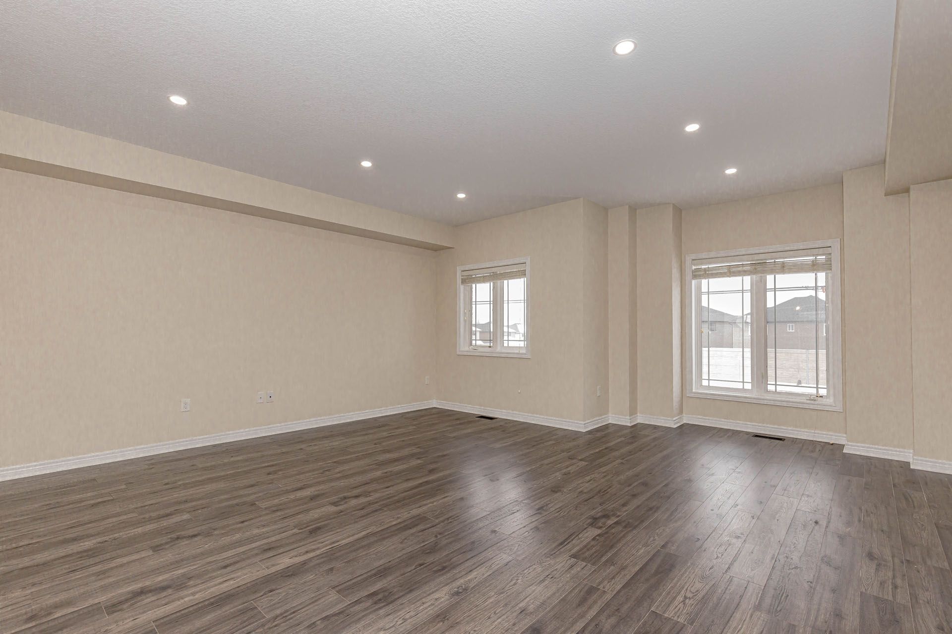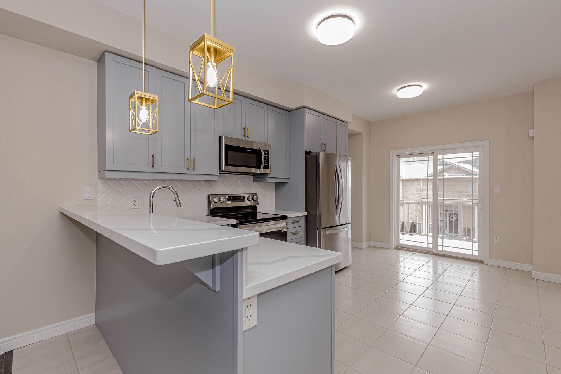 Welcome to this very bright and spacious 1840 sq. Ft. Home located in one of hamilton's newest and most sought-after neighborhoods. This beautifully maintained original-owner property offers 3 bedrooms and 4 washrooms with thoughtful design and over $25,000 spent on recent upgrades, including fresh paint, new carpeting, and new pot lights throughout. The main floor features a generous family room with pot lights, elegant french doors, and a 4-piece washroom, offering excellent rental or in-law suite potential, along with direct garage access and a dual entrance. The second level showcases a huge open-concept living and dining area with 9-ft ceilings, paired with a chef's delight kitchen featuring stainless steel appliances, quartz countertops, and a stylish backsplash. The breakfast area, combined with the kitchen, opens onto a private balcony, creating the perfect space for morning coffee or outdoor relaxation. The third level offers a spacious primary bedroom with a walk-in closet and 4-piece ensuite, along waith two additional well-sized bedrooms and convenient upper-level laundry. Situated on a no-sidewalk lot, this home is ideally located close to plazas on both sides with all major grocery stores and everyday amenities just steps away-ideal for modern family living. Potl fees $89. 99 for common area and snow cleaning