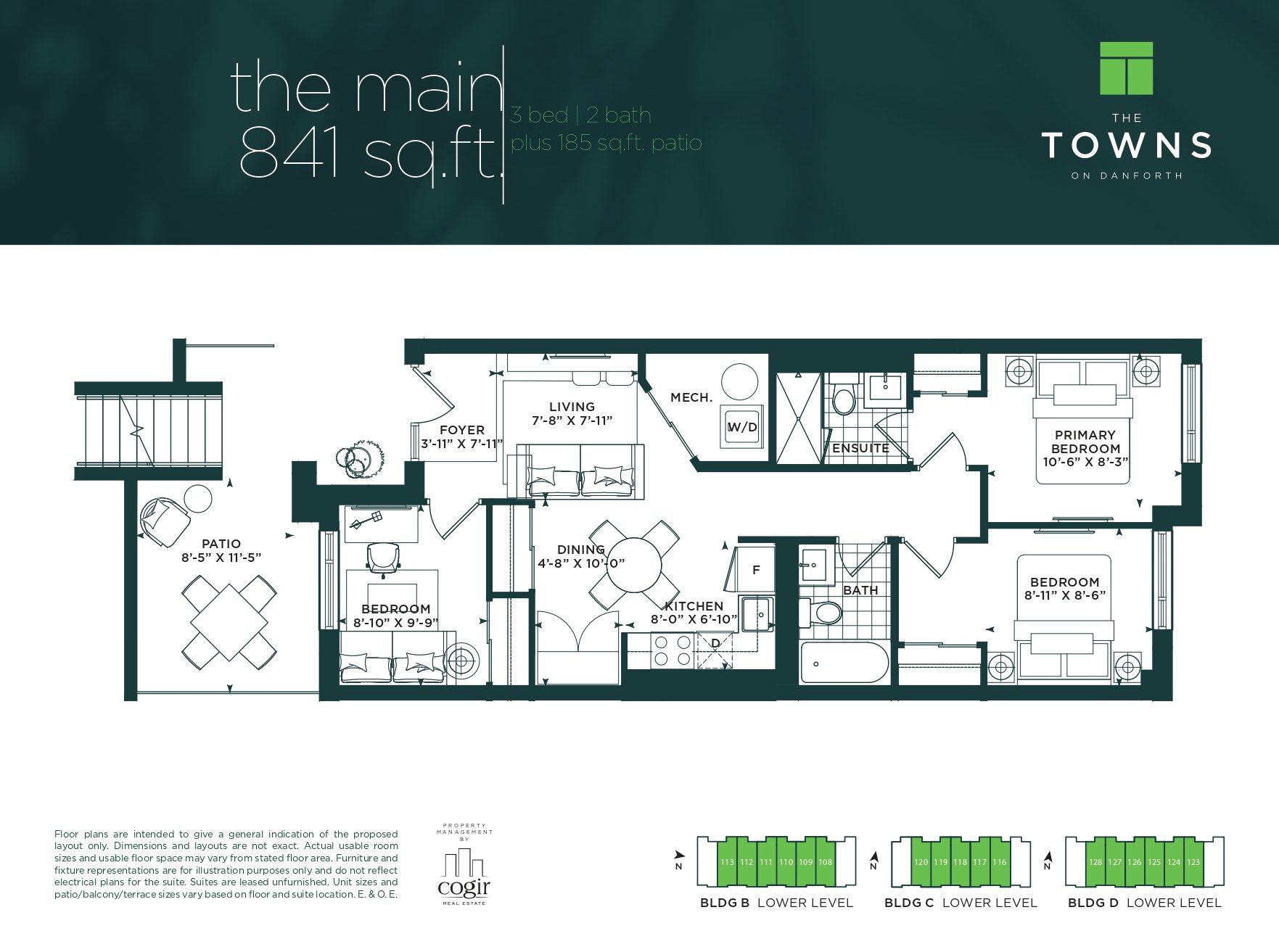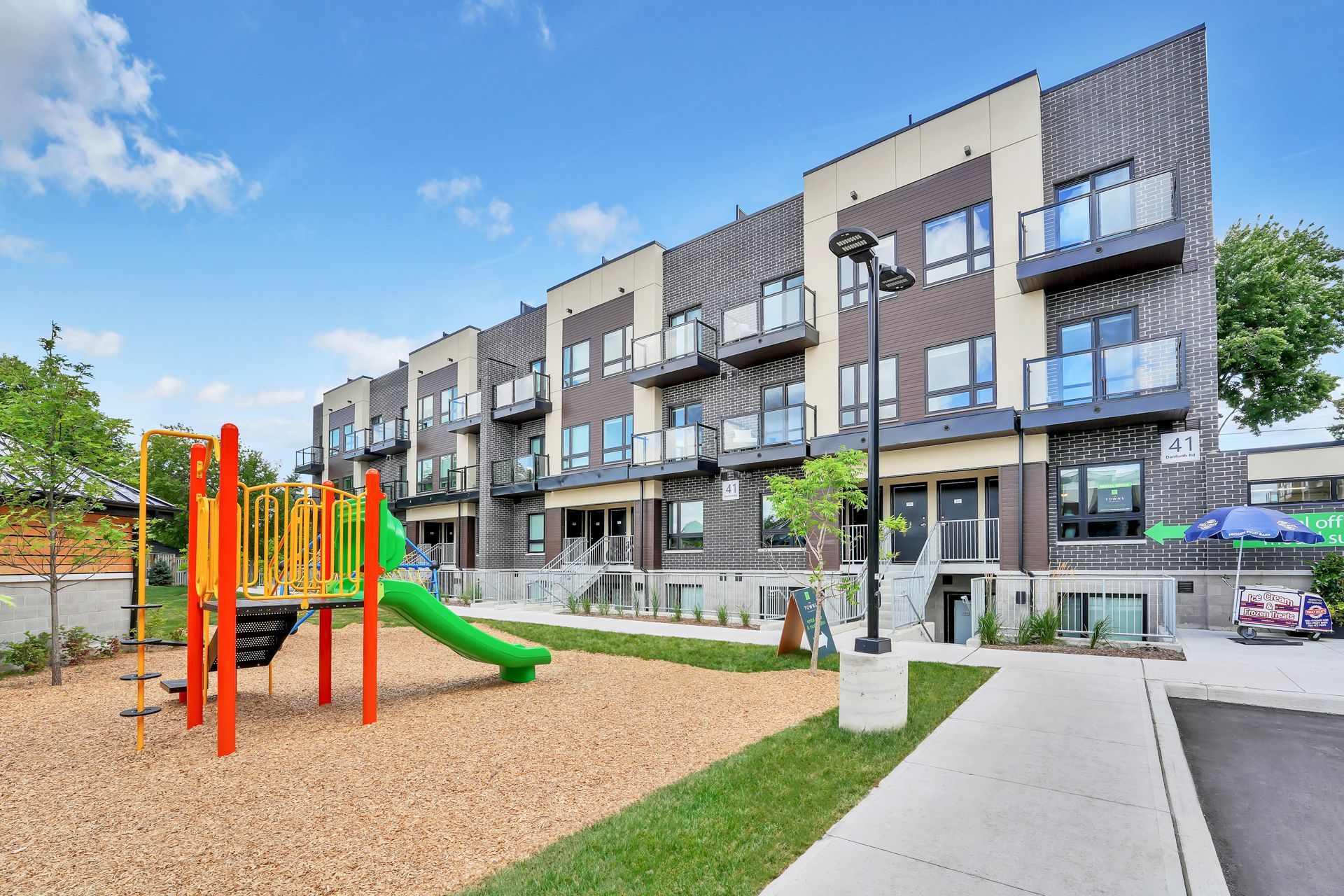 Rental incentive - first month rent is free! Say hello to suit 110 at the town on danforth, where urban energy & diverse culture inspires an enviable way of life. Thoughtfully finished, spacious suite boasts 3 bedrooms & 2 full bathrooms. Open concept layout spanning over 841 sf of functional interior living space with an additional 185 sf private patio to entertain, or simply relax and unwind after a long day. Beautiful, modern kitchen offers full sized stainless steel appliances, stone countertops, & ample storage. All light fixtures & window coverings included [roller blinds throughout]. Primary bedroom is generous in size with a 3pc. Ensuite & suitable closet space. Insuite stacked laundry. Tenant to pay: water, gas, & hydro - all separately metered. A short distance to victoria park station and main street station connecting you to the bloor-danforth subway line. As well, danforth go station is a 6-minute ride away. Above-mentioned lease incentive is offered on a 14 month lease term. Photos are of model suite with the same floorplan & finishes