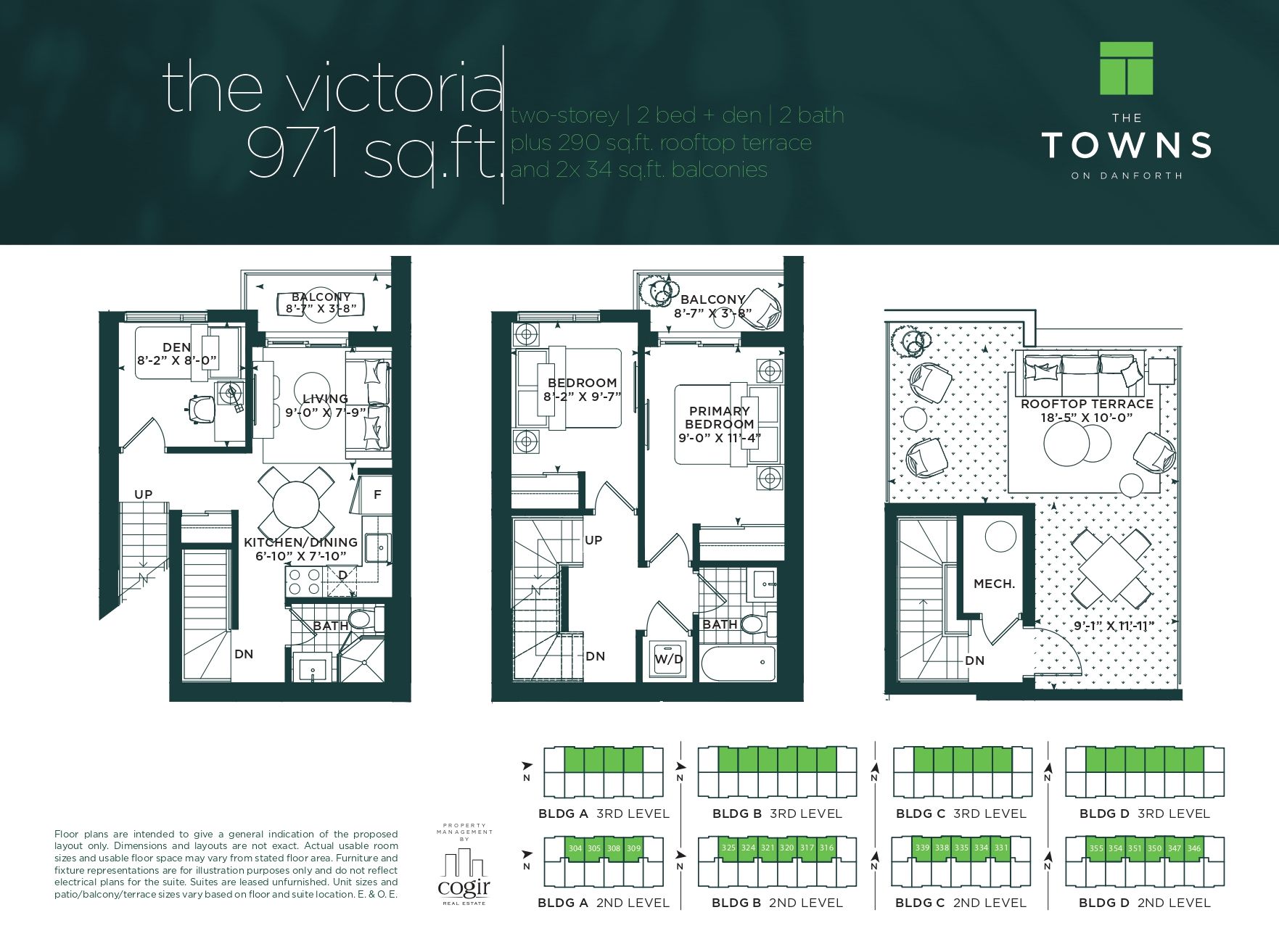 Rental incentive - first month's rent is free! Say hello to suite 316 at the towns on danforth, where urban energy & diverse culture inspires an enviable way of life. Thoughtfully finished, stacked townhome boasts 2 bedrooms, separate room den & 2 full bathrooms. Open concept layout spans just shy of 1,000 sf. Boasting a functional interior living space - did we mention the 290 sf private rooftop terrace and 2 balconies?! Beautiful, modern kitchen equipped with full-sized stainless steel appliances, stone countertops, & ample storage. All light fixtures & window coverings included [roller blinds]. Primary bedroom generous in size w/ 4 pc ensuite. In-suite stacked laundry. Tenant to pay: water, gas, & hydro. A short distance to victoria park station and main street station connecting you to the bloor-danforth subway line. As well, danforth go is a 6-minute ride away. Above-mentioned lease incentive is offered on a 14 month lease term. Photos are of model suite with the same finishes