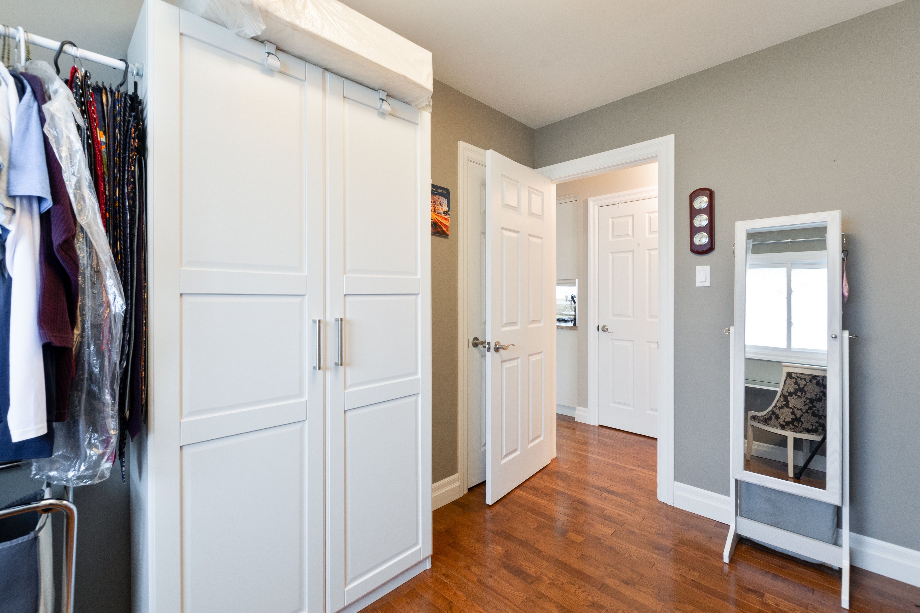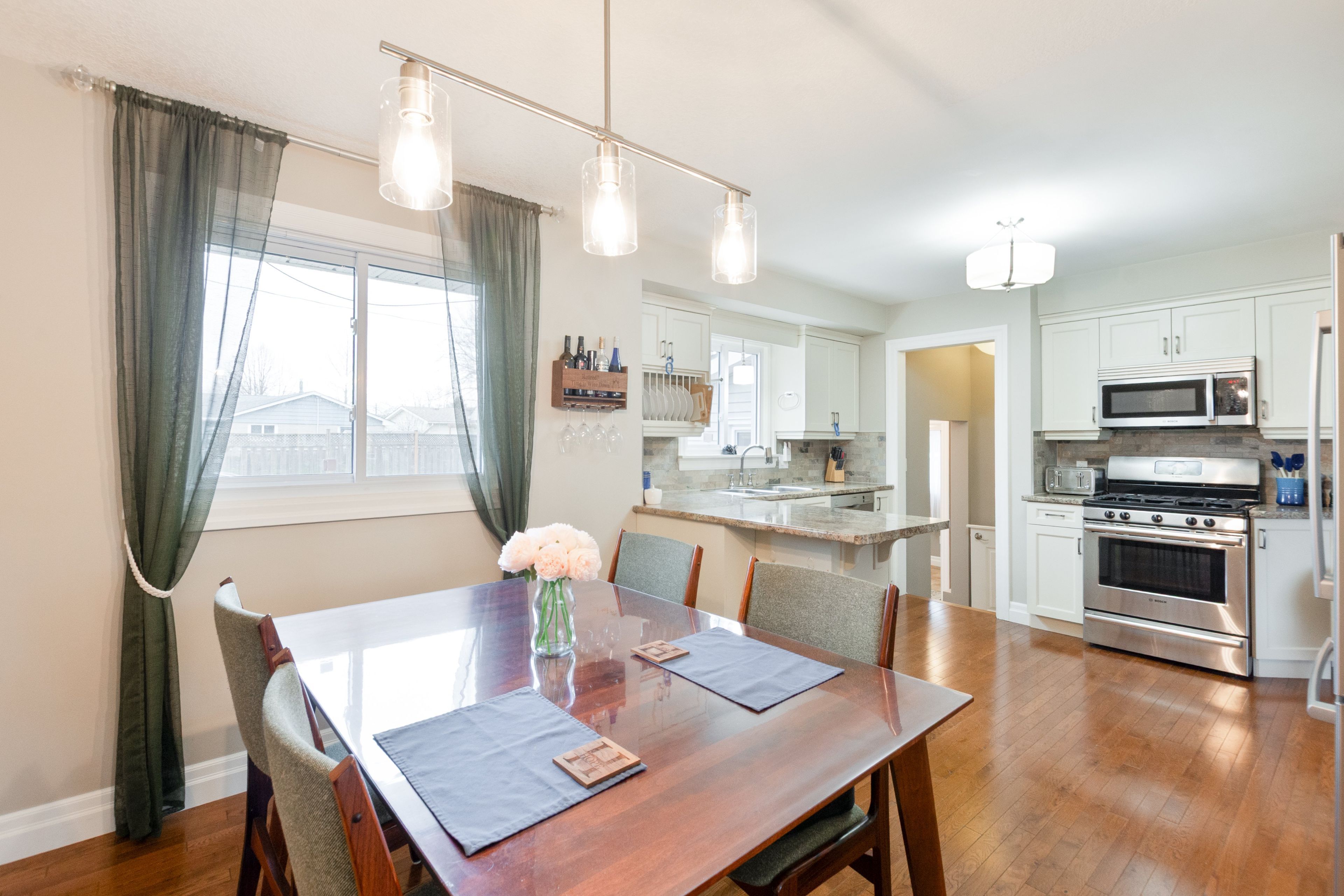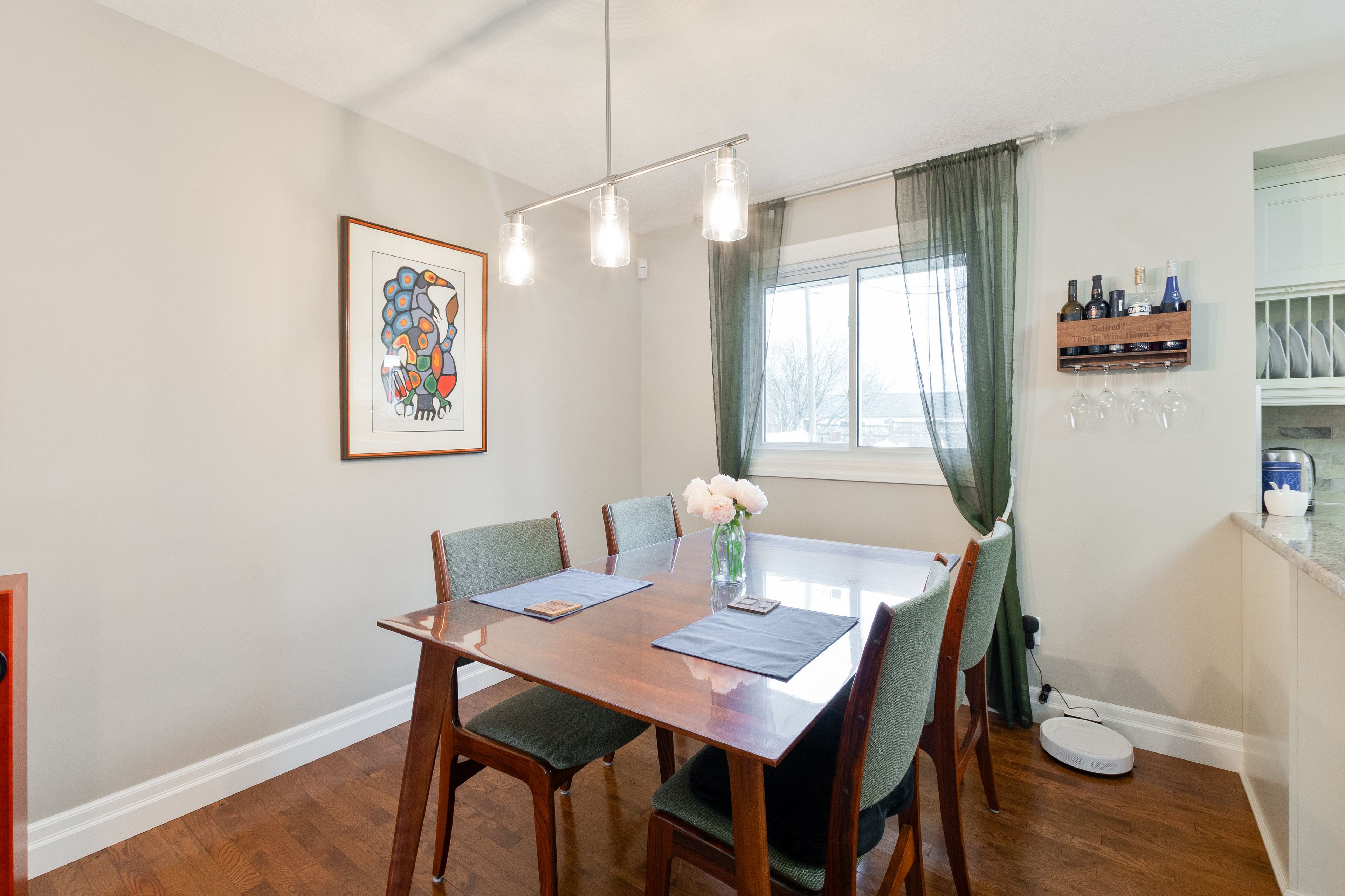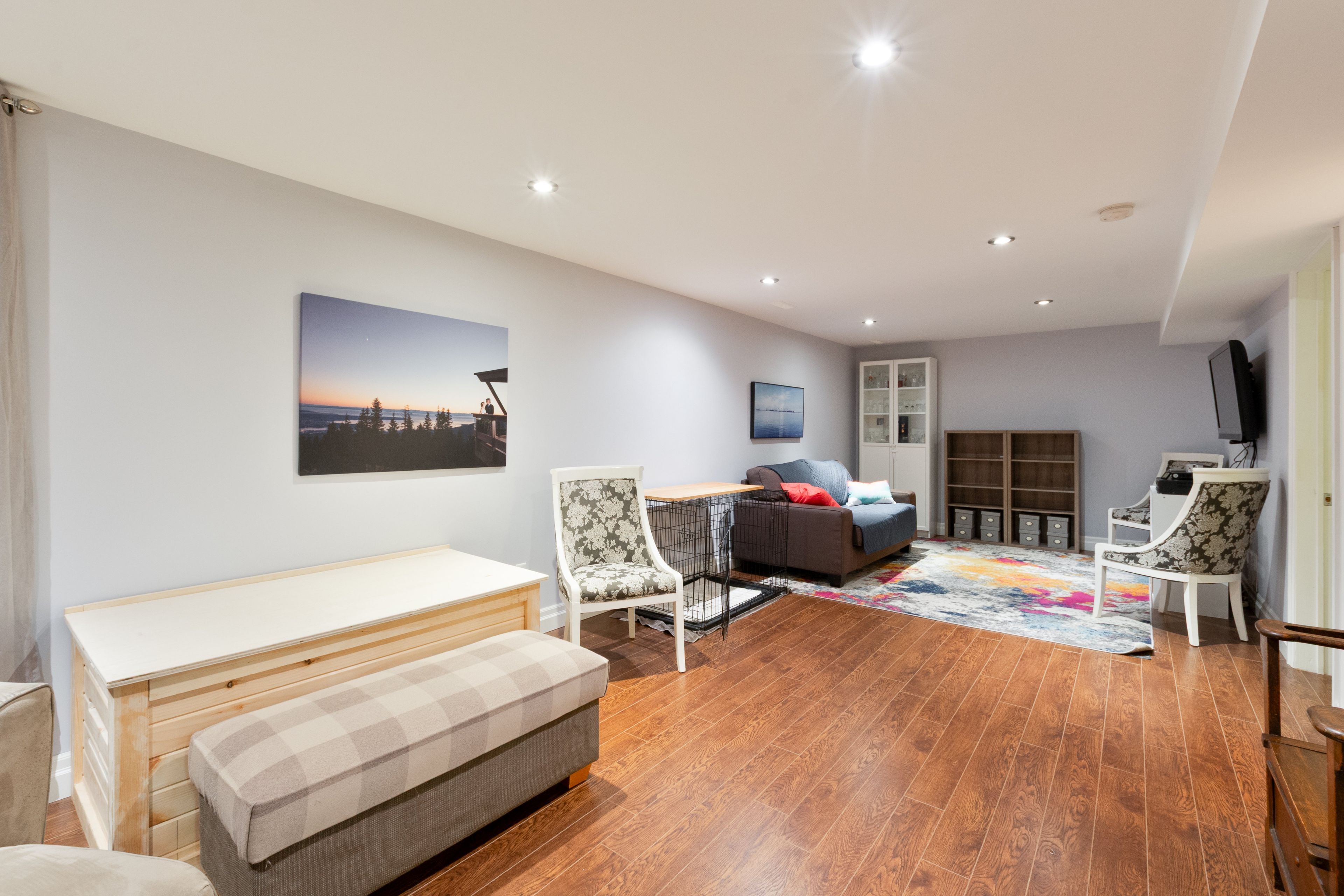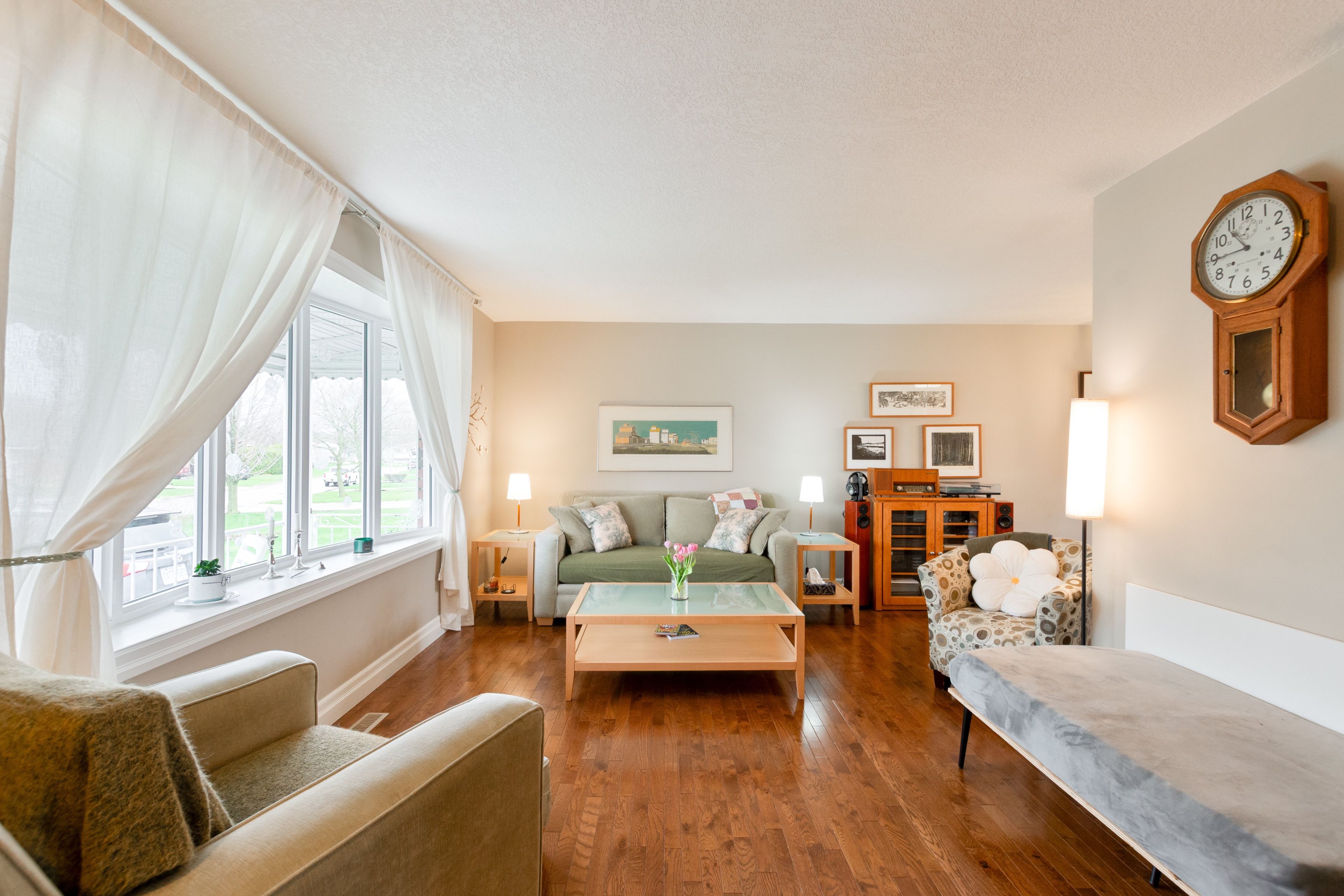 • Open-concept living area features beautiful hardwood floors and ample natural light.
