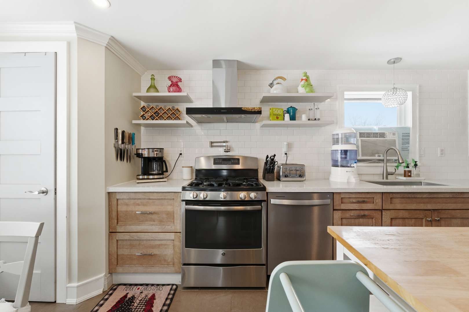 • Updated kitchen with quartz countertops and stainless steel appliances.