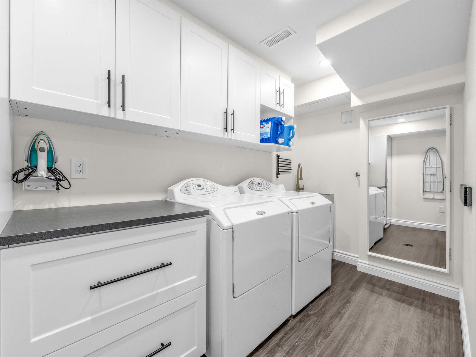 • Ample parking available with garage and oversized driveway for multiple vehicles.
