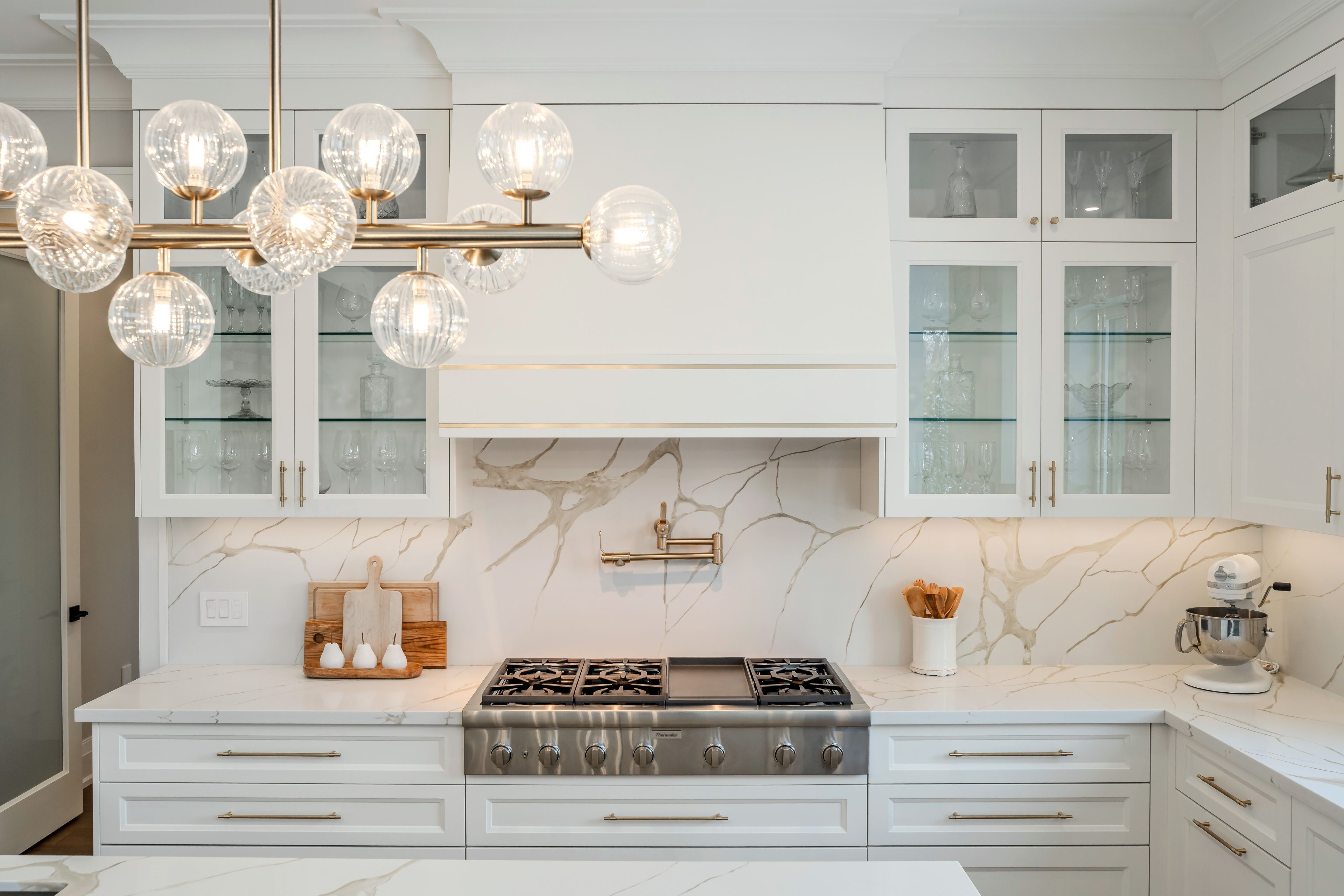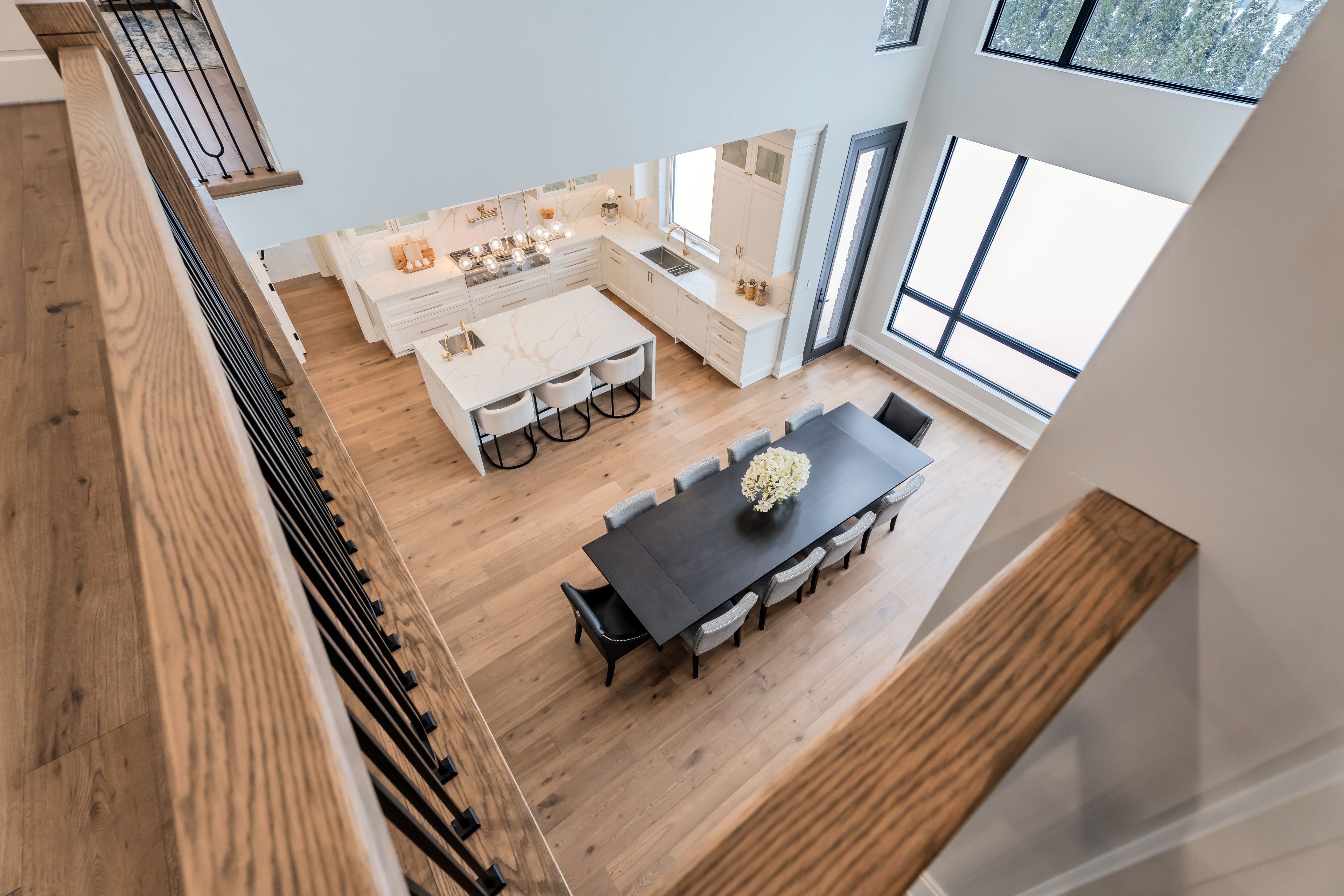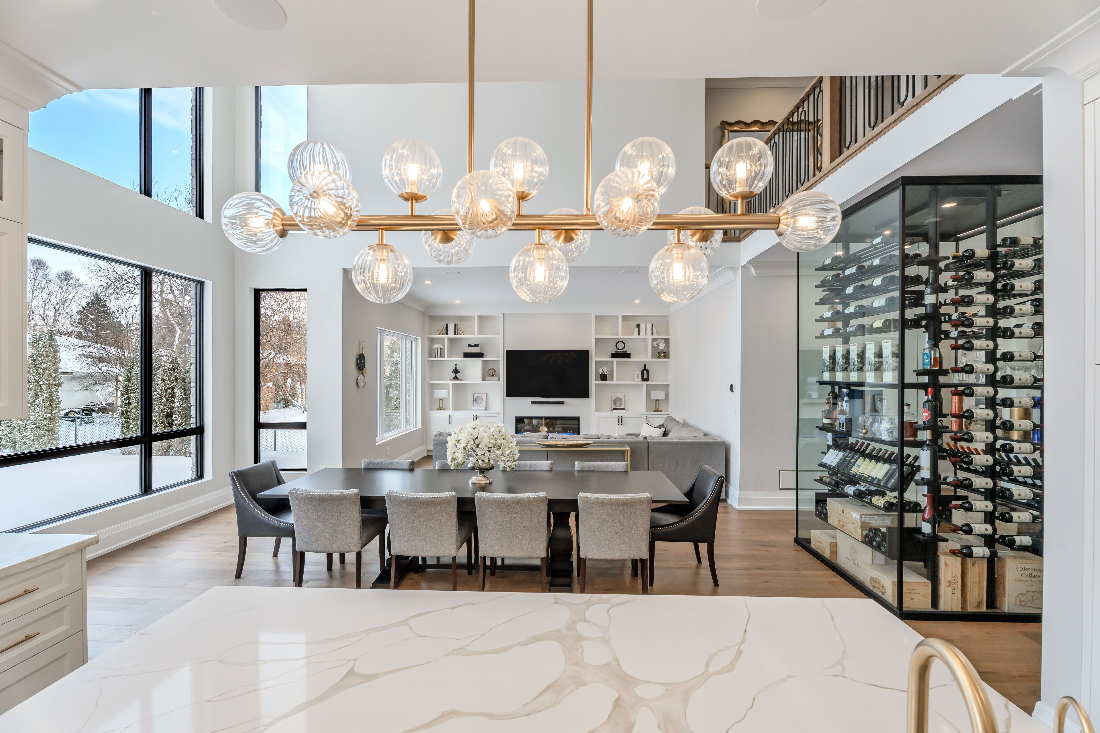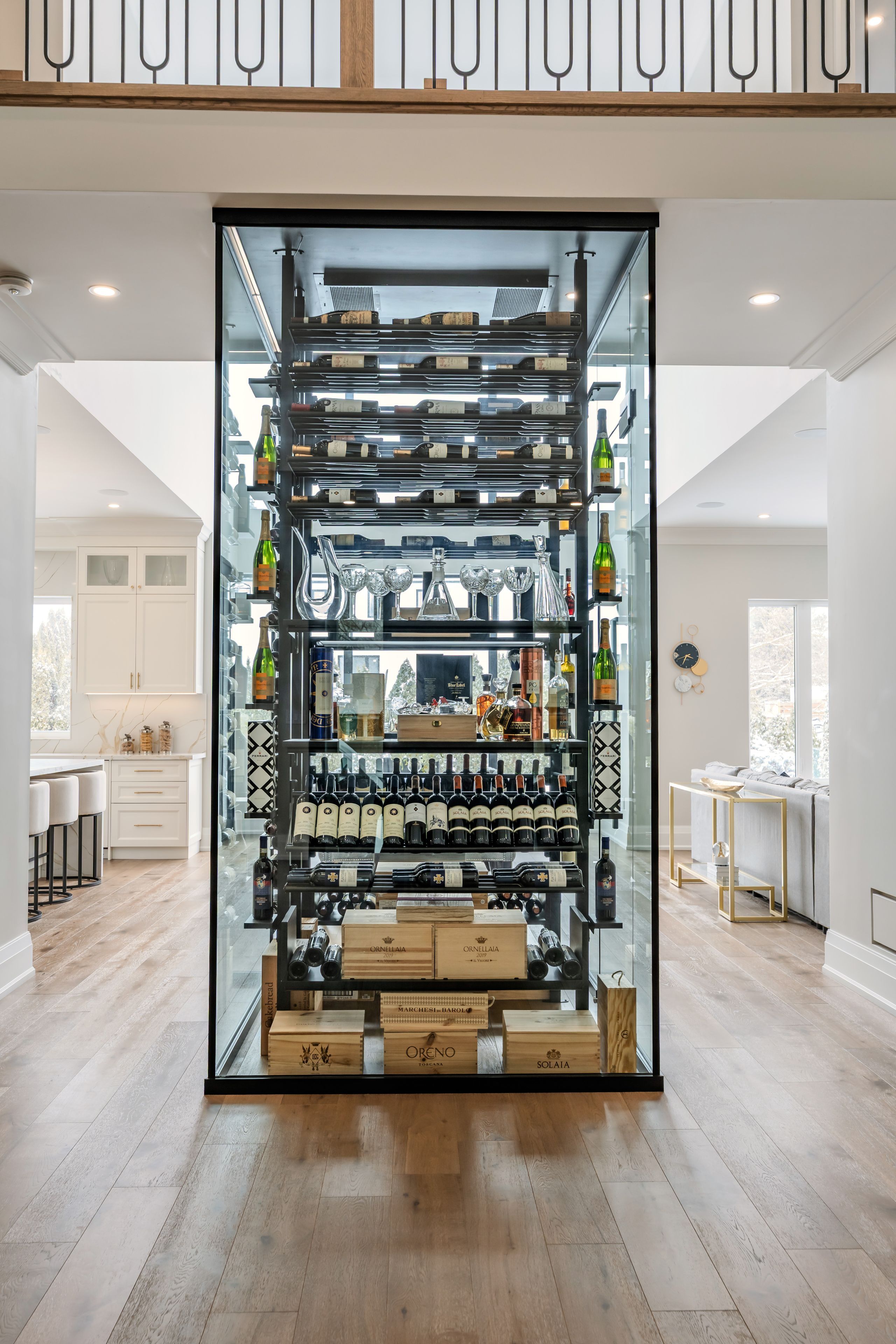 Luxury custom-built executive residence, perfectly tailored for multigenerational living. This striking property showcases timeless stone craftsmanship, a custom 11 ft front door and an oversized 3. 5 car garage - ideal for car enthusiasts! Designed with both everyday comfort and upscale entertaining in mind, the main floor features a spacious primary bedroom retreat- ideal for elderly parents, extended family, or a live-in nanny- offering privacy and convenience without compromising luxury. The foyer features a striking custom wine cellar, complete w/a cooling system & capacity for 300 plus bottles-a wine connoisseur's dream. The heart of the home is the stunning custom kitchen w/large centre island w/breakfast bar, built-in thermador appliances and a generous servery with additional storage and a rare walk-in cooler. The kitchen's large eat-in area features soaring cathedral ceiling & expansive windows that floods the space with natural light & overlooking the inviting family room w/custom built-ins & a fireplace. The main floor also features a home office w/built-in cabinetry, perfectly suited for remote work or study. A large mudroom w/access door into garage & walk-out to yard plus a stackable washer/dryer. Upstairs, you will find an additional primary bedroom w/a large 5 piece ensuite with oversized glass steam shower & separate soak tub & a large walk-in closet. There are also two additional bedrooms each w/their own ensuite bathrooms & walk-in closets. Plus an additional upper level laundry room w/large window, b/i cabinetry & counters. This exceptional home masterfully blends elegance, functionality & flexibility!