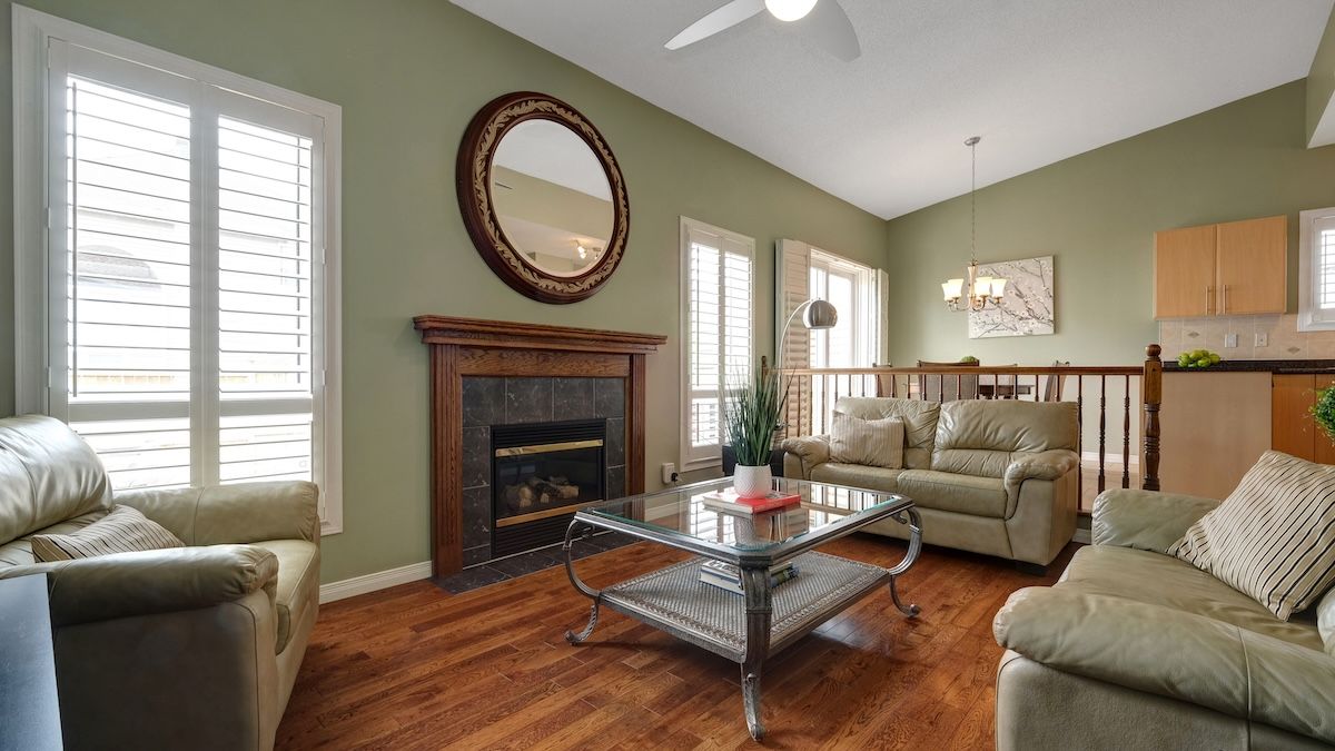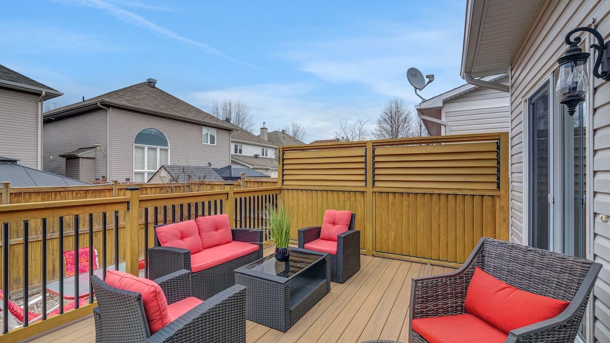 Welcome to 41 fairlop way, a beautifully maintained home in the heart of barrhaven offering approximately 2,000 sq ft of well-designed living space plus a fully finished lower level. Located in a sought-after, family-friendly neighbourhood close to schools, parks, recreation, shopping, and transit, this home combines comfort, functionality, & timeless style. Step inside to a bright main level featuring rich hardwood flooring, elegant california shutters, and a graceful curved staircase that creates an impressive first impression. The layout offers excellent flow for both daily living and entertaining, with a formal dining room for special occasions and a separate breakfast nook for casual meals. The kitchen is equipped with stainless steel appliances and opens to the sunny breakfast area with patio doors leading to the no maintenance composite deck, perfect for summer barbecues and outdoor dining. The inviting sunken family room features a cozy gas fireplace, the ideal gathering space for relaxing evenings. The main level also offers convenient laundry, inside access to the double-car garage, and a practical 2pc powder rm. Upstairs, you'll find the spacious primary suite with cathedral ceiling and walk-in closet. The elegant updated 5-piece ensuite features a glass shower, soaker tub, double sinks, and a granite countertop in a bright, clean design. Two additional bedrooms share a well-appointed 4-piece bath. The finished lower lvl expands the living space with a large rec room. A private home office with dbl pocket doors offers a quiet place to work or study, while a 4th bed with an entire wall of closet space and a stylish 3-piece bathroom makes an ideal guest or teen suite. Outside, the landscaped backyard is fully fenced and designed for low-maintenance living with no lawn to mow. This move-in ready barrhaven home offers space, style, and just feels like home! Book your private showing today and experience everything 41 fairlop way has to offer.