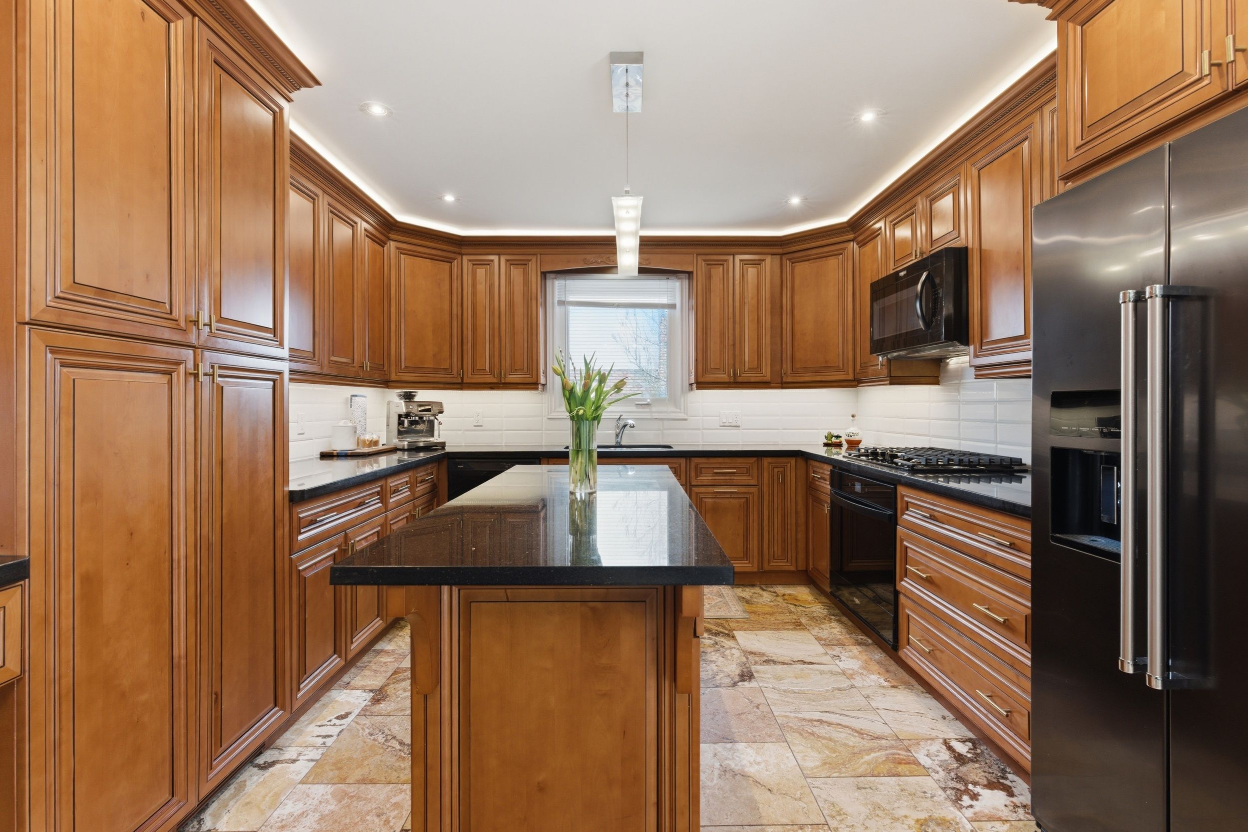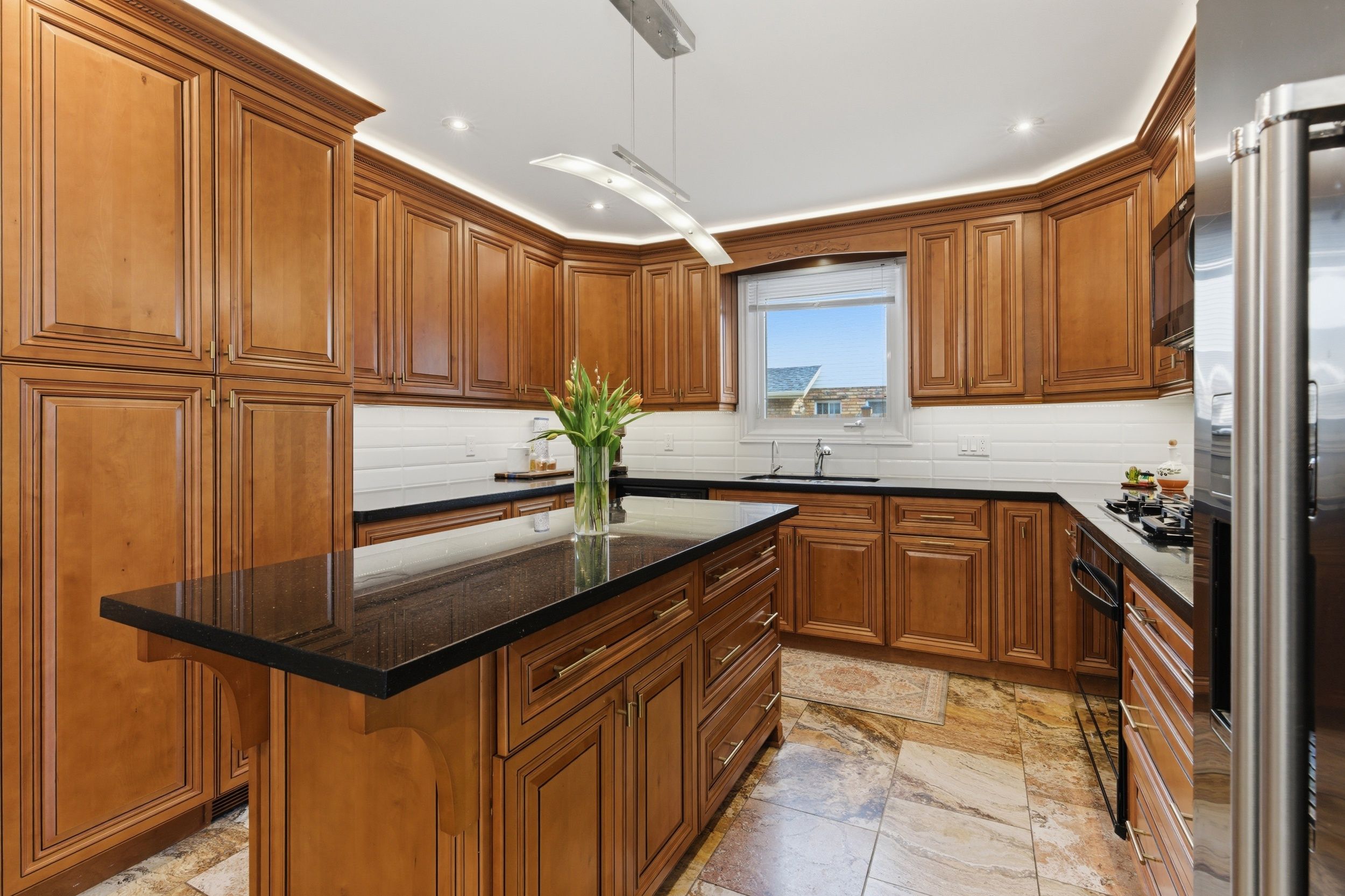 • Luxury kitchen with modern appliances and multiple seating options for gatherings.