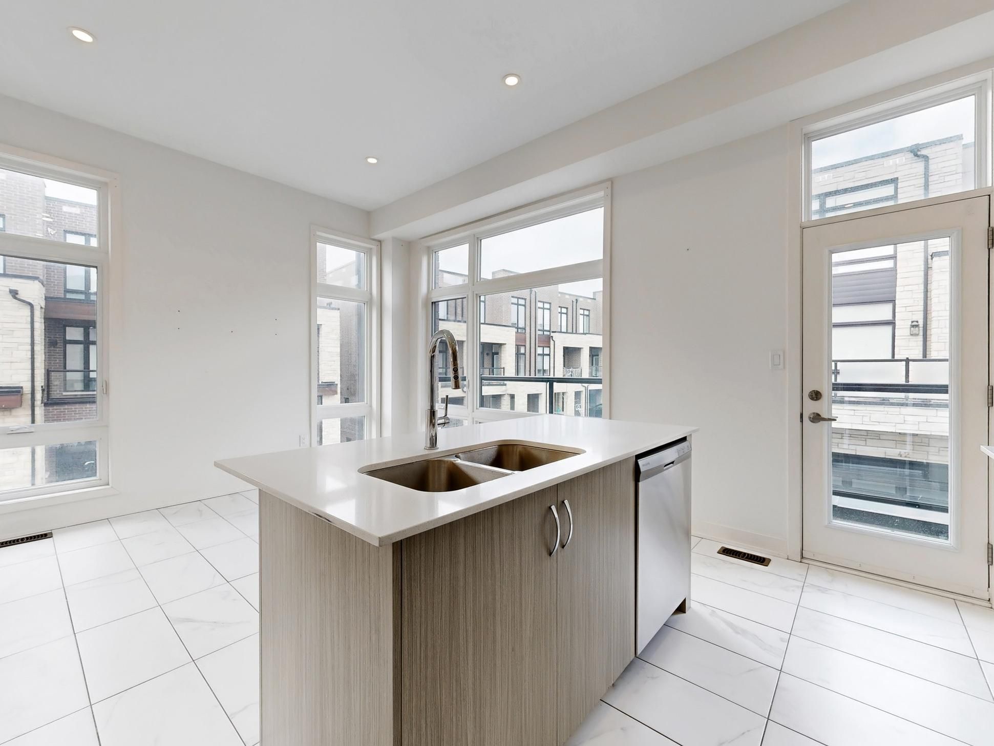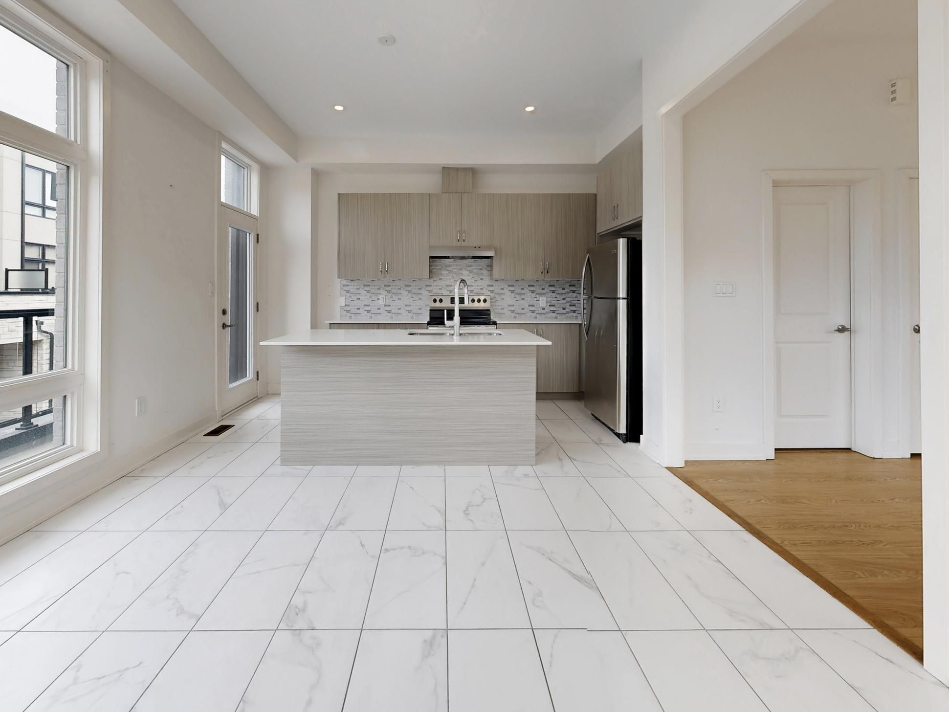 This elegant and spacious 3-bedroom, 4-bathroom end-unit townhome sits on a premium lot near major mackenzie & hwy 400. Designed with upscale finishes throughout, the home offers 10' ceilings on the main level and 9' ceilings on the upper floors, complemented by expansive windows that flood the space with natural light. The modern open-concept layout features a chef-inspired kitchen with an oversized island, sleek cabinetry, perfect for both everyday living and entertaining. The living and dining areas extend seamlessly to two large private balconies, ideal for relaxing or hosting guests. Conveniently located steps from shopping, grocery stores, and restaurants, and just minutes to vaughan mills, go bus station, the future vaughan hospital, and major highways (400, 407, and 427). Close to top-rated schools, parks, and the vaughan subway station.