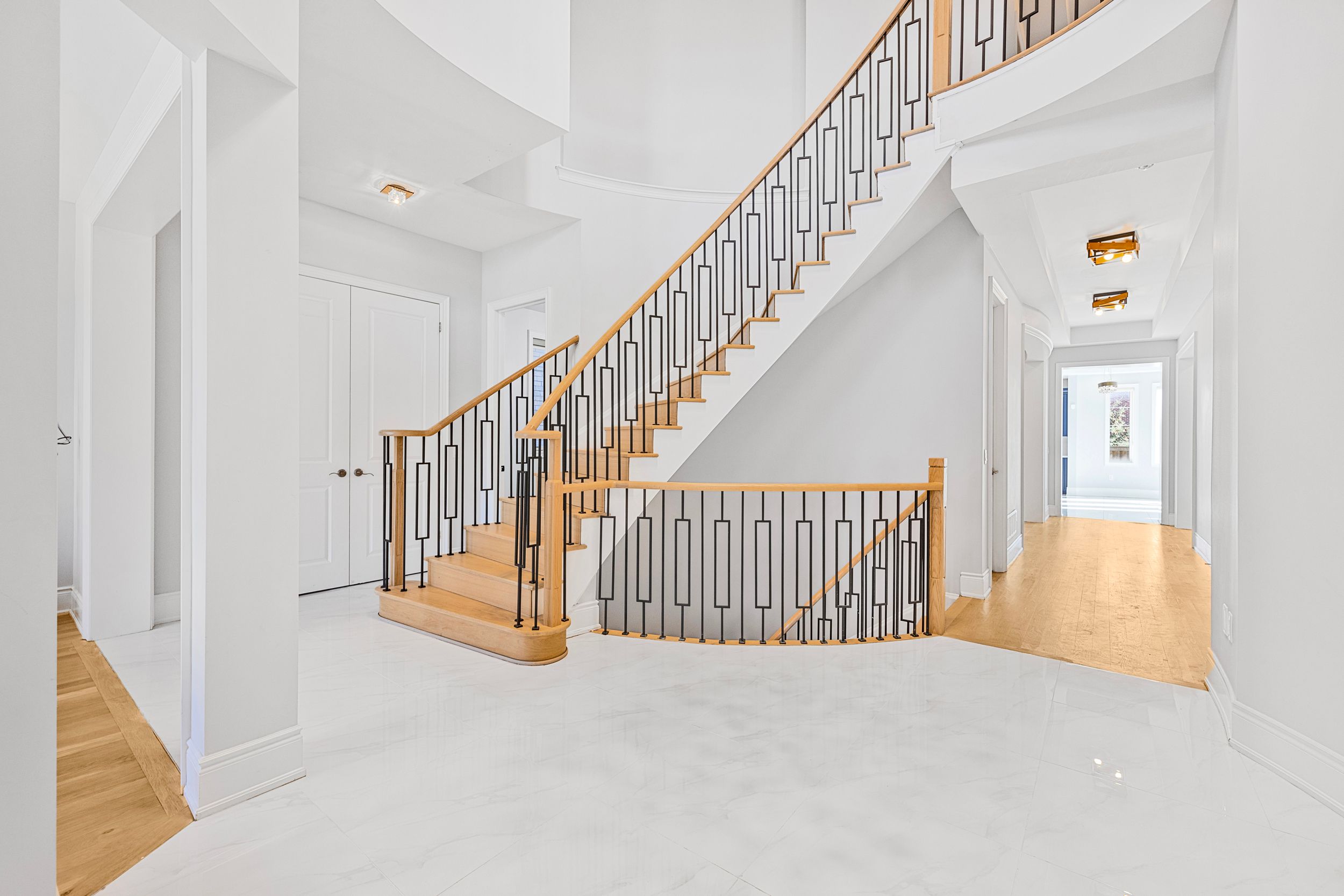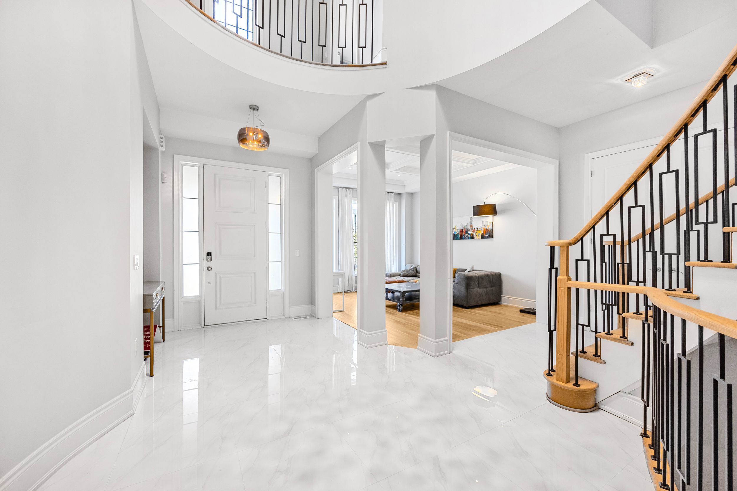 • Elegant main floor with a grand 21-foot hallway and hardwood floors.