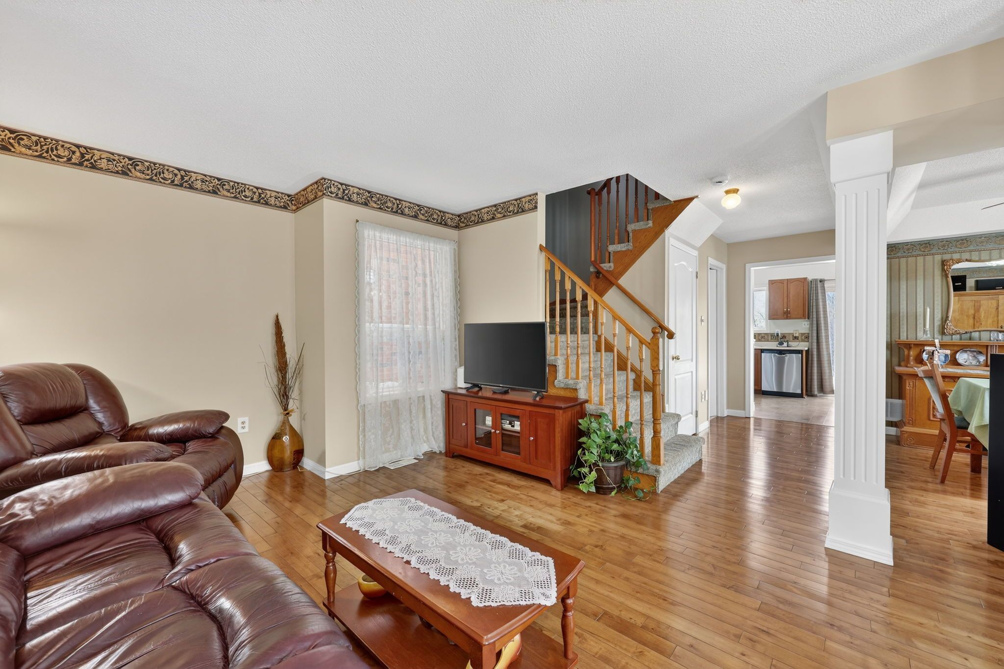 Welcome to this beautifully maintained 2-storey home offering 3+1 bedrooms and 3 bathrooms, ideally set on a premium lot siding onto and backing onto tranquil parkland, providing exceptional privacy and picturesque views. From the moment you arrive, you'll be impressed by the stunning stone walkway and landscaped grounds leading to a charming covered front porch, perfect for morning coffee or relaxing evenings. Inside, the main level showcases gleaming hardwood floors throughout the separate living and dining rooms, creating an elegant and inviting space for both everyday living and entertaining. The bright eat-in kitchen features stainless steel appliances, ample cabinetry, and a walkout to a beautifully landscaped, fully fenced backyard that seamlessly blends with the surrounding green space, an ideal setting for outdoor gatherings or quiet enjoyment. Upstairs, the spacious primary retreat offers a walk-in closet and a 4-piece ensuite complete with a soaker tub and separate shower. Two additional generously sized bedrooms and a second 4-piece bathroom provide plenty of space for family or guests. The fully finished lower level expands your living space with a fourth bedroom, a large rec room highlighted by an oversized window that fills the space with natural light, along with laundry and abundant storage. Recent updates include shingles (2022), furnace (2017), newer garage door, and most windows have been replaced. Located close to schools, parks, shopping, and scenic walking trails, this home offers the perfect blend of comfort, style, and convenience. Move in and enjoy everything this exceptional property has to offer.