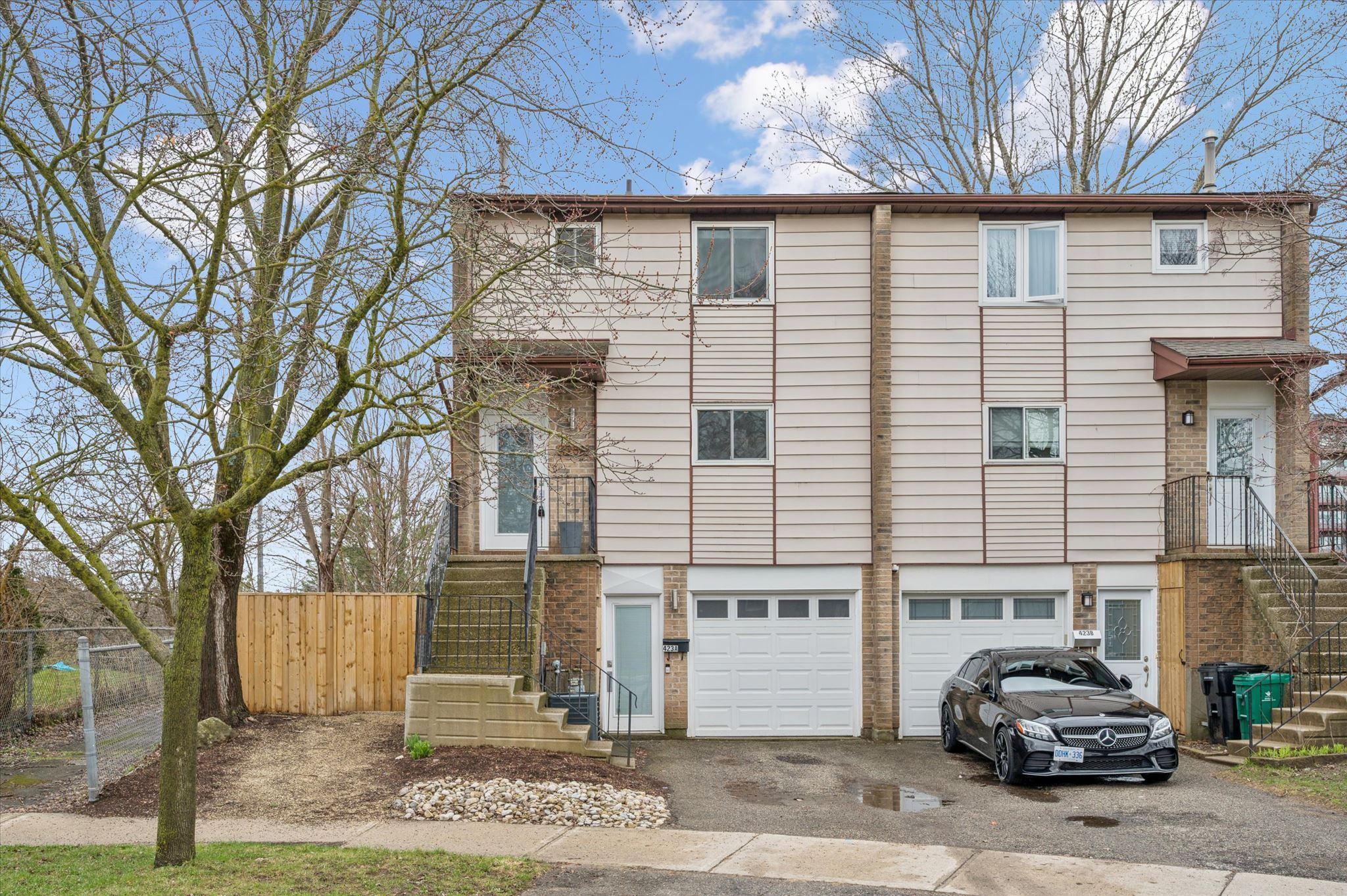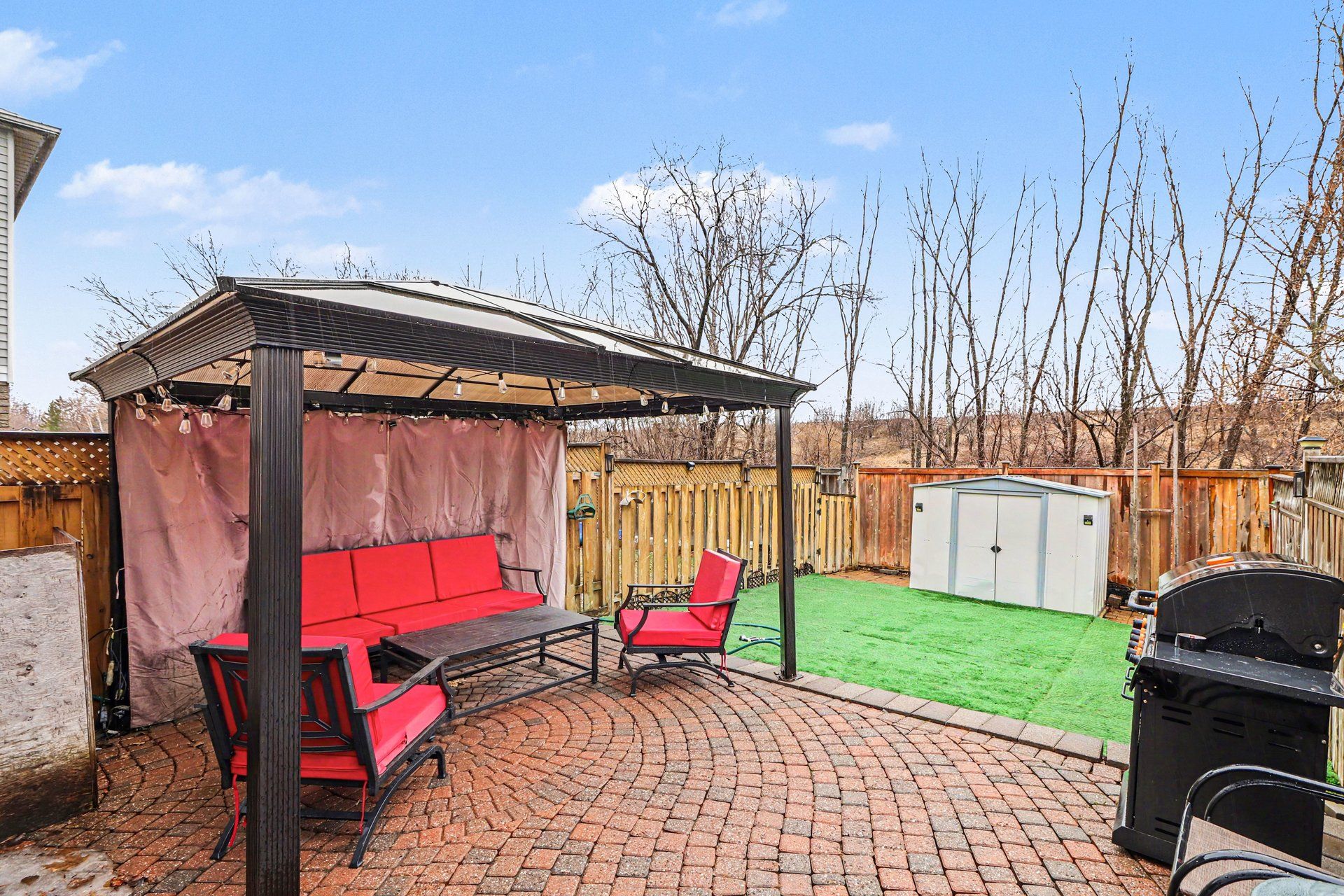 • Private yard backs onto a peaceful creek for a natural retreat.