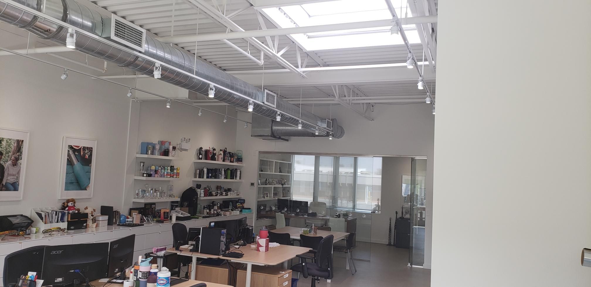 High end office space located behind longos (on laird), a walk to leaside big box retail and laird lrt station. Space shows very well, built out with; skylight, sealed epoxy floors, track lighting, private office with glass partition, private washroom, exposed ducting, multiple storage drawers and shelves, stainless steel railings, open ceiling. Space may suit; office, light manufacturing, community services, studio, creative uses, program space. Tenant to pay utilities direct to providers.